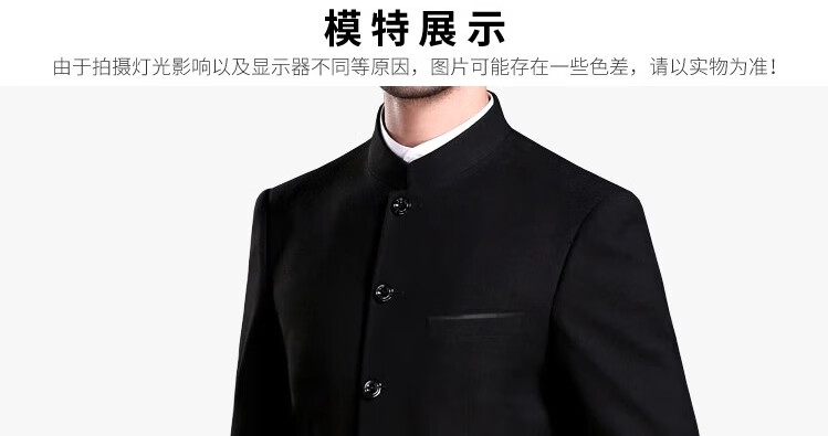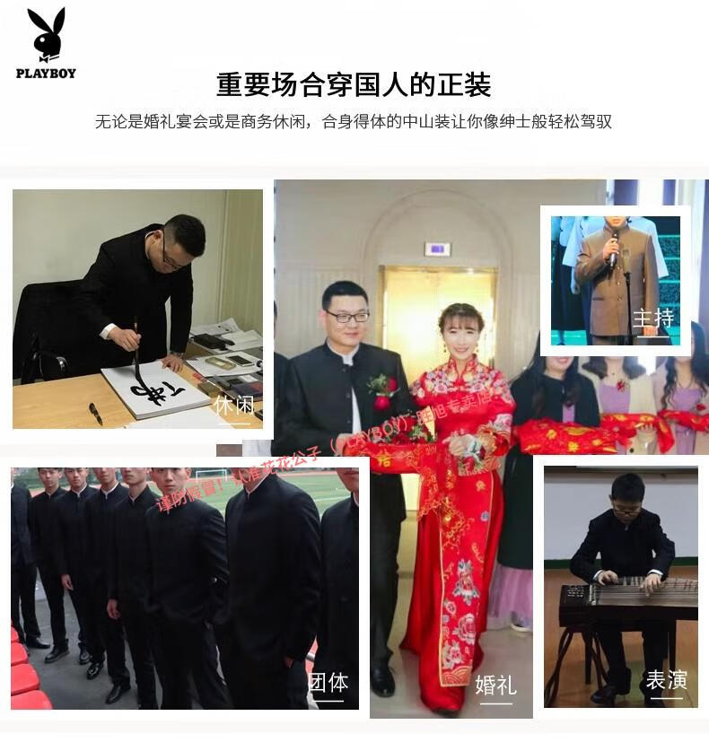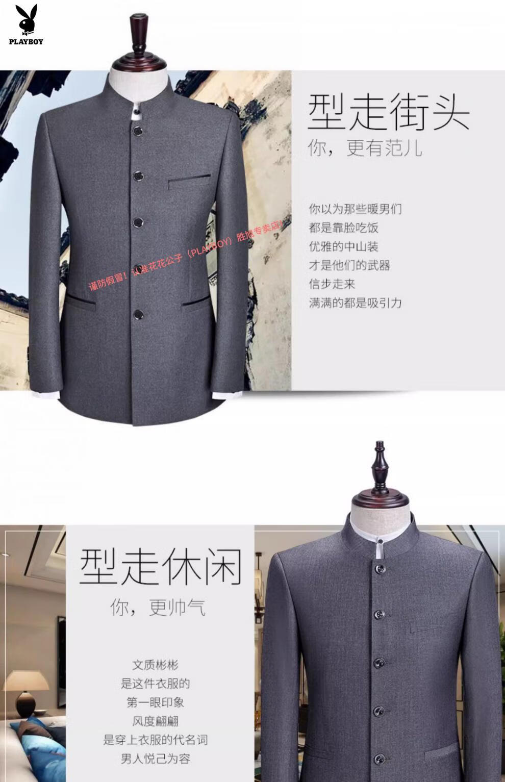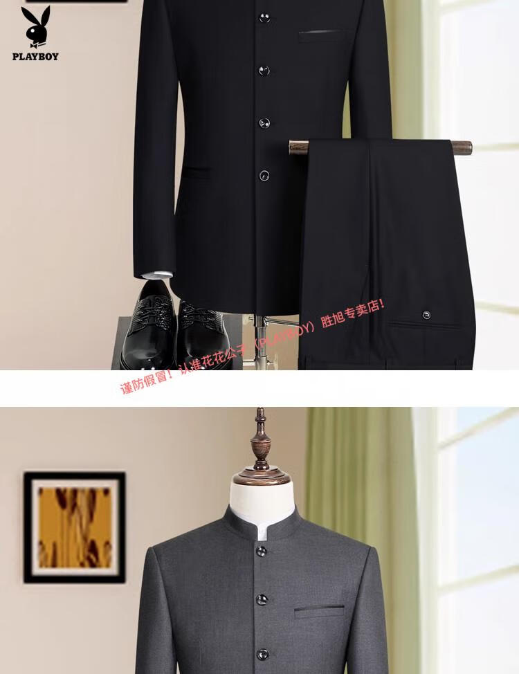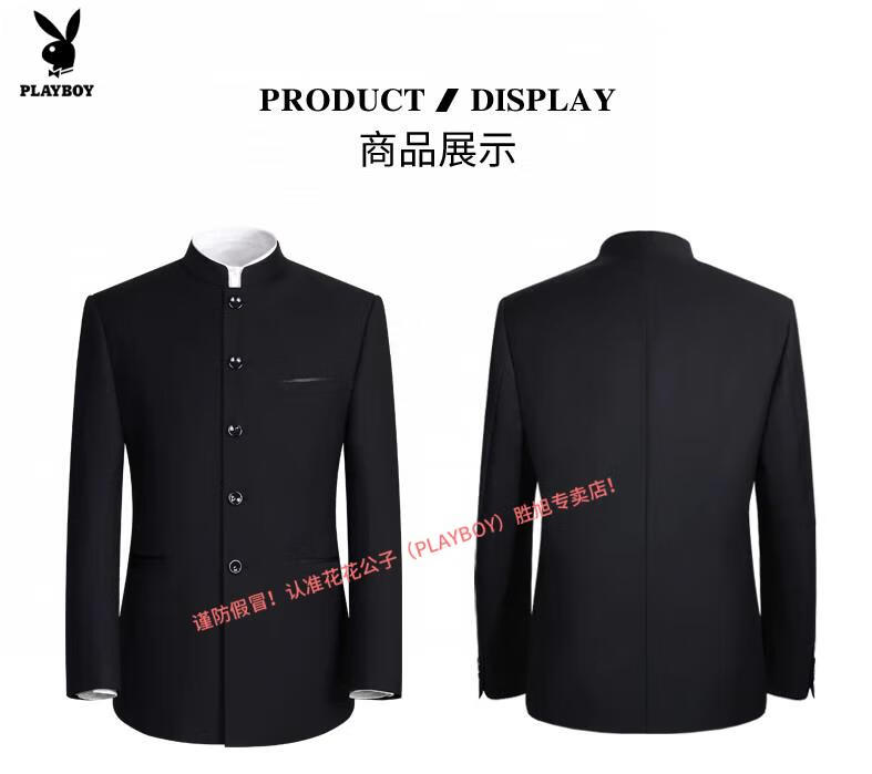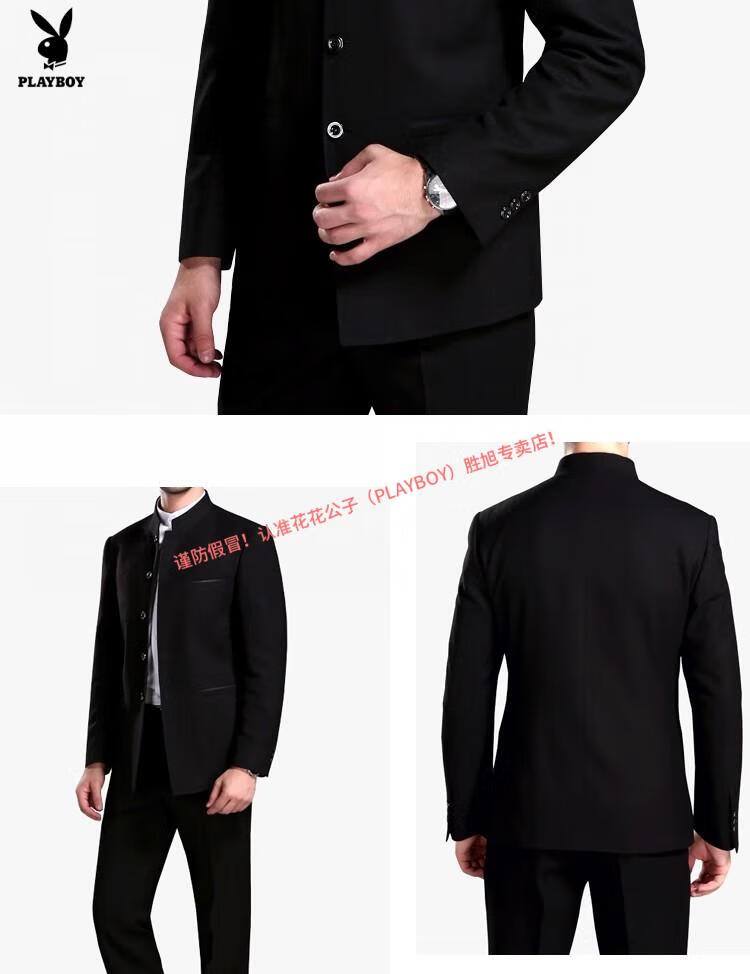 Playboy Brand Zhongshan Suit Suit for Young Men Slim Fit Chinese Stand Collar Suit Chinese Wedding Dress Banquet Chinese Style Black Single Top S (85-100Jin Jin is equal to 0.5kg)
