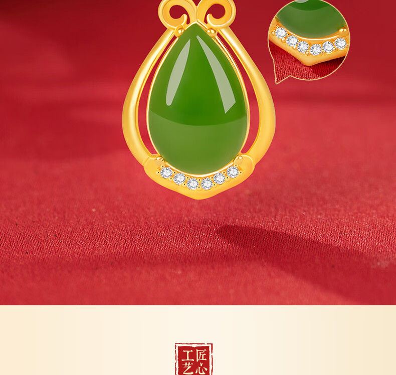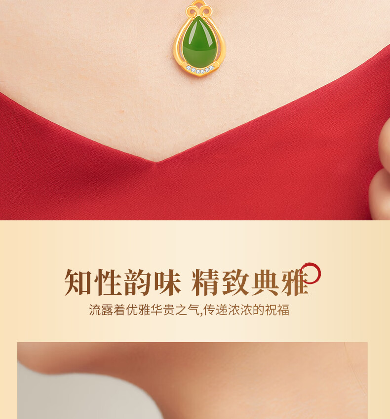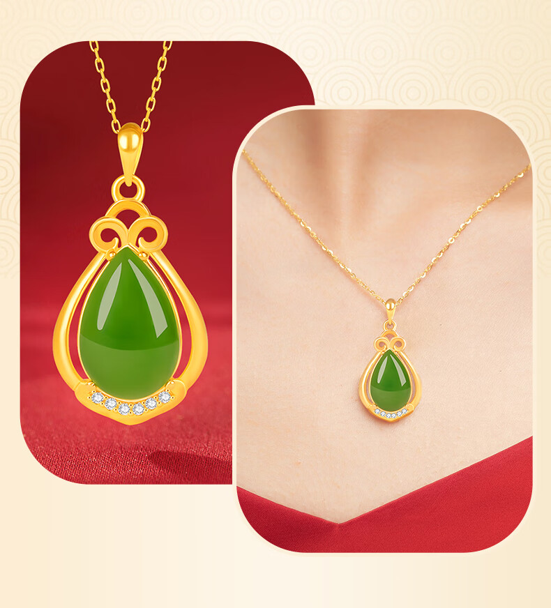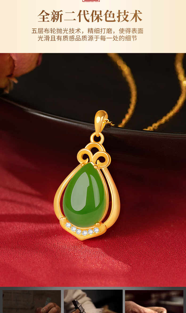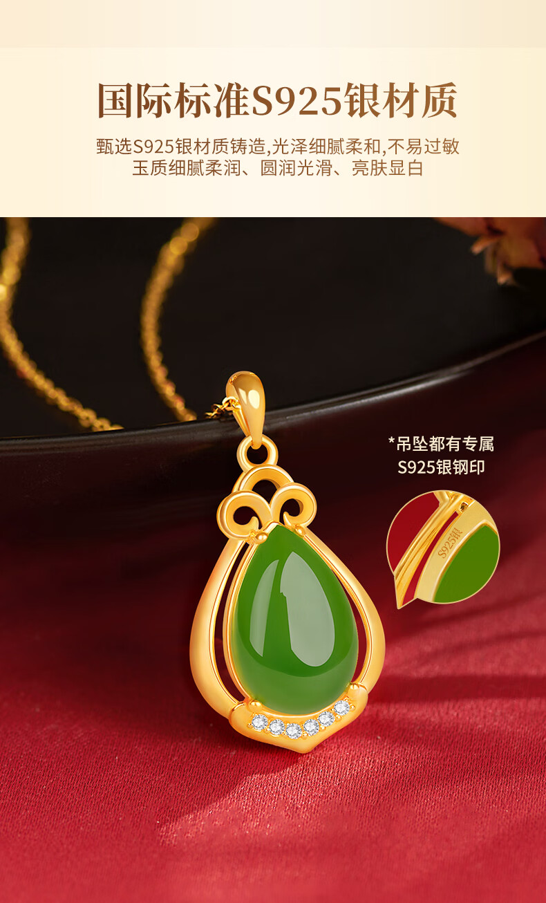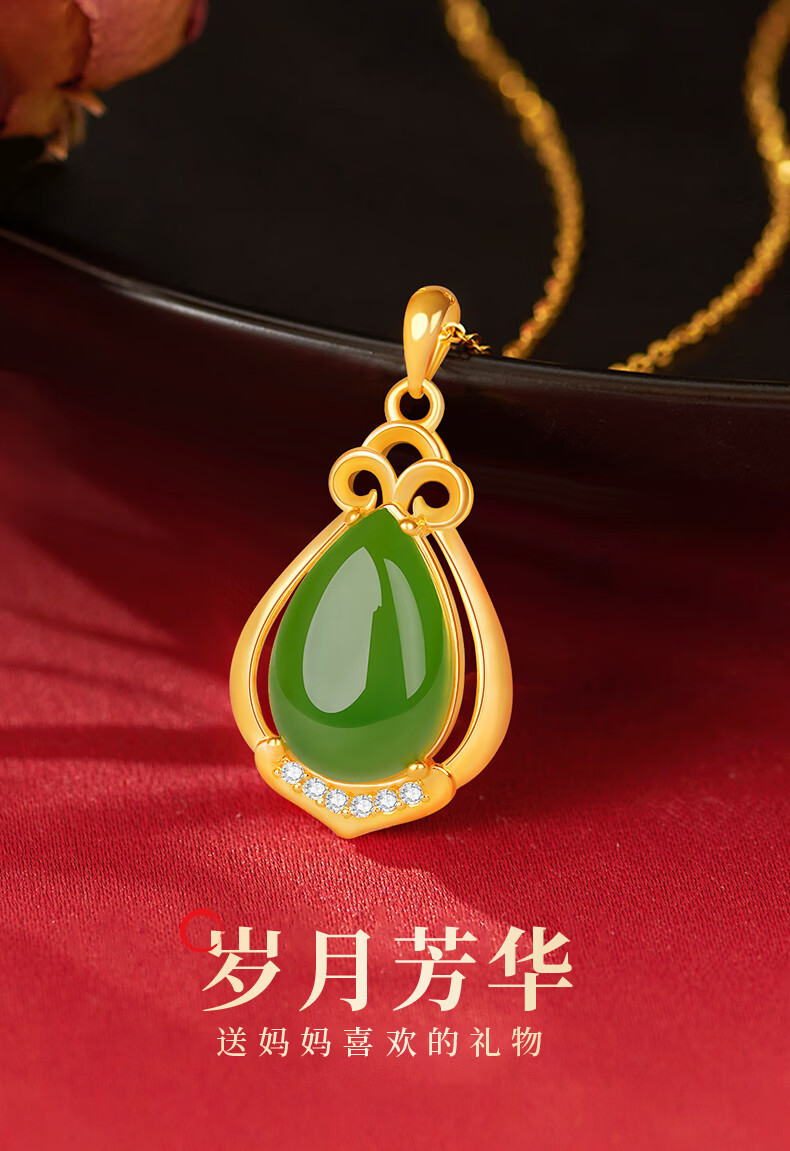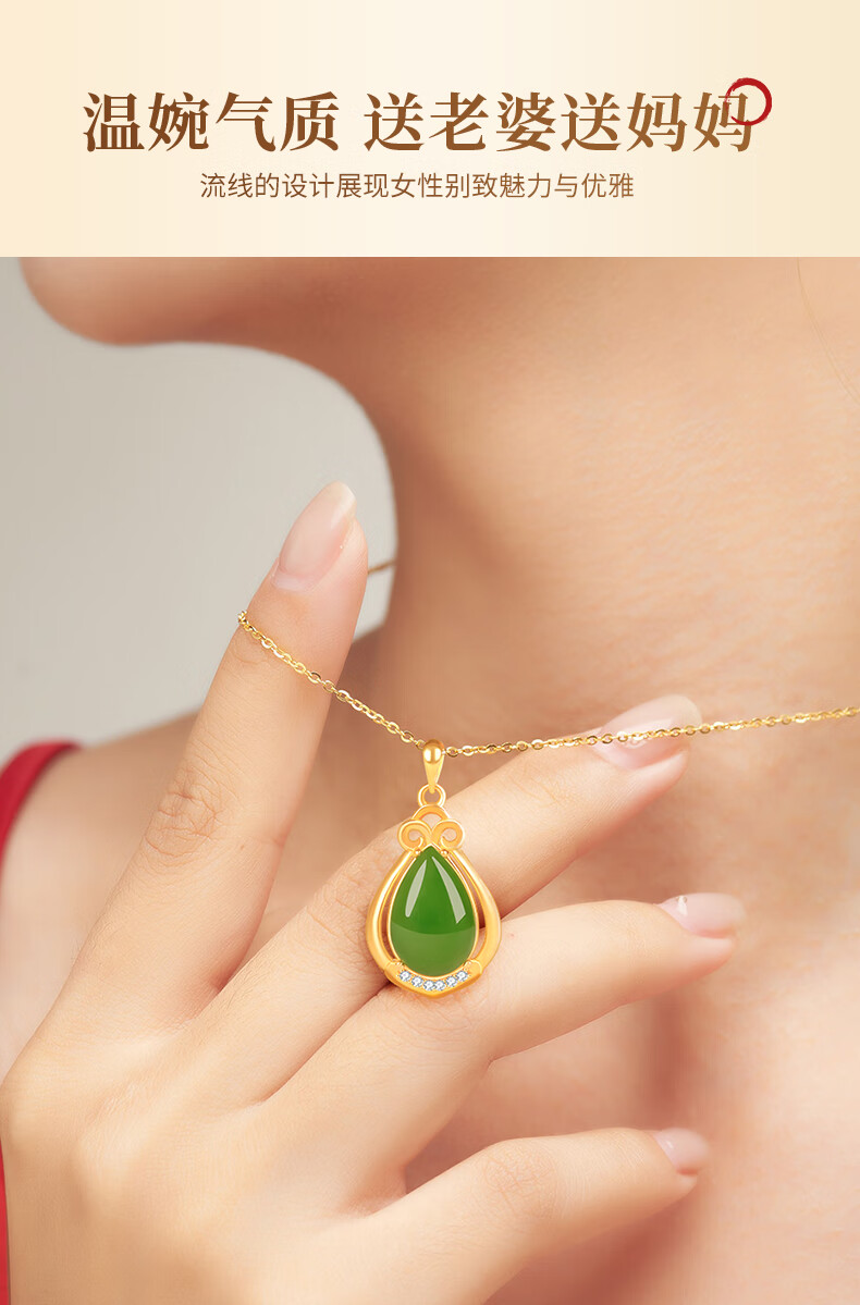 Lao Fengxiang Water Drop Youth Silver Necklace Women's Mother's Style Chalcedony Pendant Wedding Anniversary Gift for Wife, Girlfriend, Mom Jingsuda Water Drop Youth Necklace