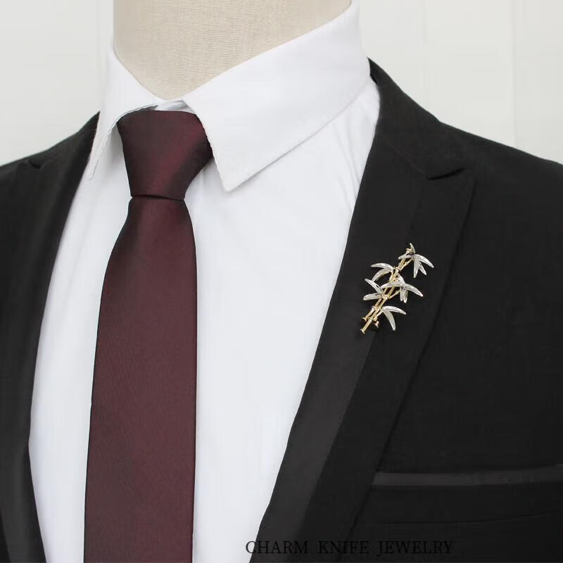 Shaoyu Men's Brooch Gentleman Bamboo Corsage Pin Suit Overcoat Clothing Business Casual Accessories Gift