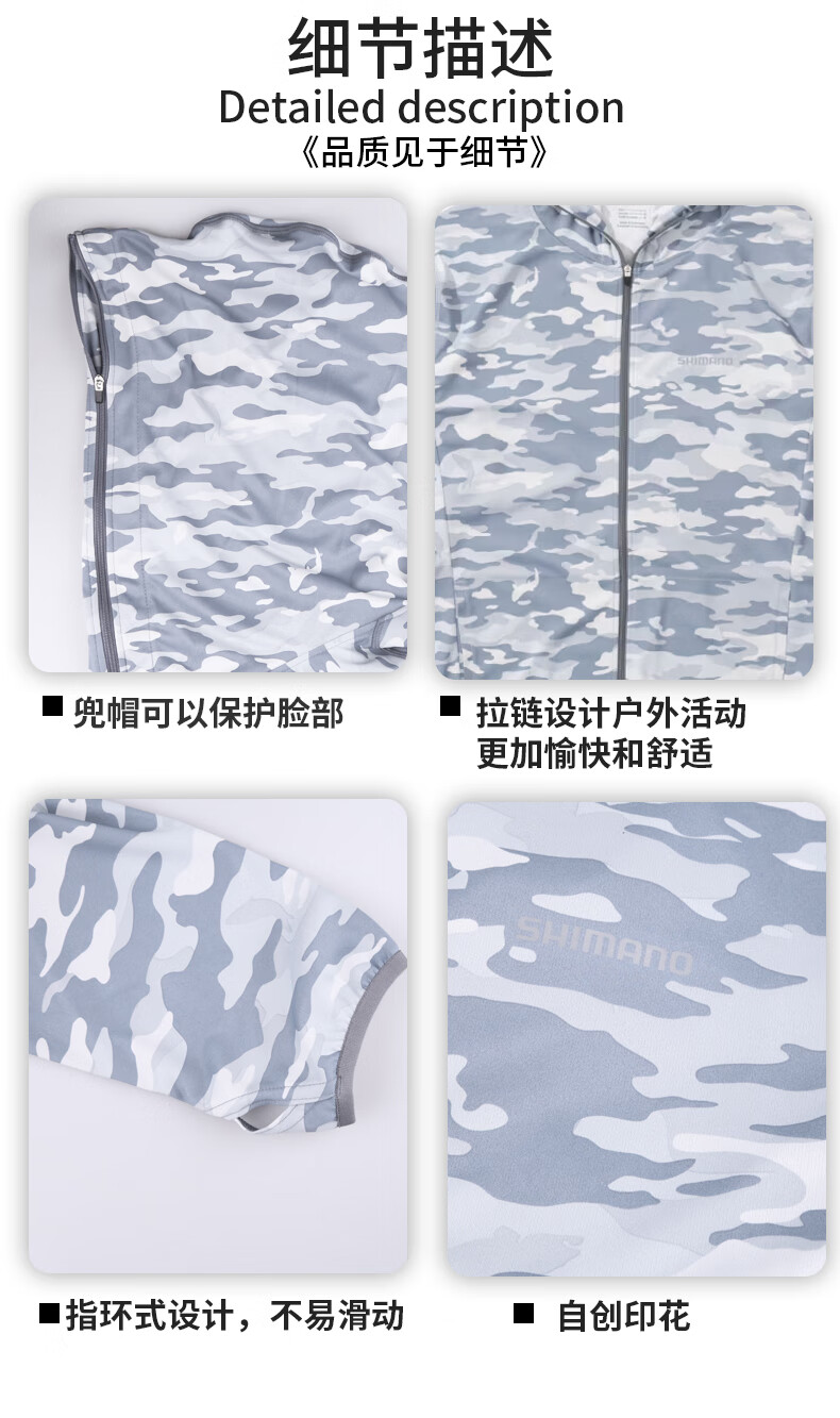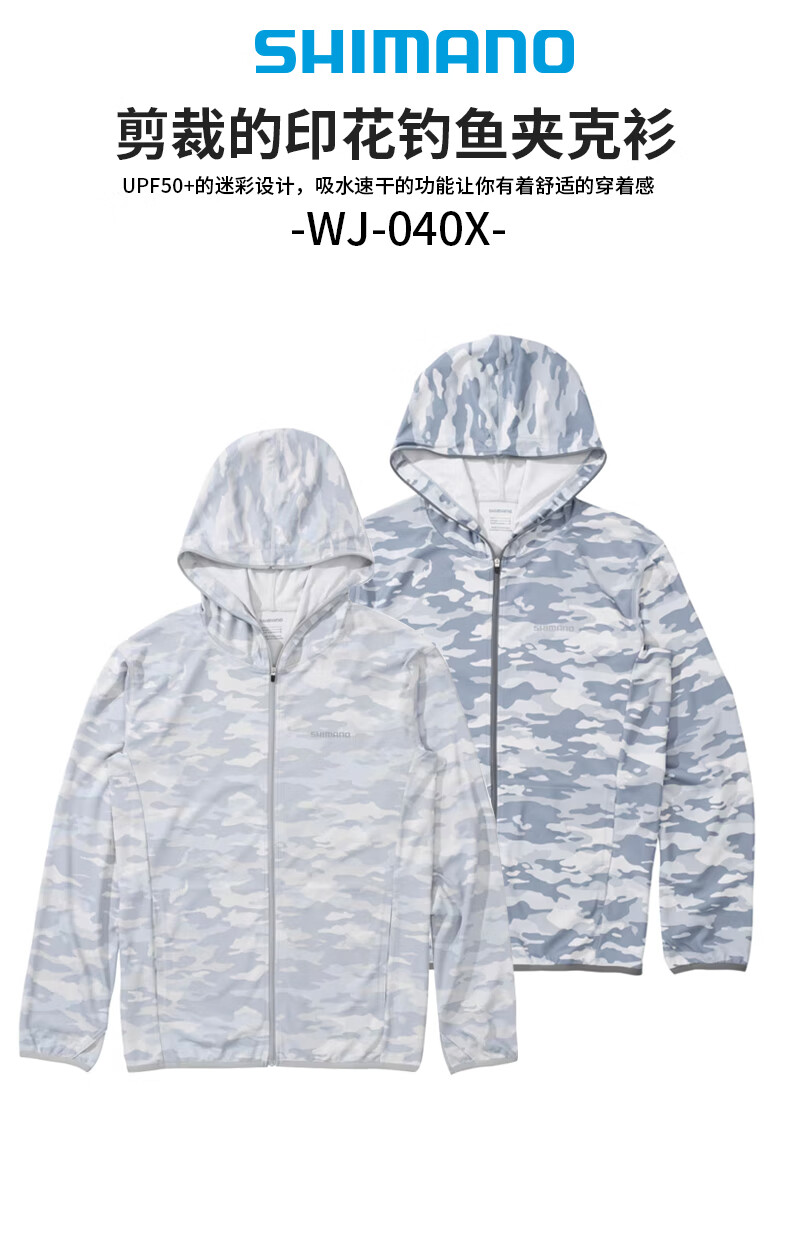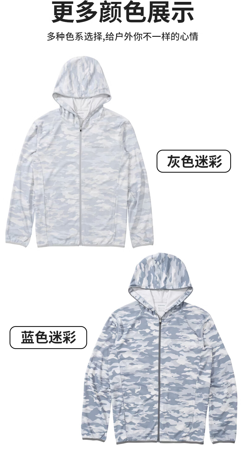 SHIMANO clothing 25 models WJ-040X fishing clothing summer quick-drying breathable hooded fishing sun protection clothing gray camouflage M