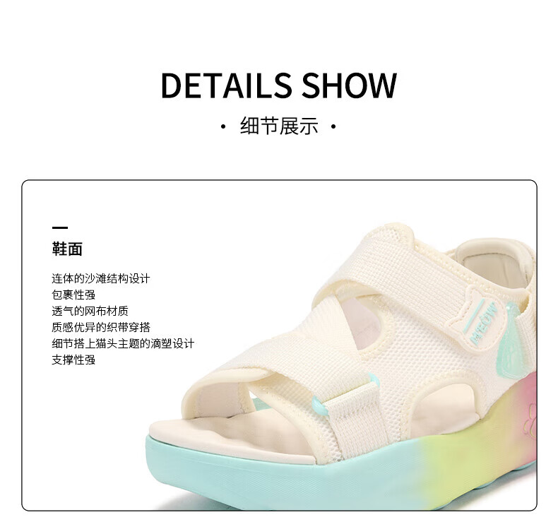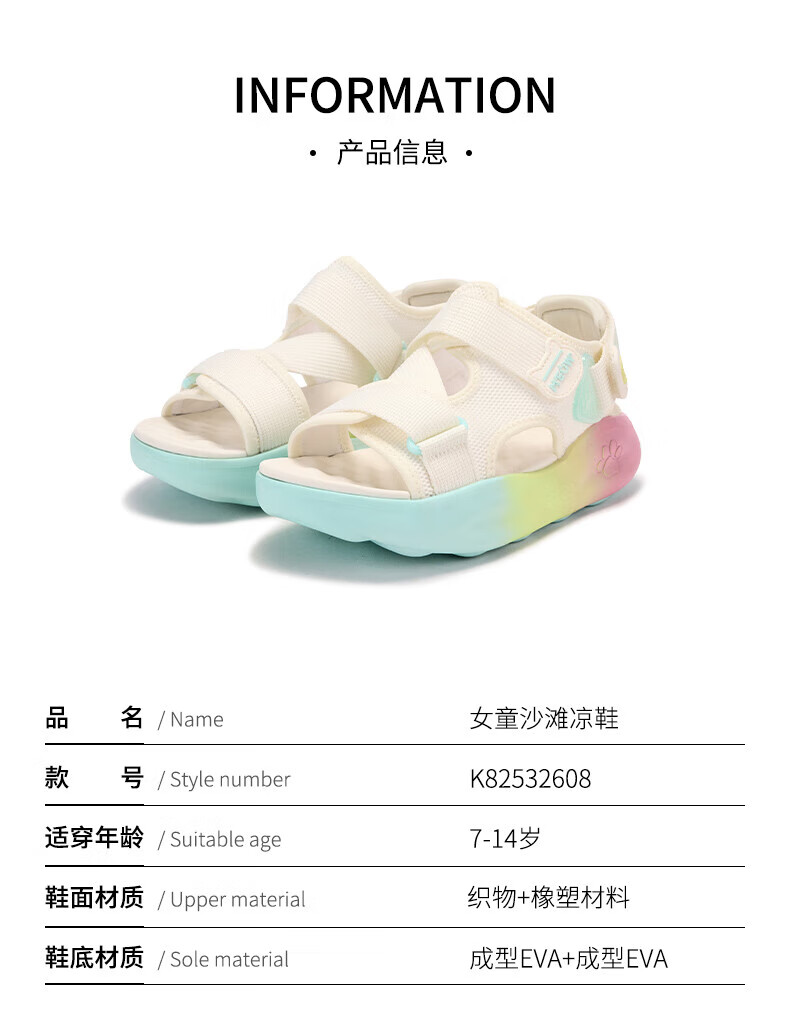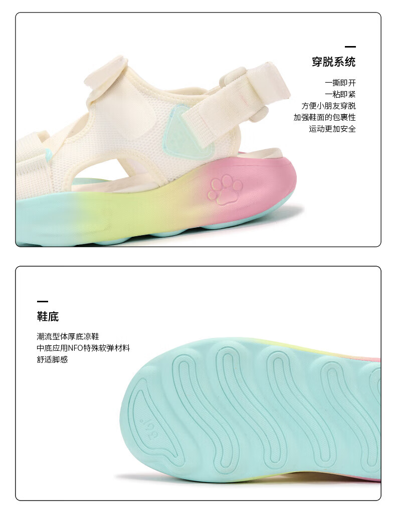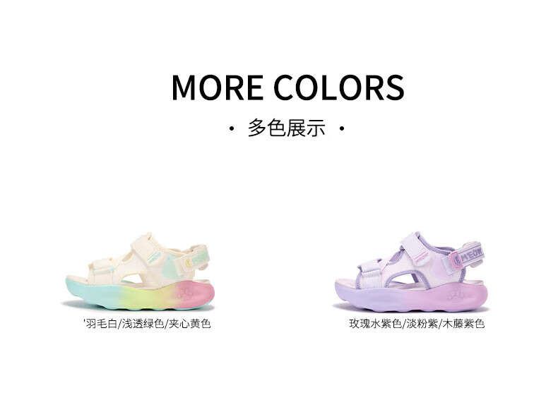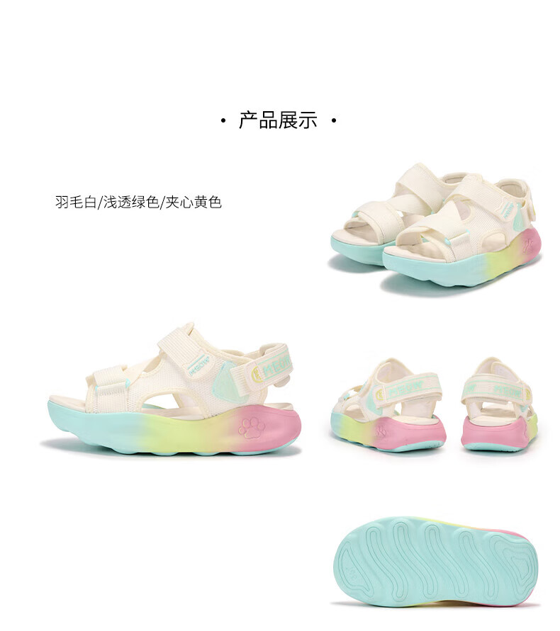 361 Shopping mall same style children's shoes, girls' casual beach sandals, summer new middle and large children's shoes, feather white/light translucent green/sandwich yellow 34