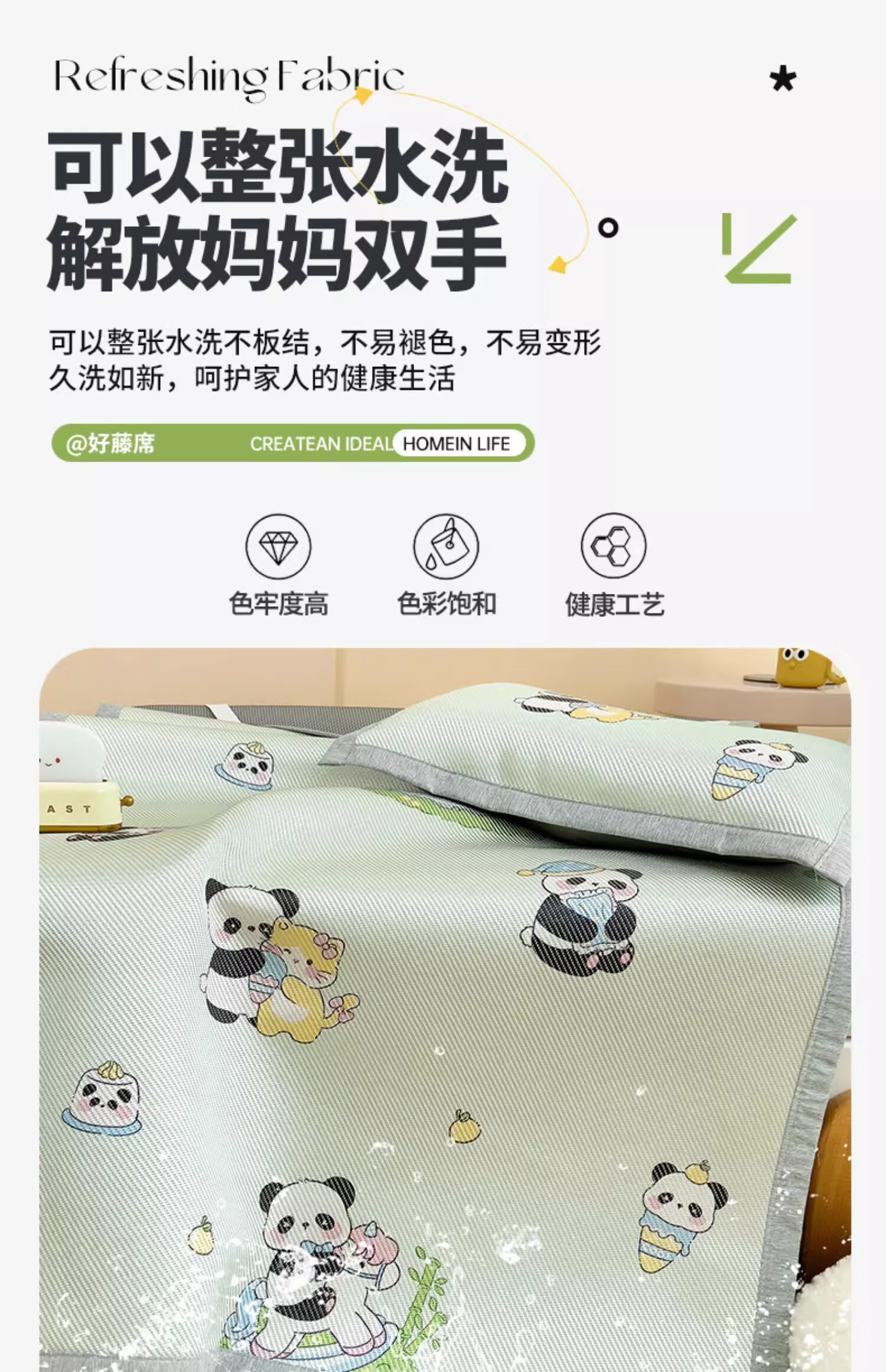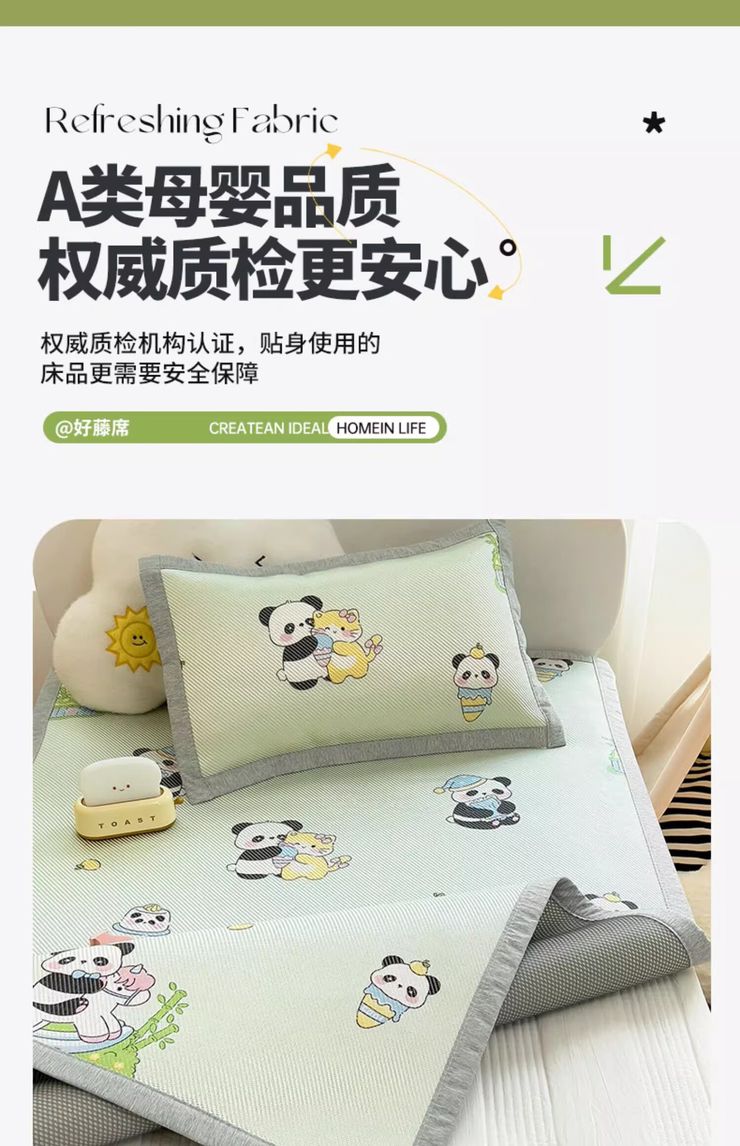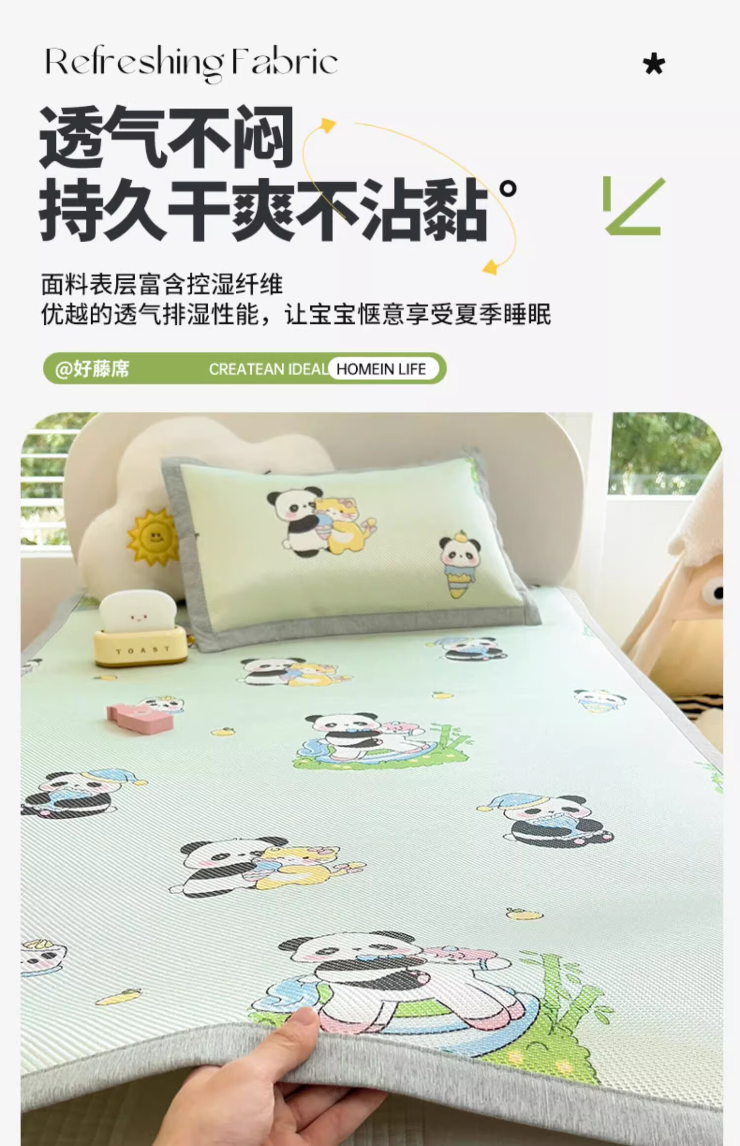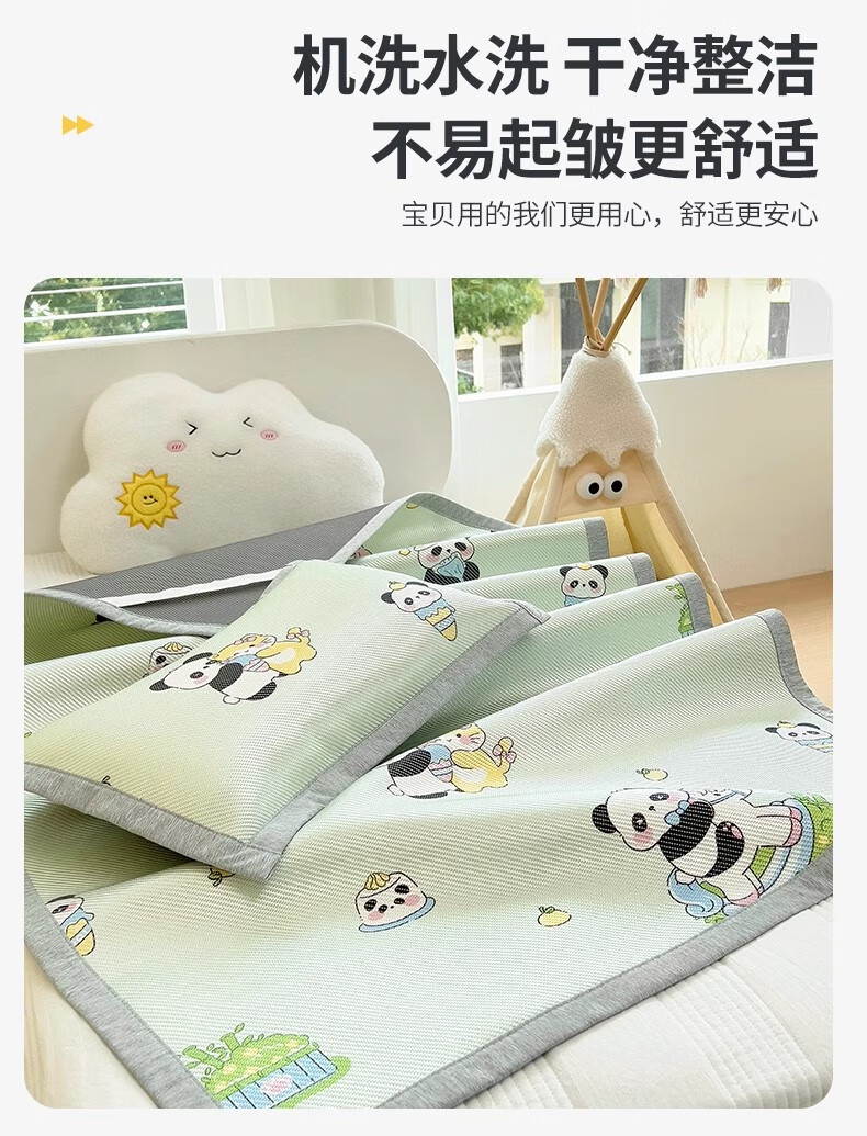 Langsha (langsha) baby mat summer baby kindergarten nap ice silk mat mattress primary school students noon care children splicing bed mat lucky family A quality washable 56x100cm ice rattan mat + 30x50cm pillowcase one
