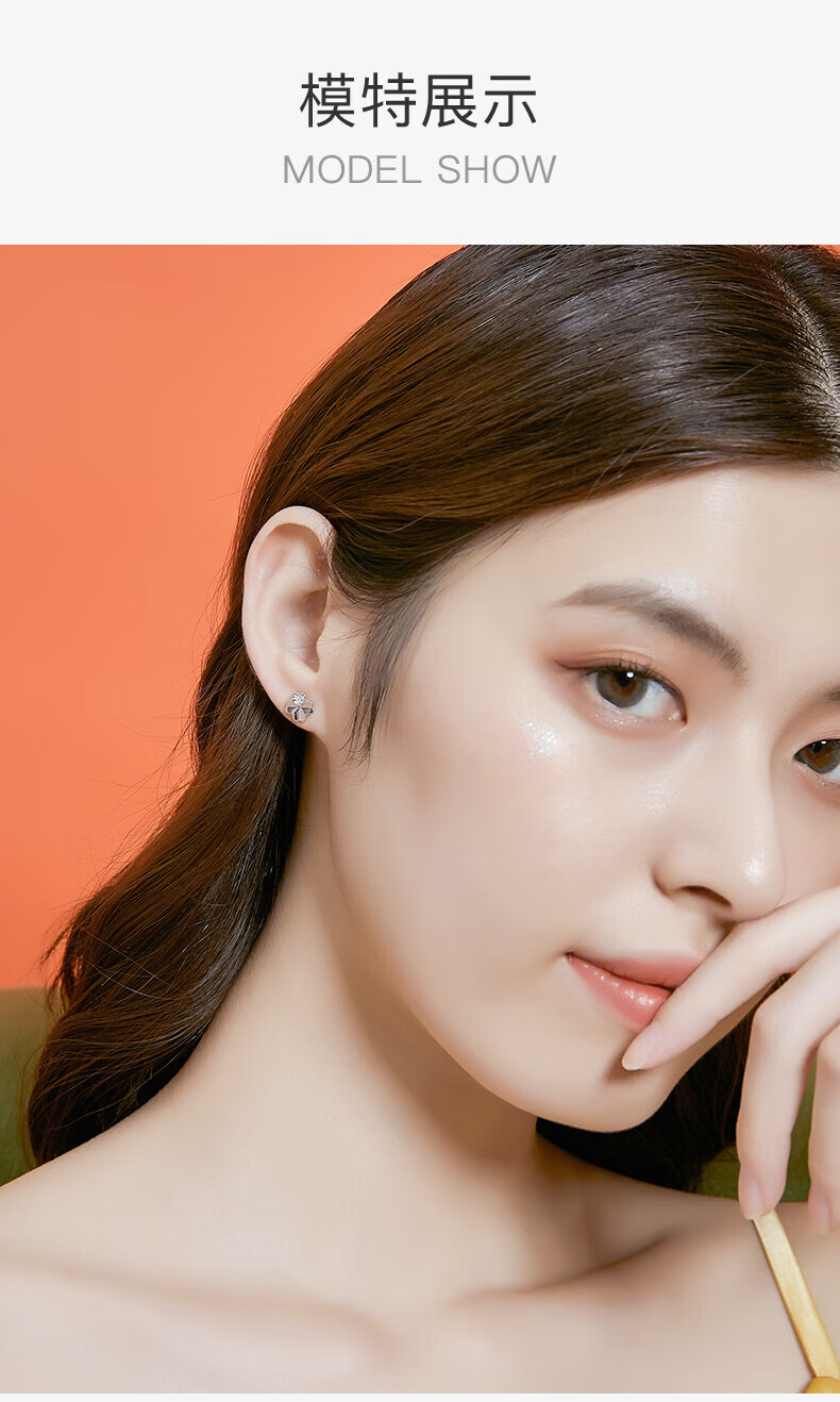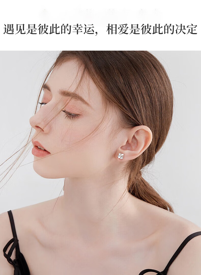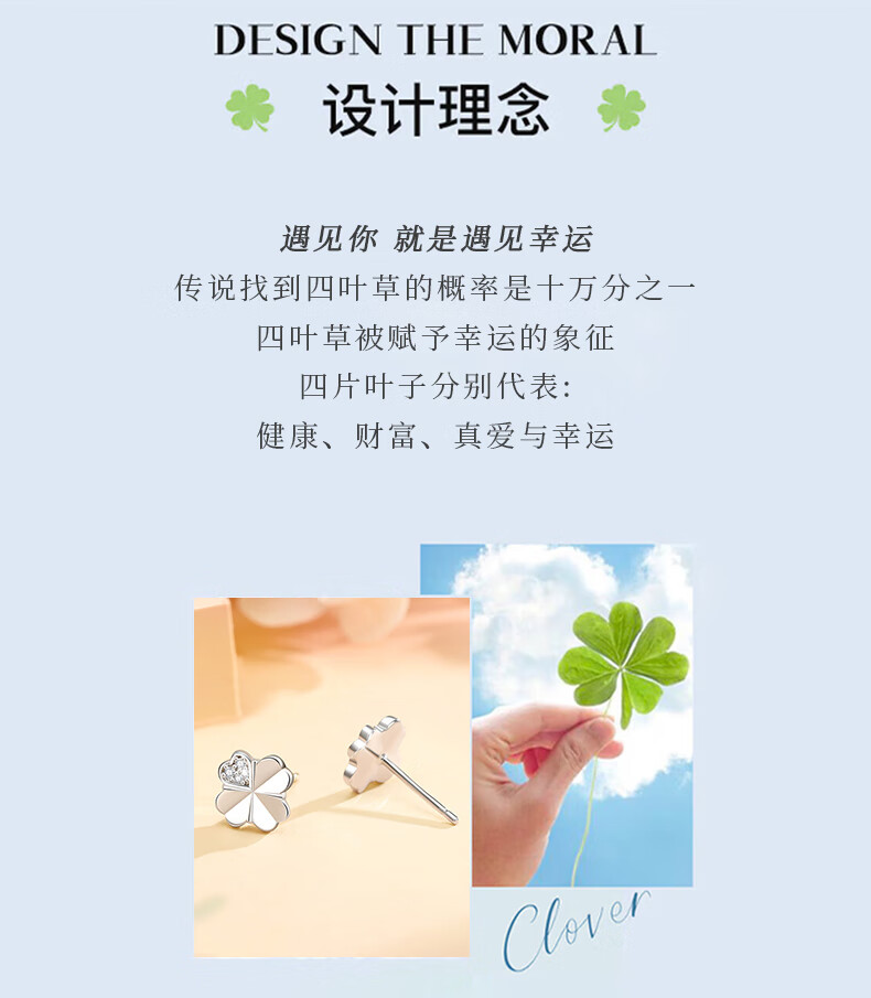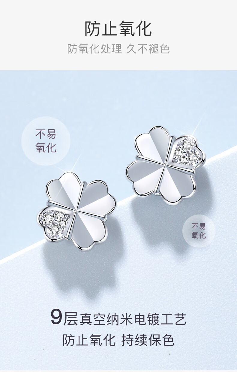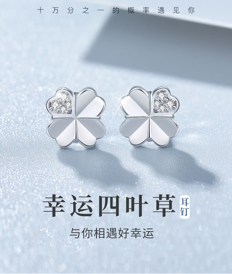 Lao Fengxiang four-leaf clover sterling silver earrings for women earrings ring women's 2025 new birthday gift anniversary gift for girlfriend and wife love four-leaf clover earrings + certificate