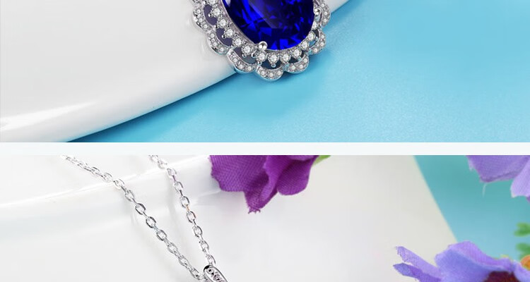 Guran 925 sterling silver sapphire luxury oval pendant 18k gold plated blue tanzanite gemstone princess new clavicle necklace