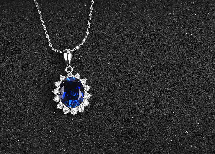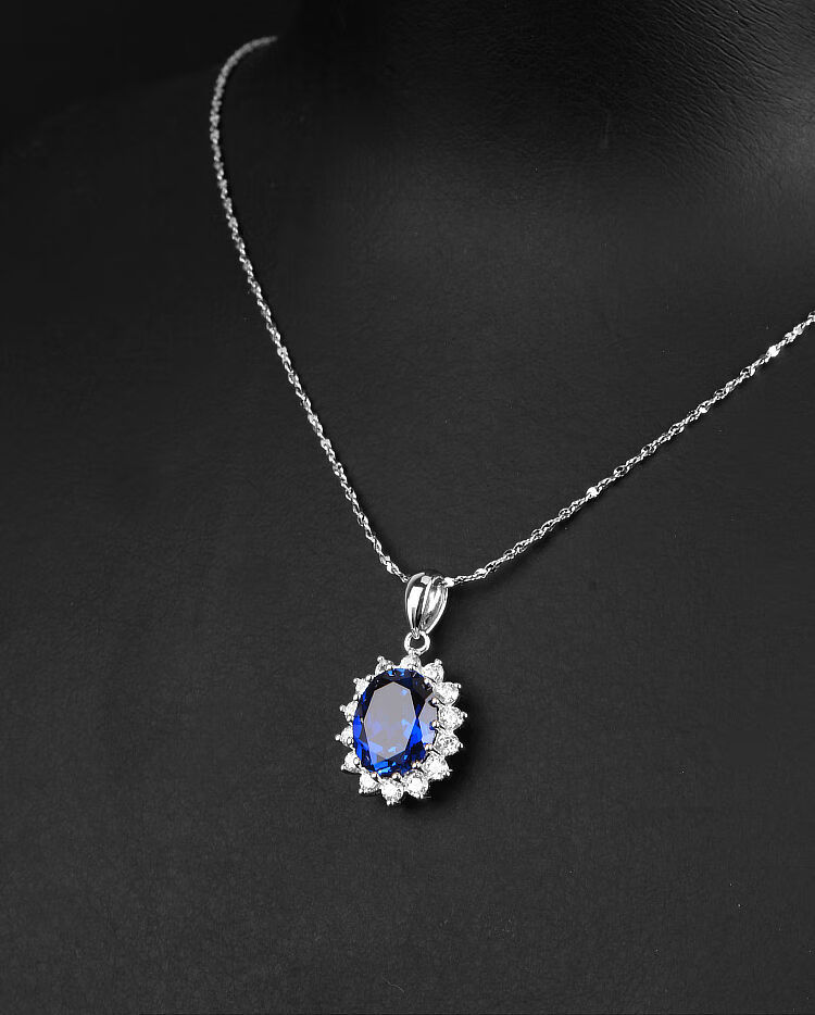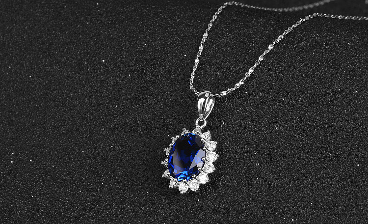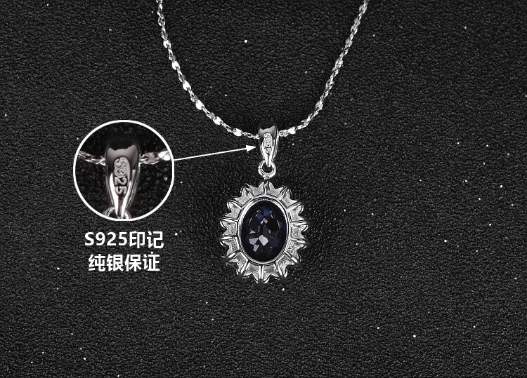 Guran Princess Diana sapphire women's pendant sterling silver platinum-plated colorful gemstone necklace tanzanite color gemstone egg-shaped necklace without chain