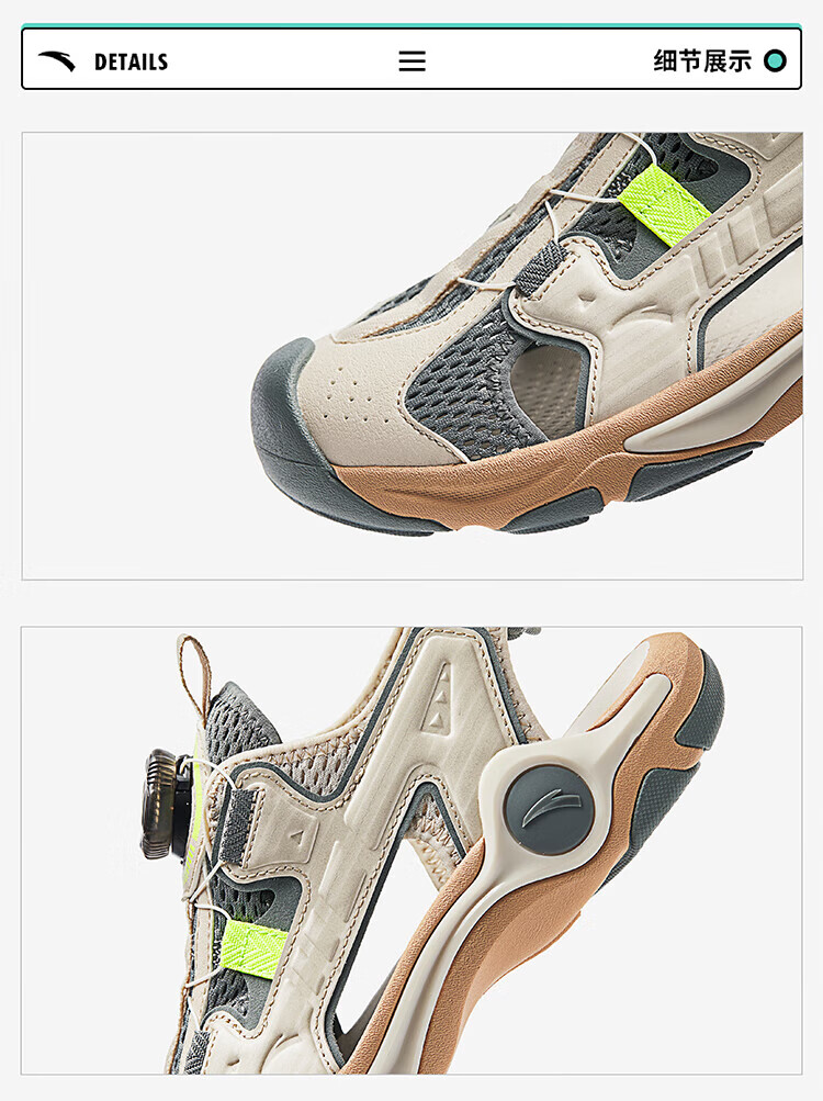 ANTA Children's Shoes Children's Sandals Men's and Big Children's Shoes 2025 Summer New Product Outdoor Baotou Outdoor Sports River Tracing Beach Shoes Black/Silver-1 33