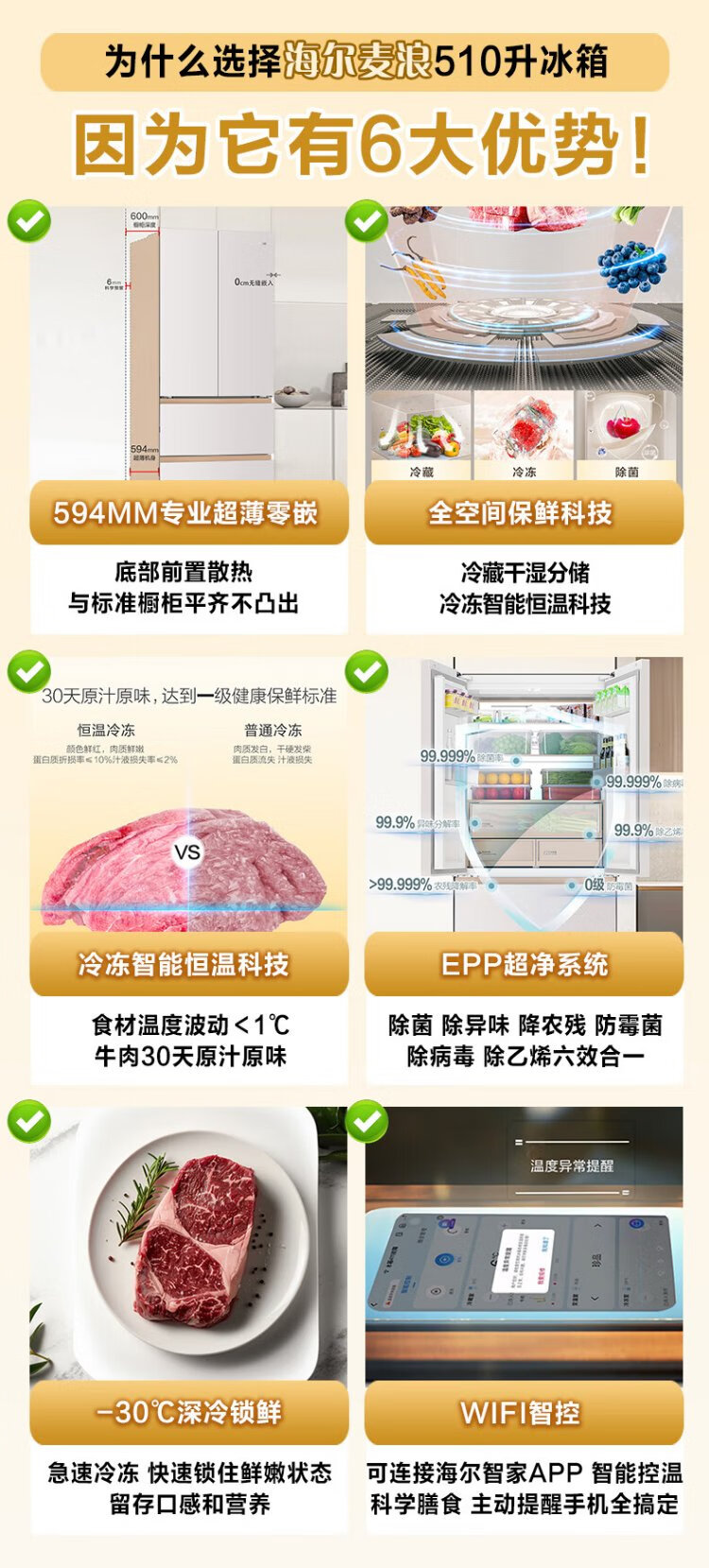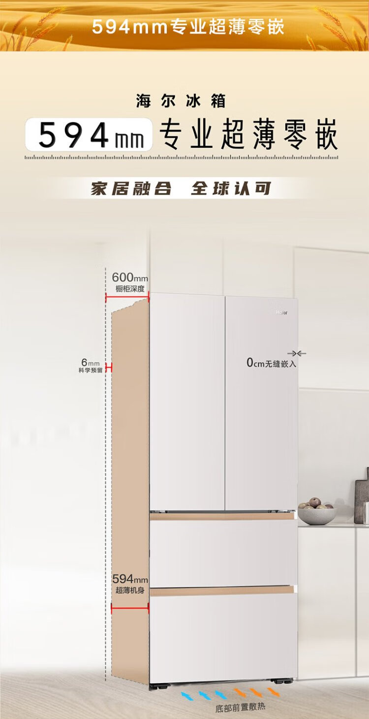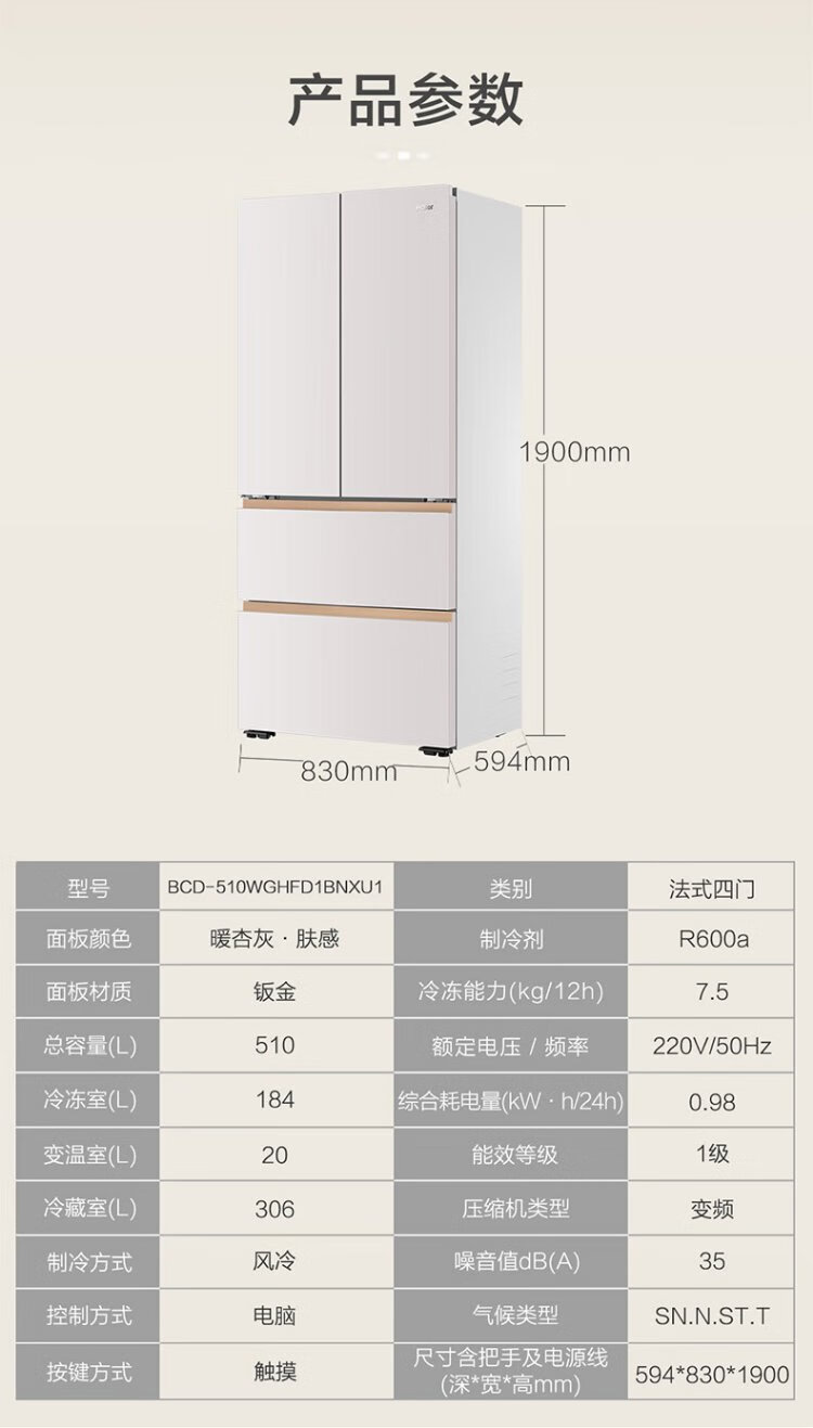 Haier Mailang Refrigerator 510 liter French multi-door four-door full-space freshness preservation 594mm ultra-thin zero-embedded refrigerator first-class energy efficiency dual-frequency household large-capacity refrigerator 594mm professional ultra-thin zero-embedded + full-space freshness preservation technology