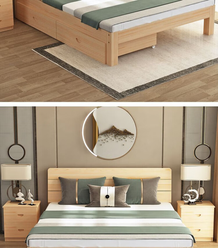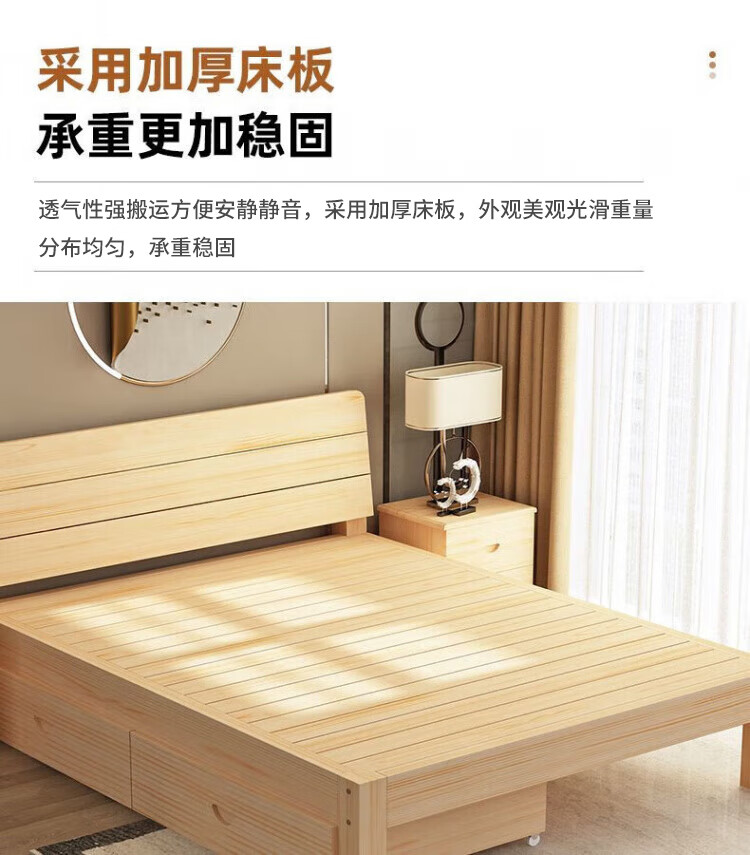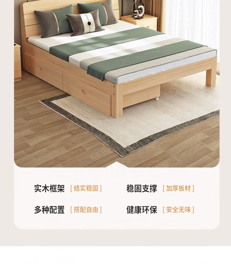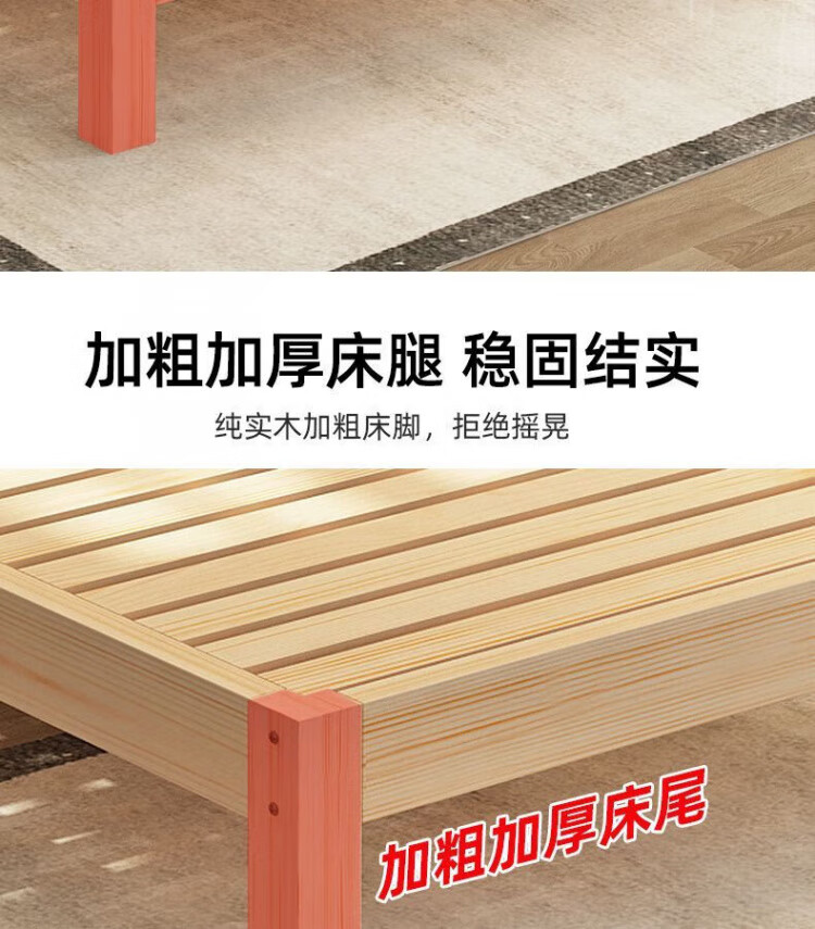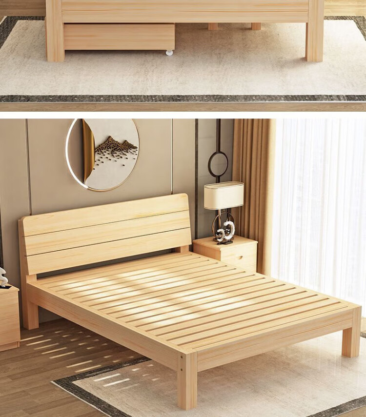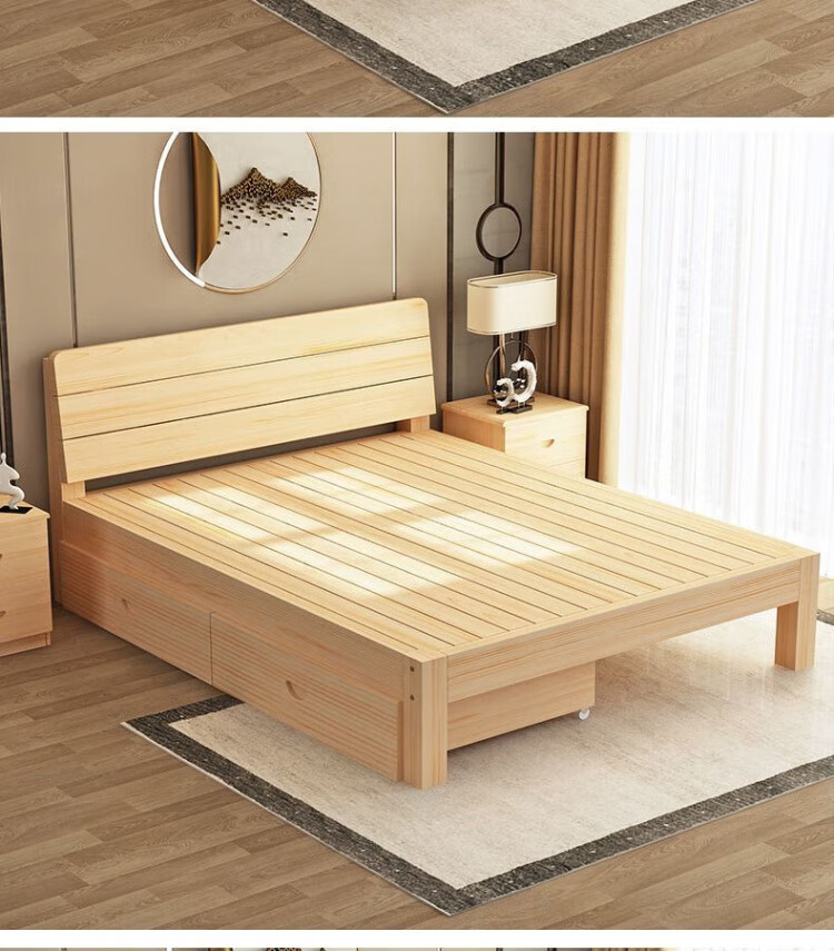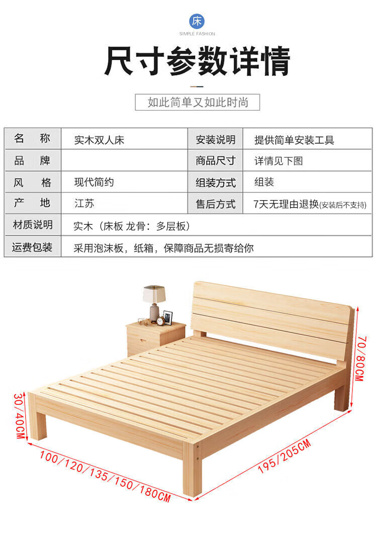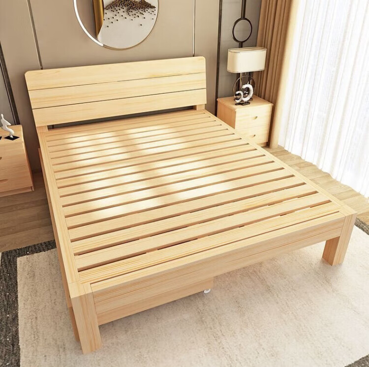Biaoxun solid wood bed double 1.8m modern simple 1.5m home master bedroom double bed rental house bed 1.2m single bed bed legs 30cm high single bed 1500mm*2000mm recommended