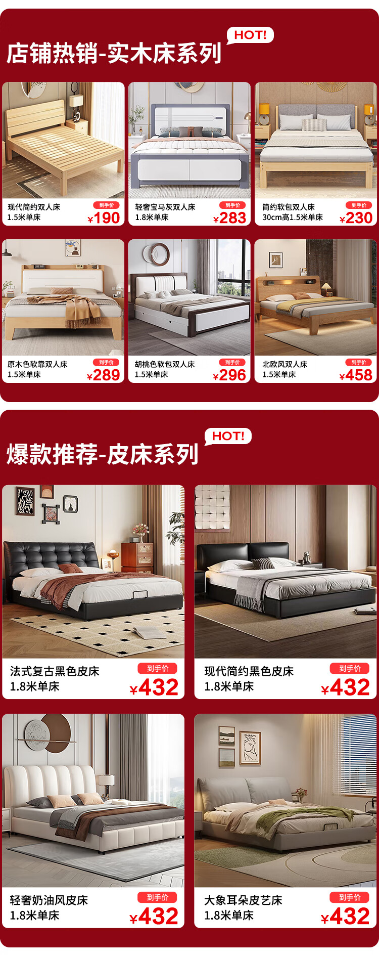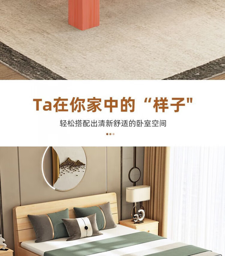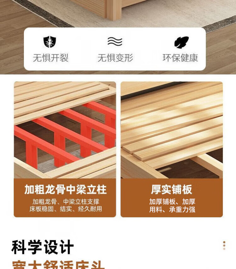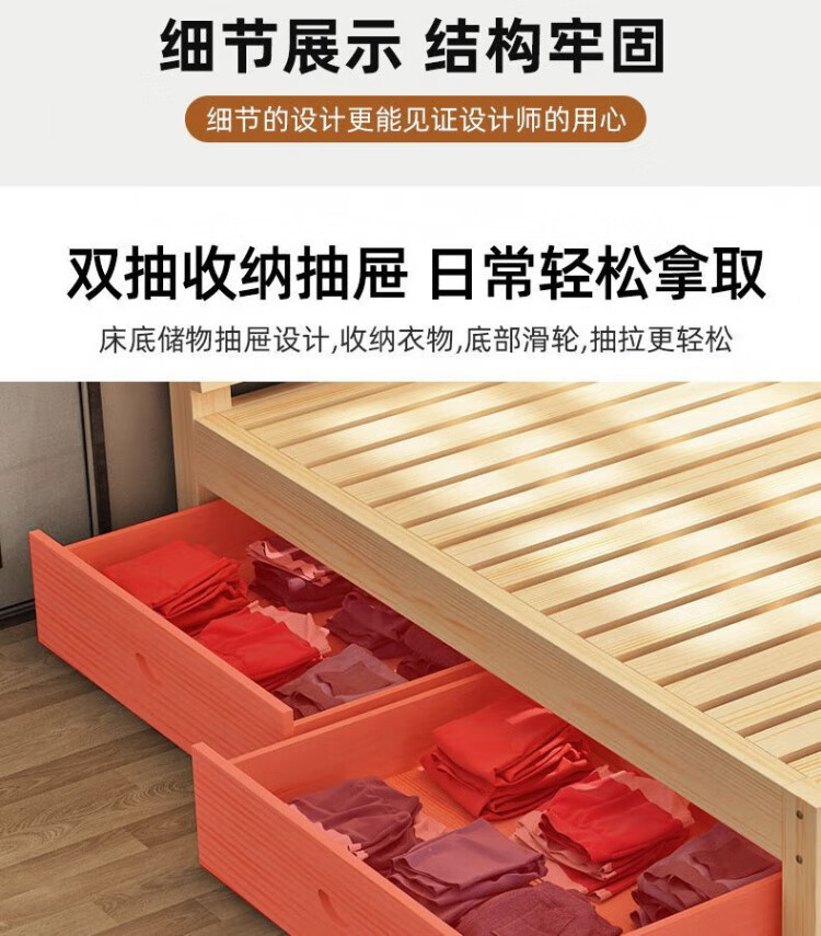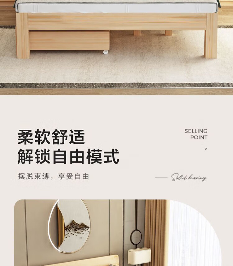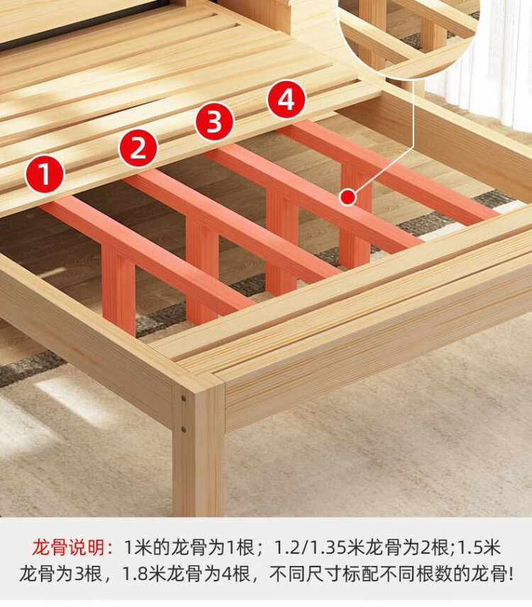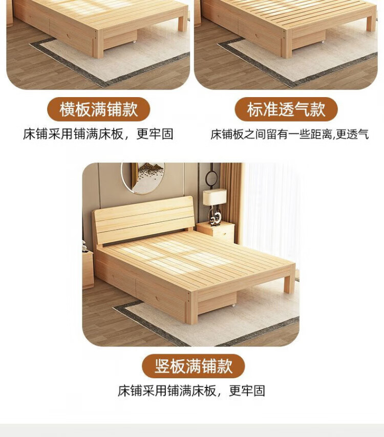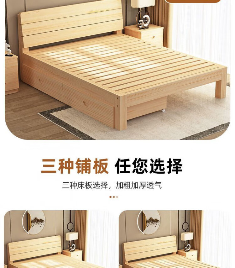 Biaoxun solid wood bed double 1.8m modern simple 1.5m home master bedroom double bed rental house bed 1.2m single bed bed legs 30cm high single bed 1500mm*2000mm recommended