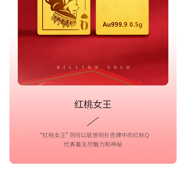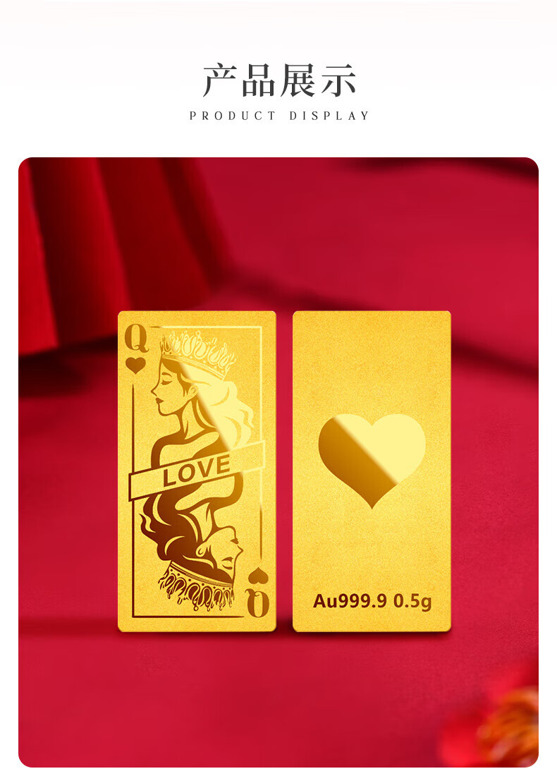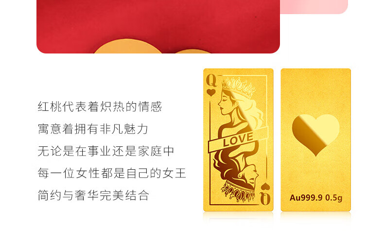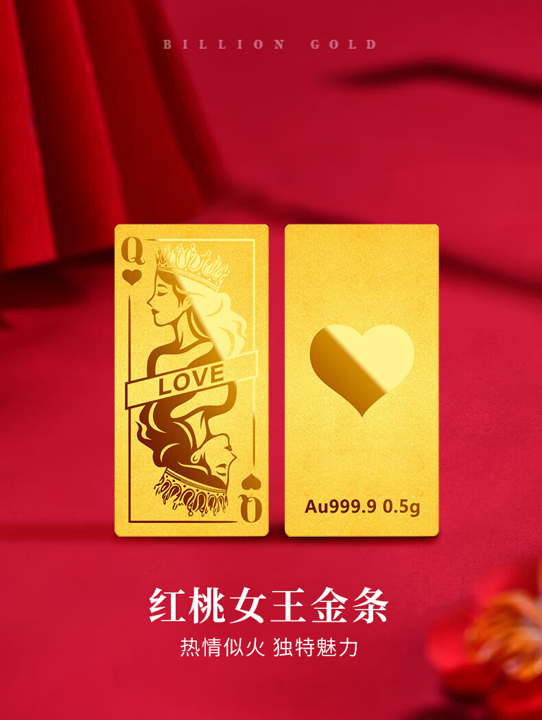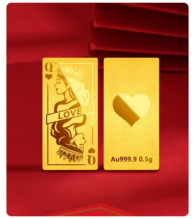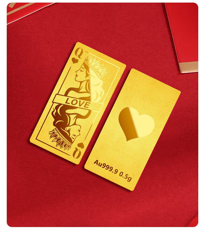 Bank of China Billion Gold Queen of Hearts Poker Gold Bars Gold Investment Gold Ornaments Pure Gold Card Gold Pieces Birthday and Valentine's Day Gifts for Your Girlfriend Queen of Hearts Gold Bars 0.5g