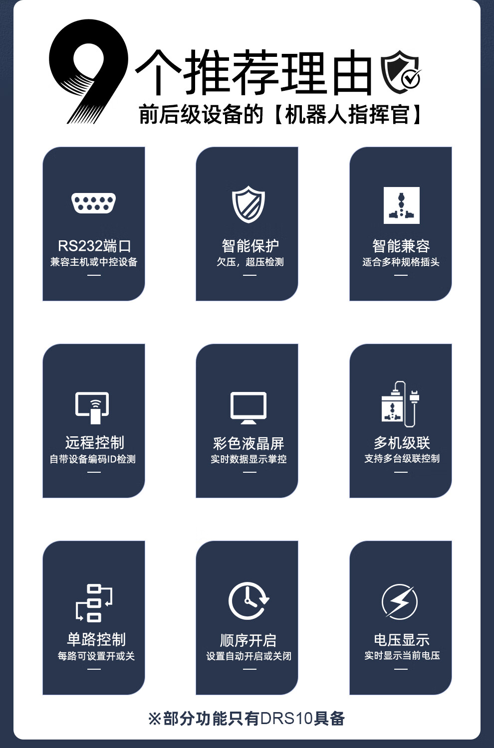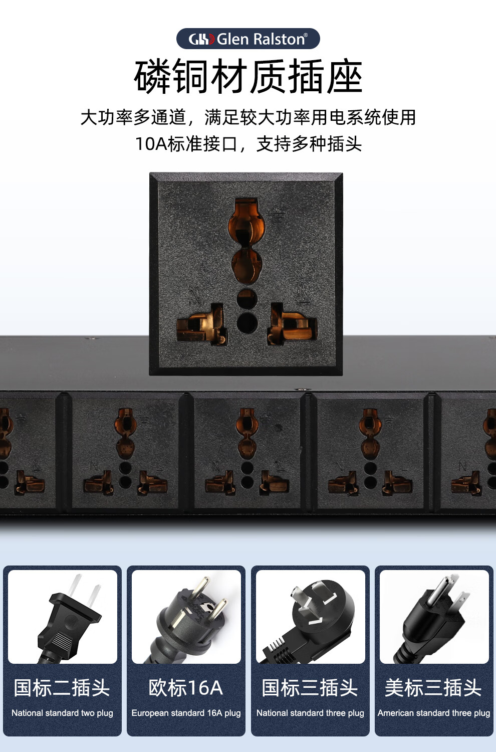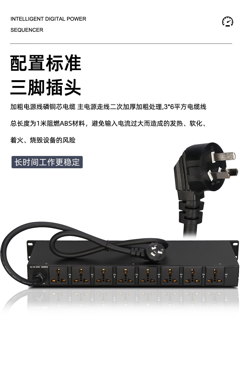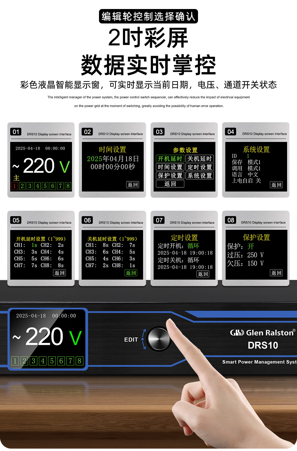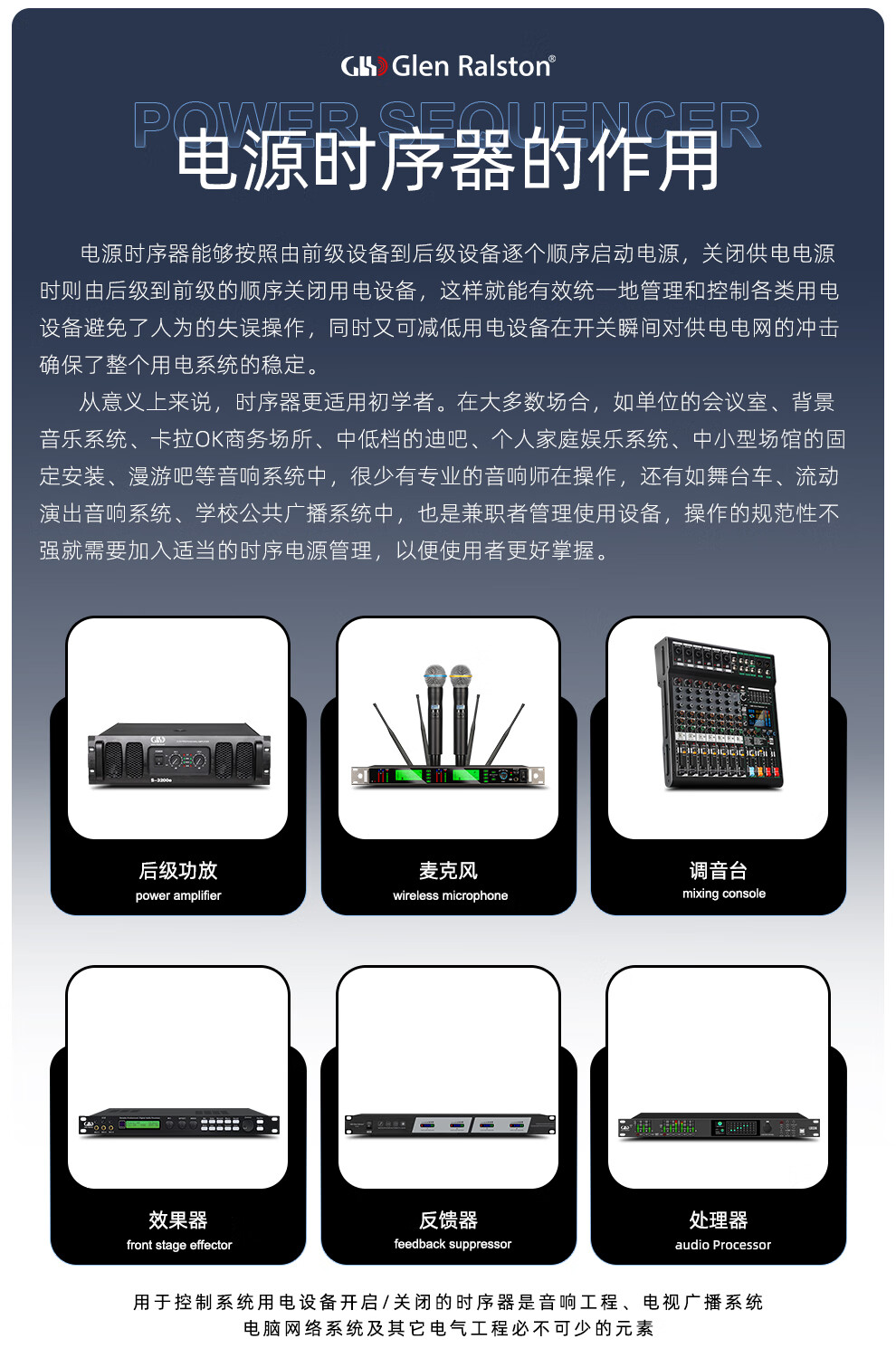 Glenston professional D8 10-way power supply sequencer with filter engineering RS232 serial port cascade network remote central control independent sequence switch controller conference stage broadcast conference D8 (8-way power switch sequencer with filter)