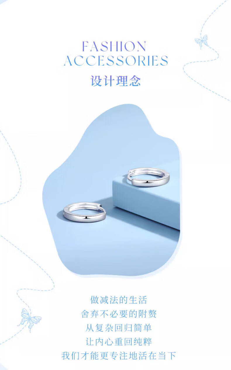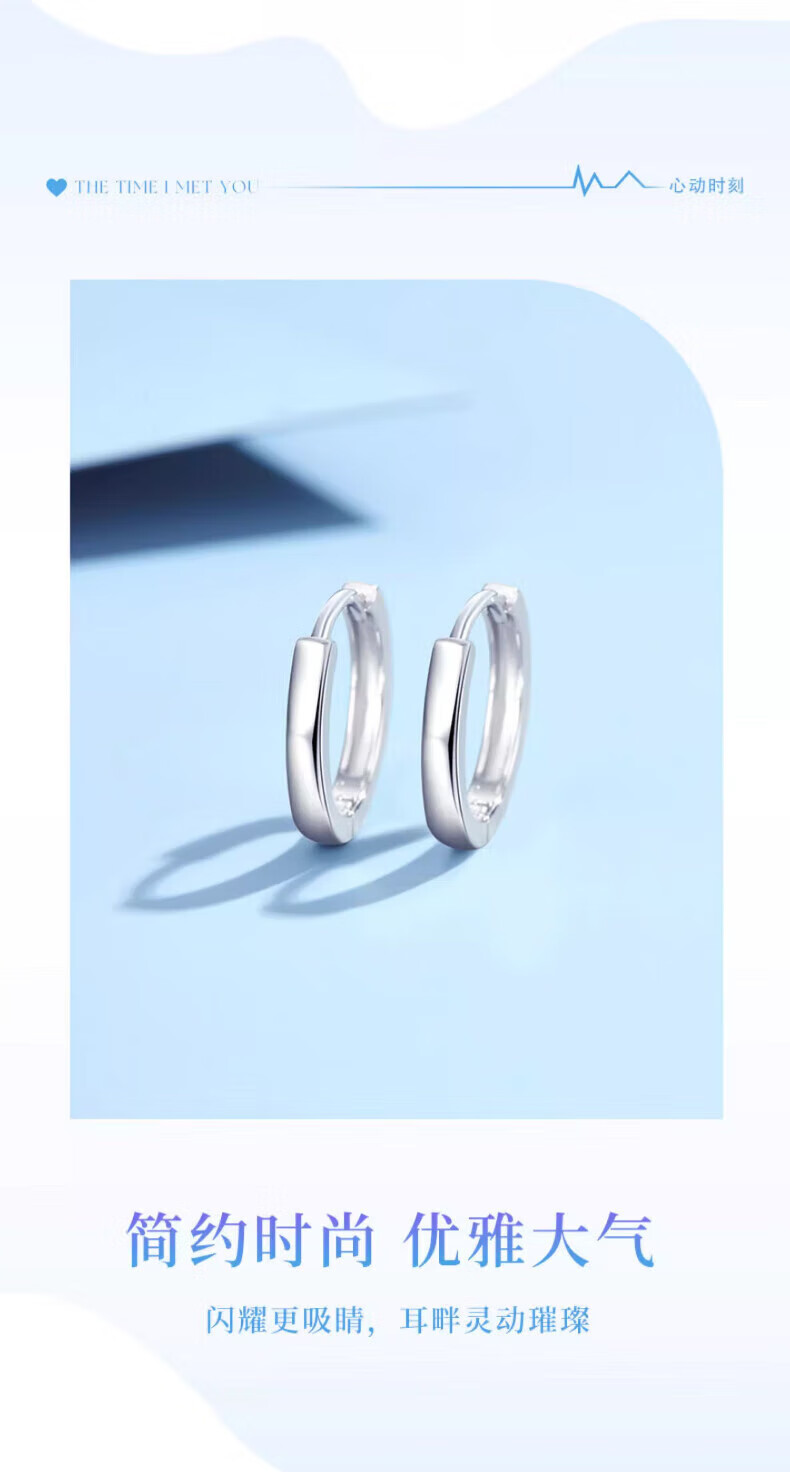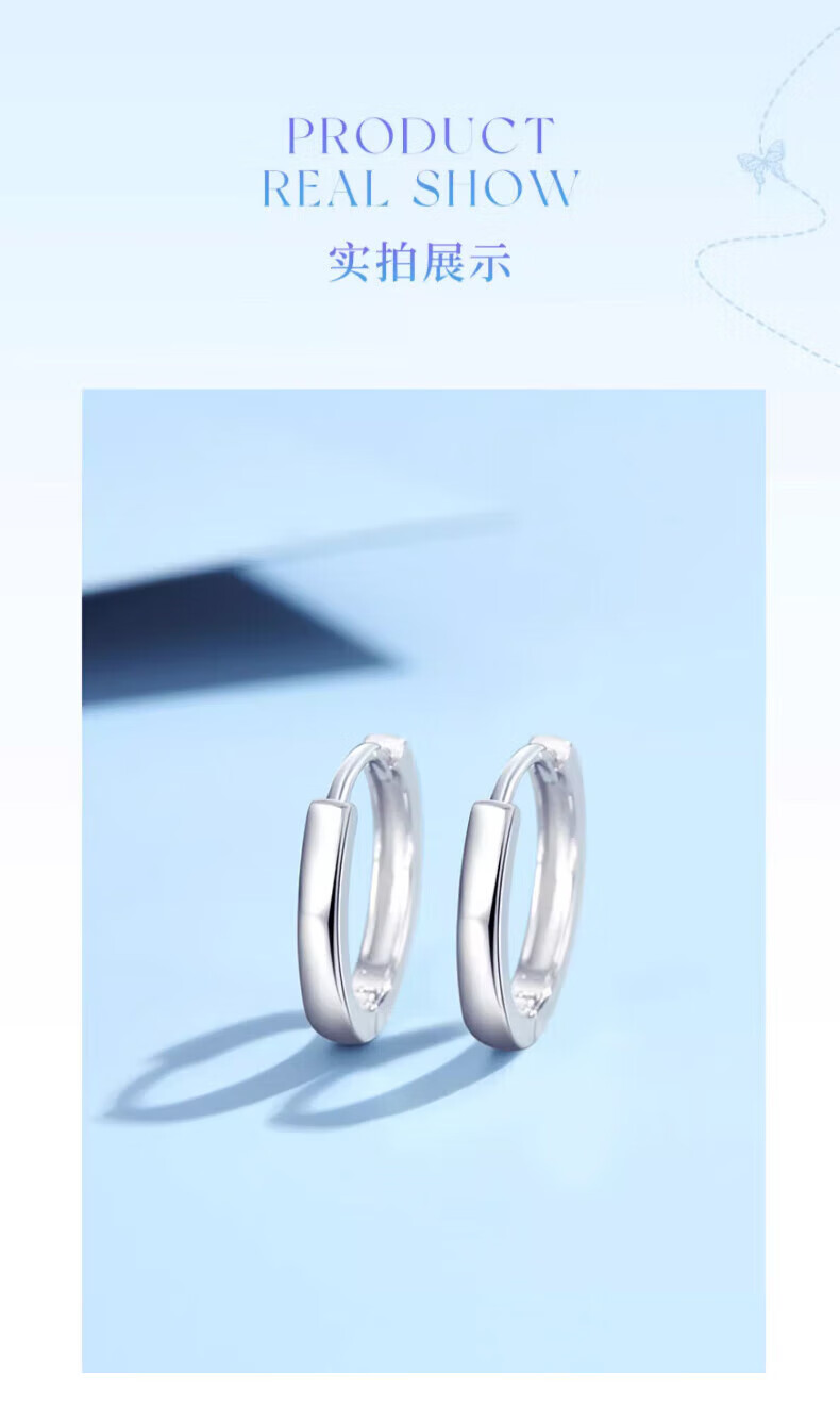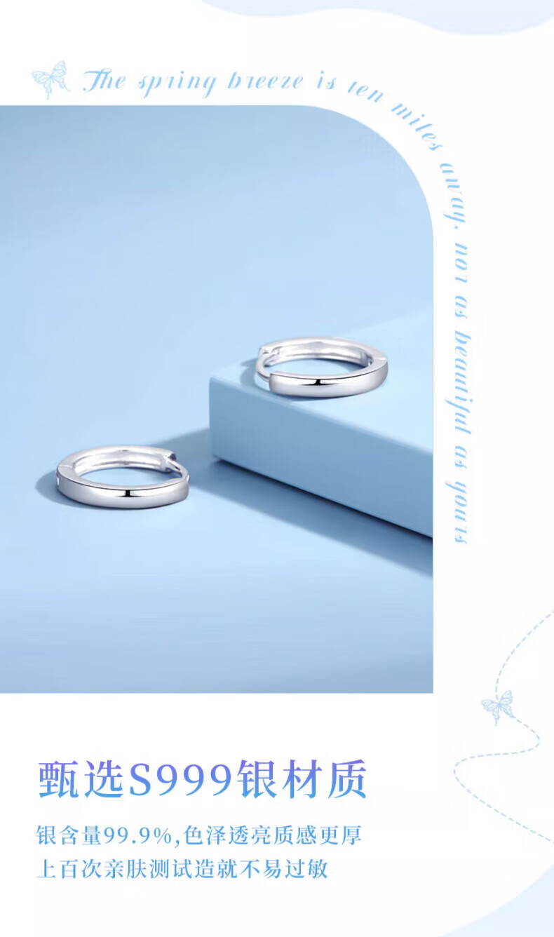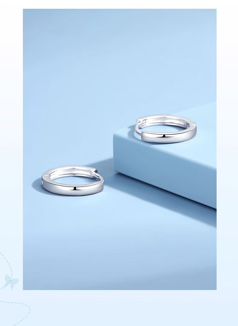 Lao Fengxiang 999 sterling silver ear piercing plain hoop earrings for women niche high-end circle earrings birthday gifts for girls glossy plain hoop earrings-999 silver brand gift box
