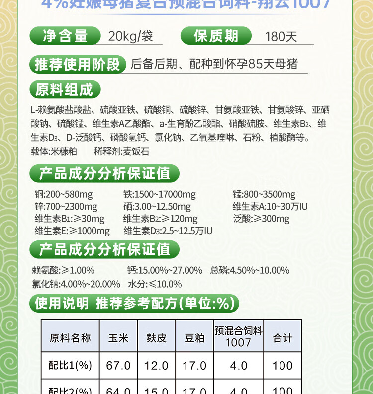 Yangxiang Feed Xiangyun-4% Pregnant Sow Premix 20kg/pack 1 pack 1 pack