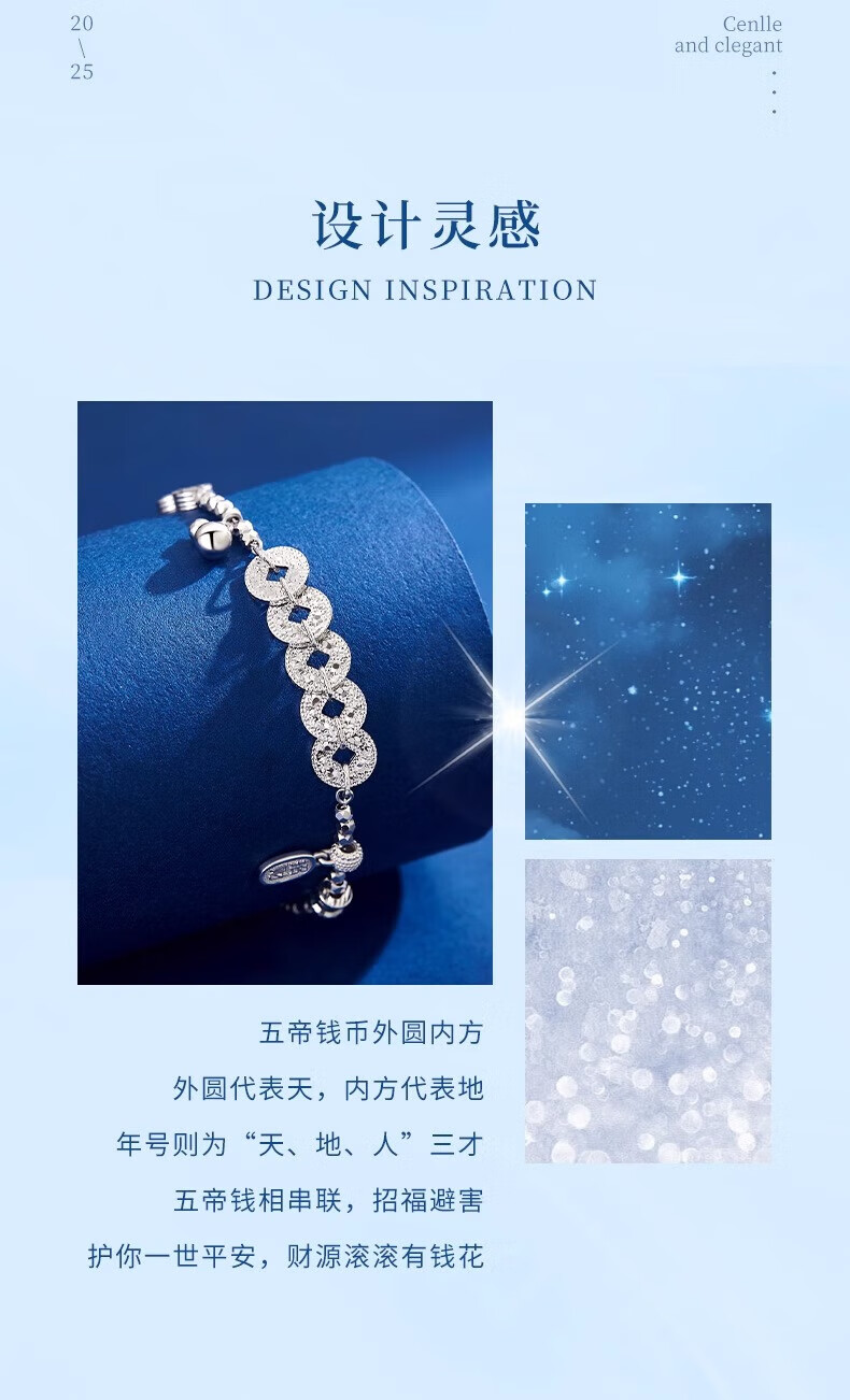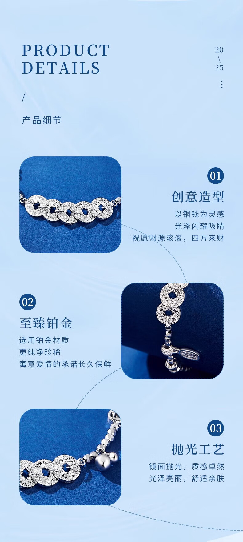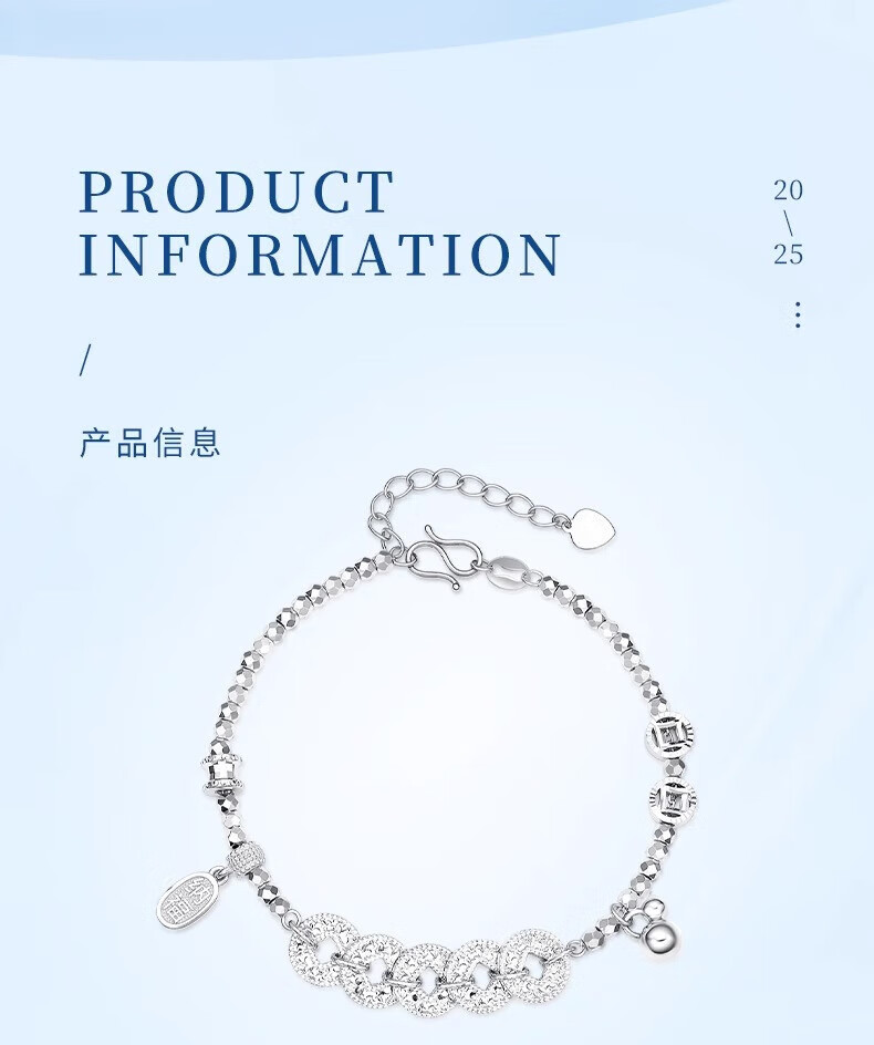Lao Fengxiang PT950 Platinum Crushed Ice Five Emperors Coin Bracelet 2025 New Wife Birthday Gift Mid-Autumn Festival Gift for Girlfriend Platinum Crushed Ice Five Emperors Coin Bracelet About 13.6g