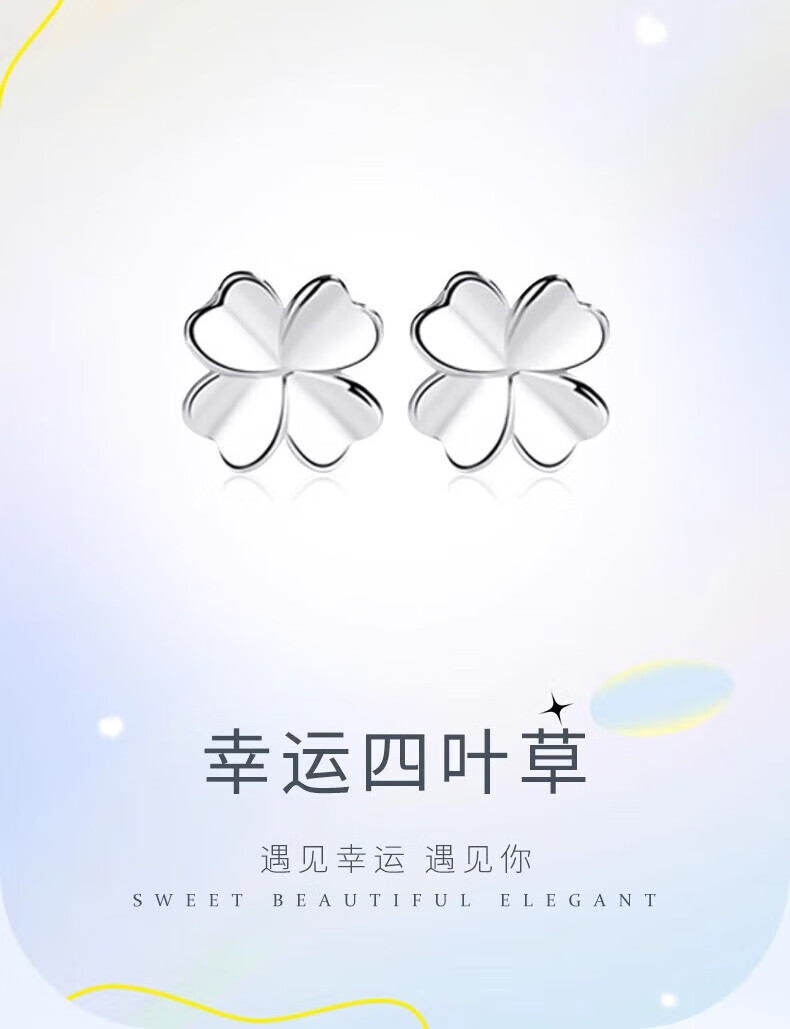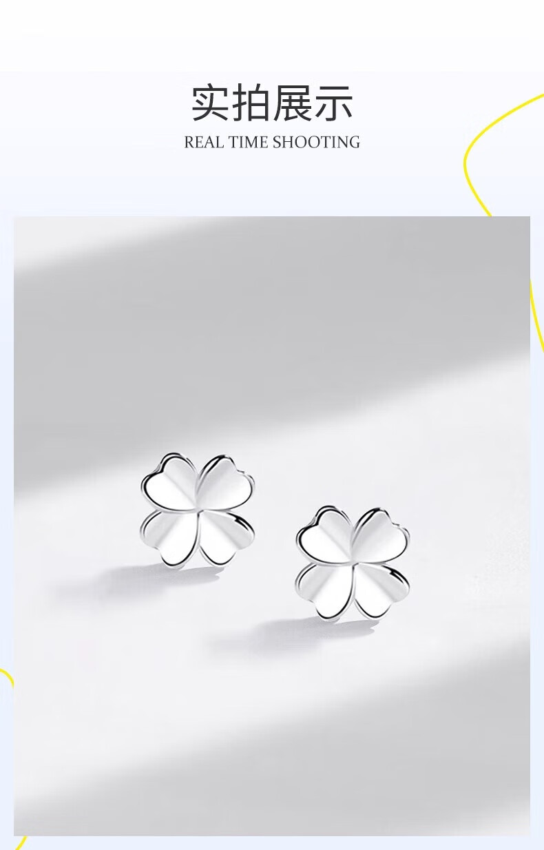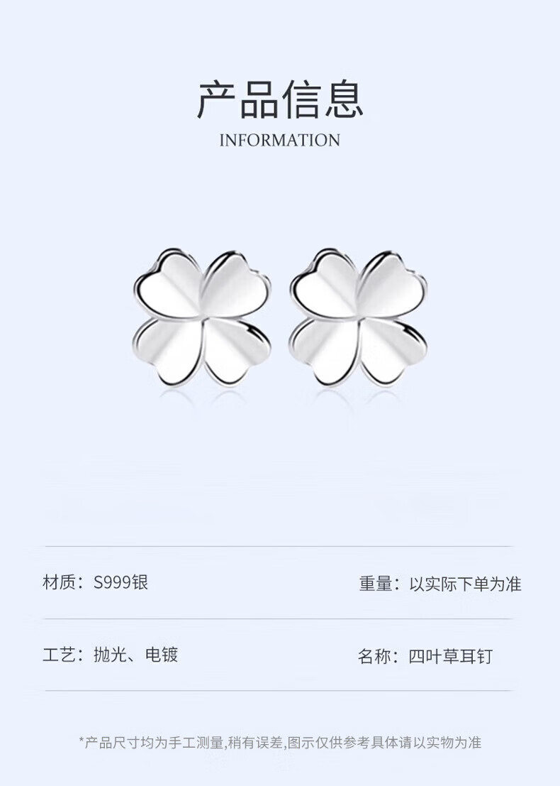 BJYLS999 Pure Silver Four-leaf Clover Earrings Sterling Silver Earrings Women's Ear Piercing Jewelry Anniversary Birthday Gift for Girlfriend 999 Pure Silver Four-leaf Clover Earrings Pair