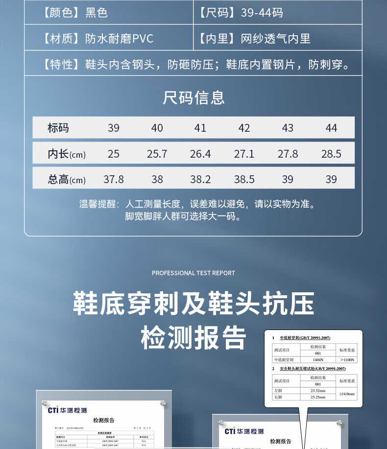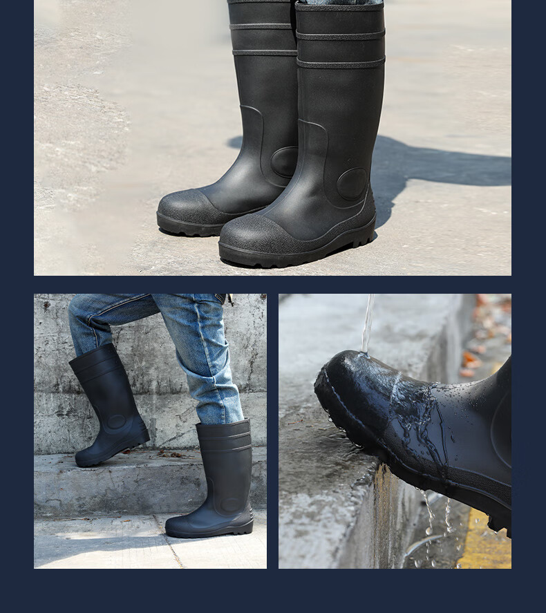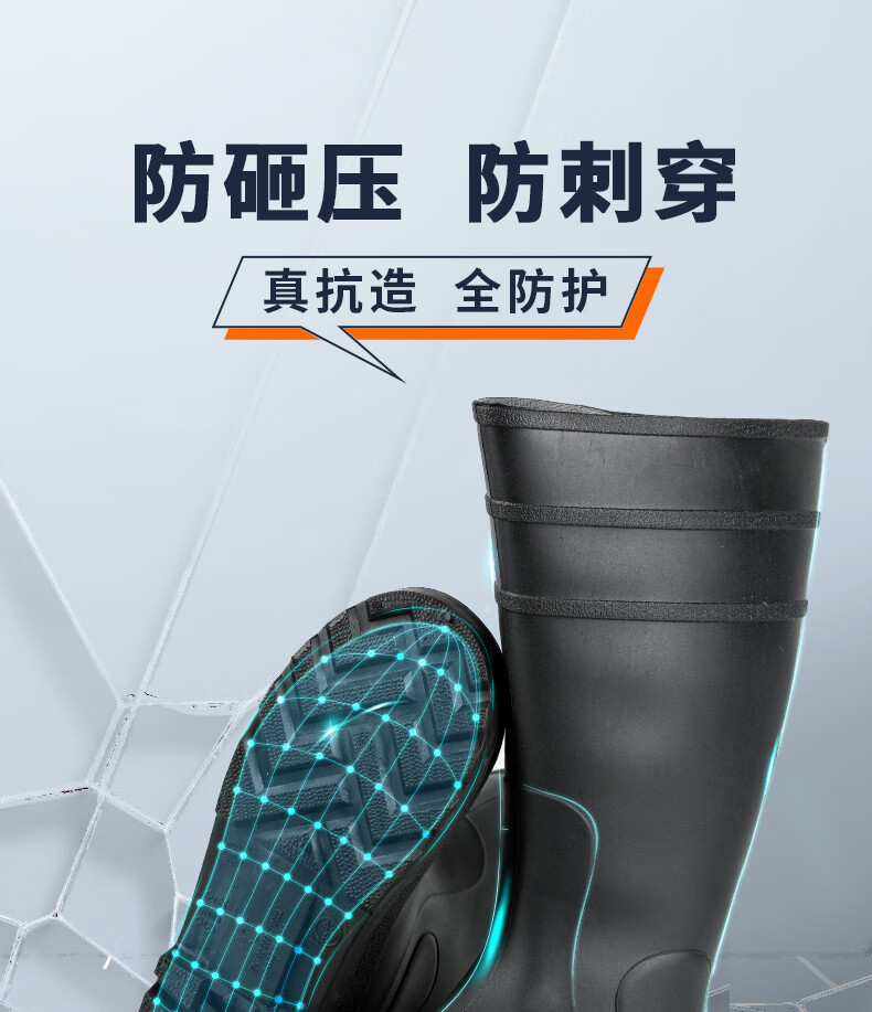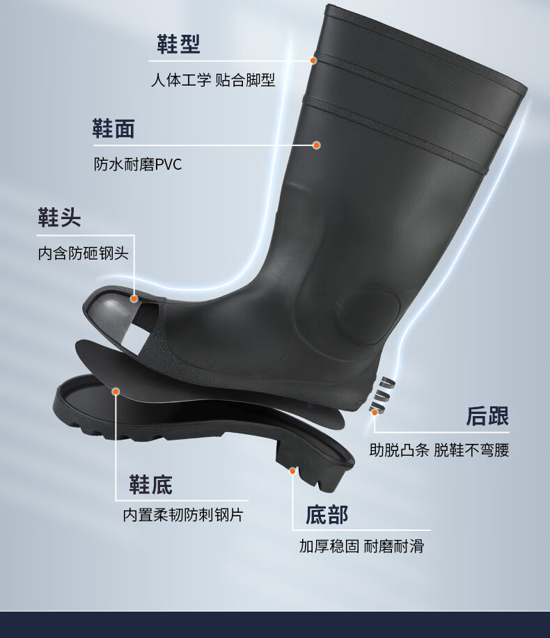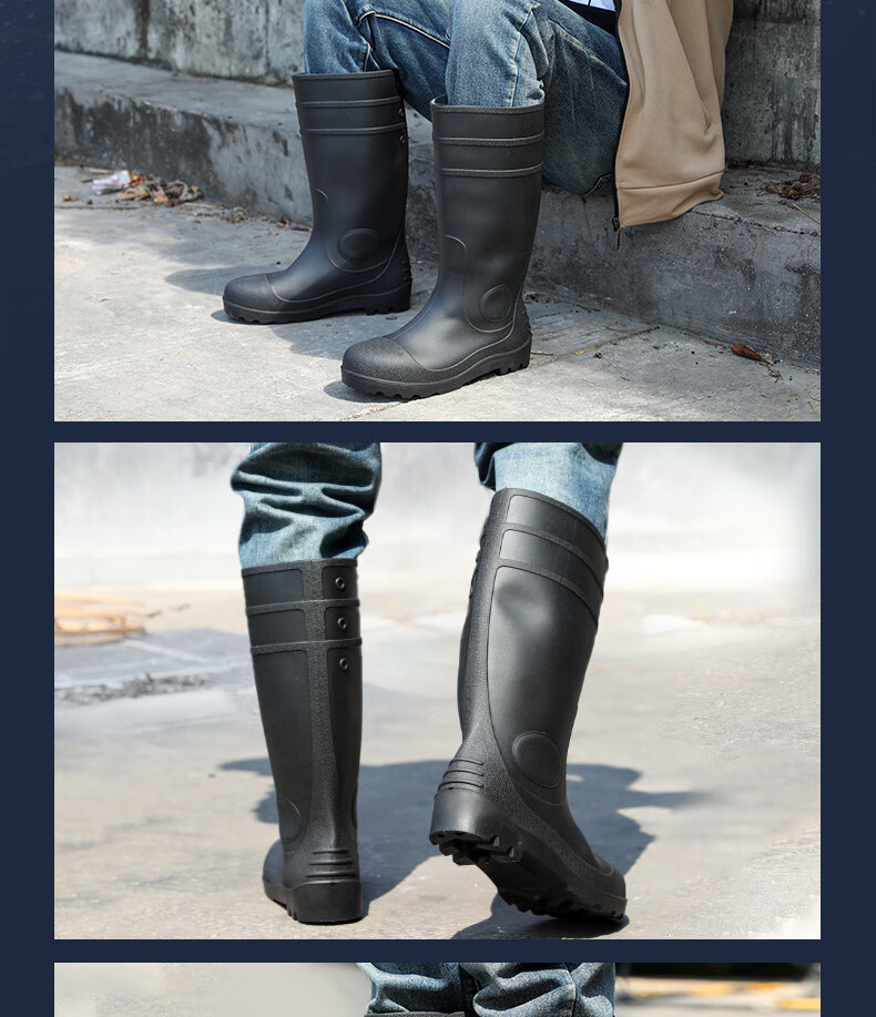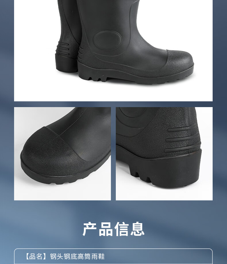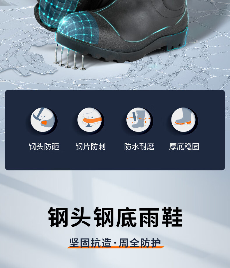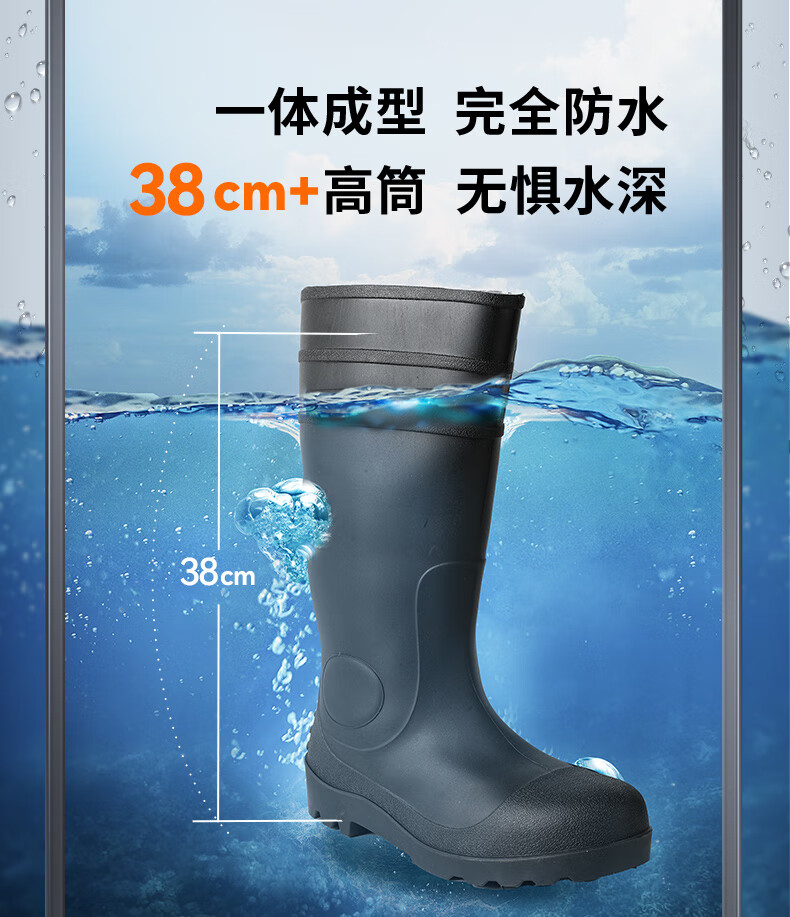 Labor protection rain boots mid-tube anti-smash and anti-puncture water shoes steel toe anti-puncture fire-fighting miners steel plate steel sole rubber shoes high tube black (38cm) 42