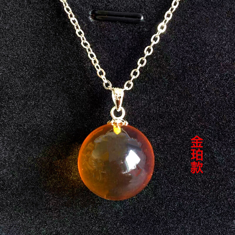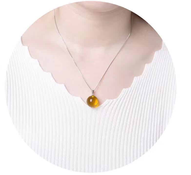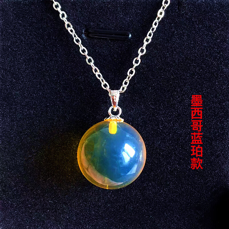 Fat Donglai quality amber and blue amber pendant Mexico 5A water purification multi-meter necklace beeswax inlaid S925 silver beads multi-meter blue amber clavicle chain 16mm