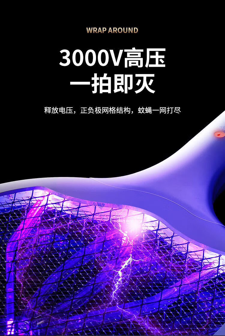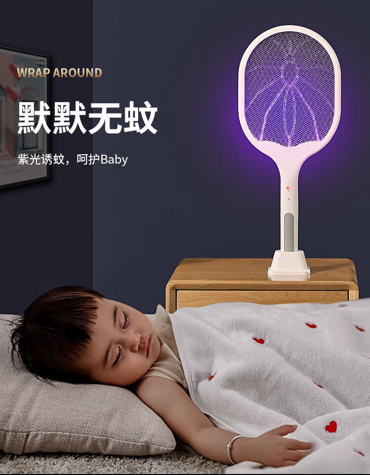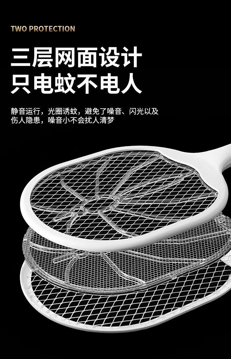 Joyoung Beauty Electric Mosquito Swatter Rechargeable Three-layer Mesh Fly Swatter Powerful Household Multifunctional Mosquito Killer Electric Mosquito Swatter Exclusive Model 2-in-1 Automatic Mosquito Trap