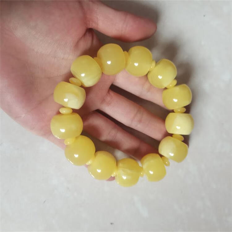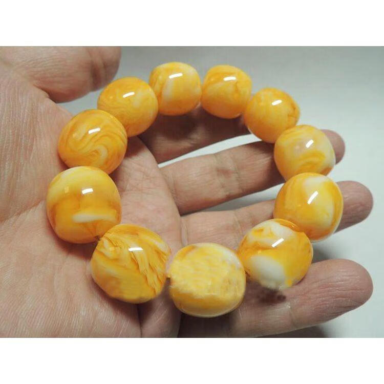 High quality amber chicken fat yellow bracelet second generation beeswax Russian material white flower bracelet necklace round bead pendant for men and women 18mm white honey amber 13 pieces