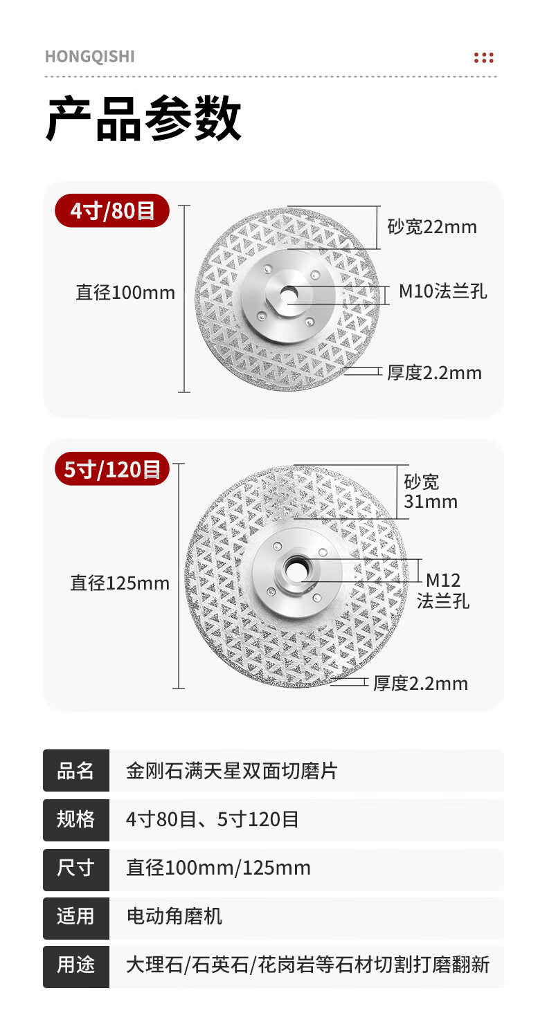 Red Knight diamond double-sided starry cutting disc marble tile quartz stone cutting disc polishing disc stone grinding disc 5 inches 125mm 120 mesh