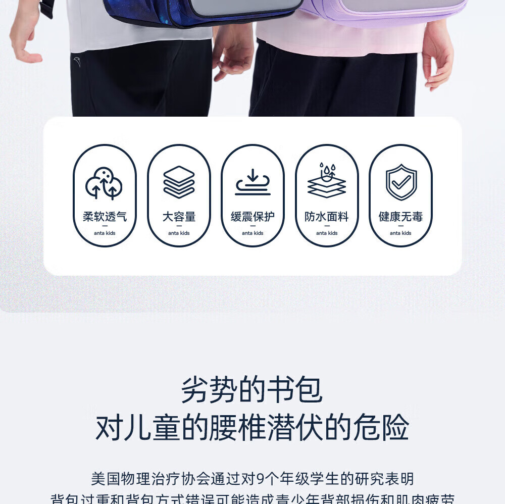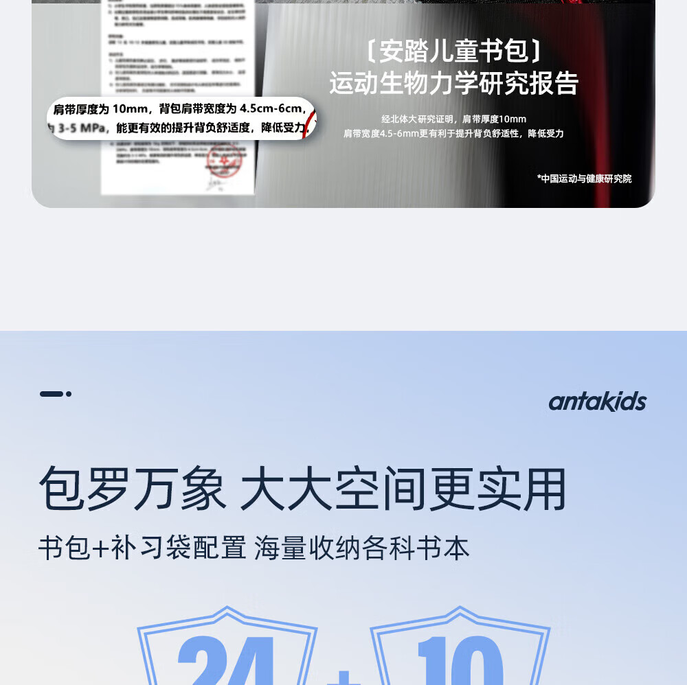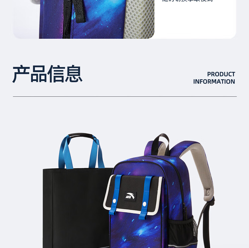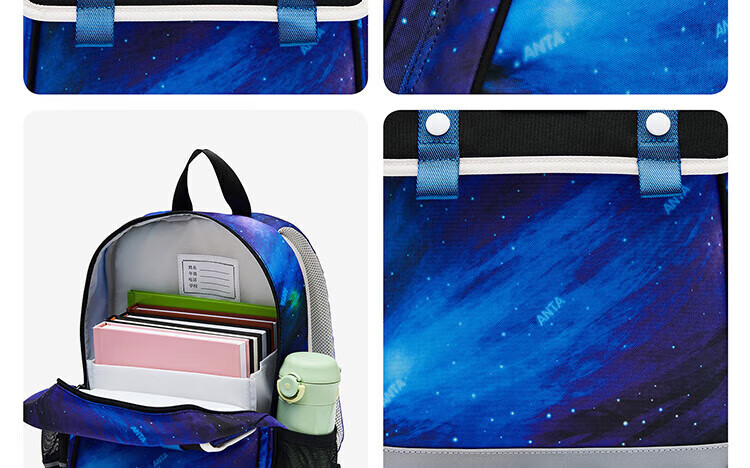 ANTA children's schoolbags for boys and girls, balanced decompression lightweight backpack + study bag black/red-4M