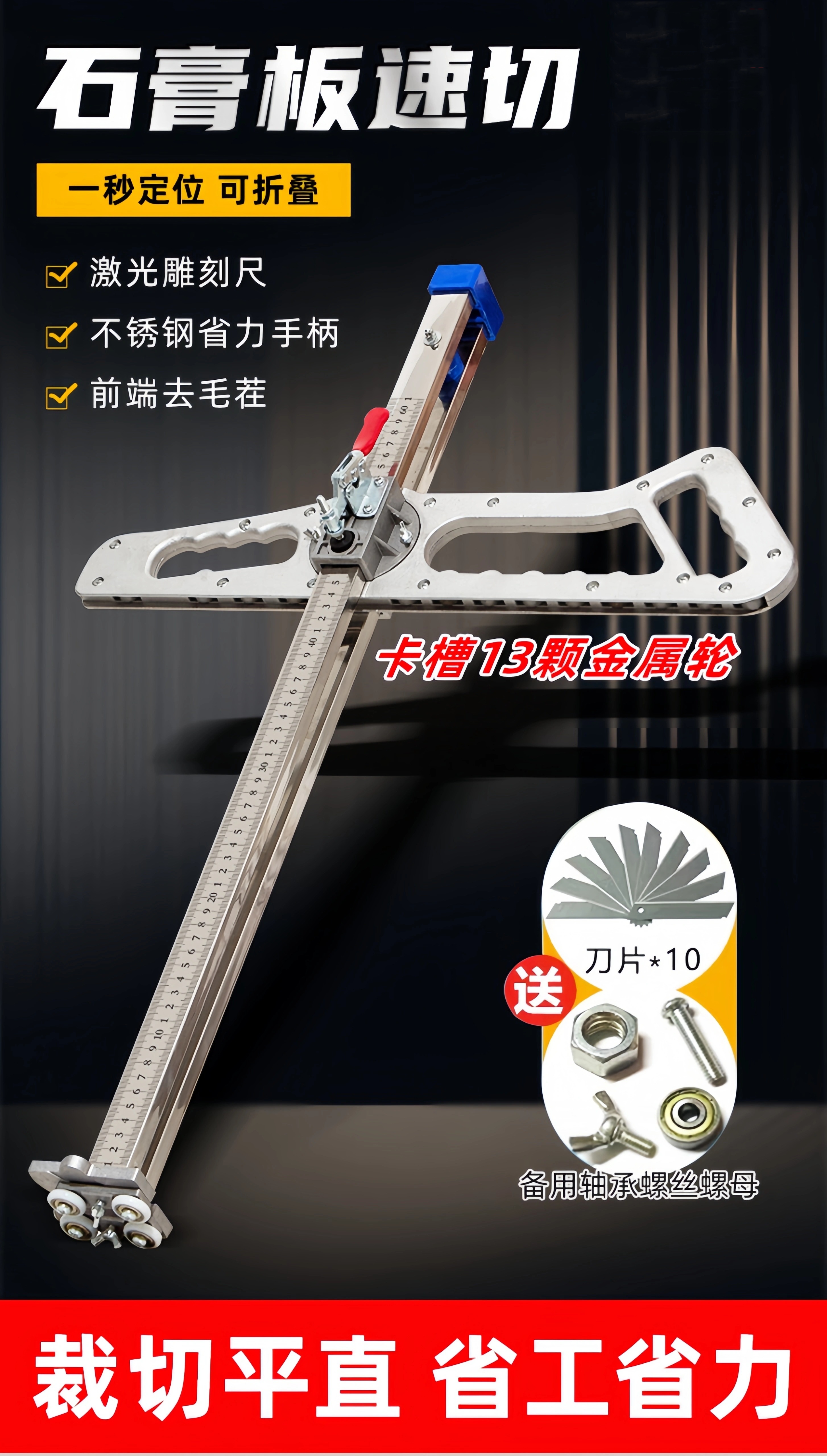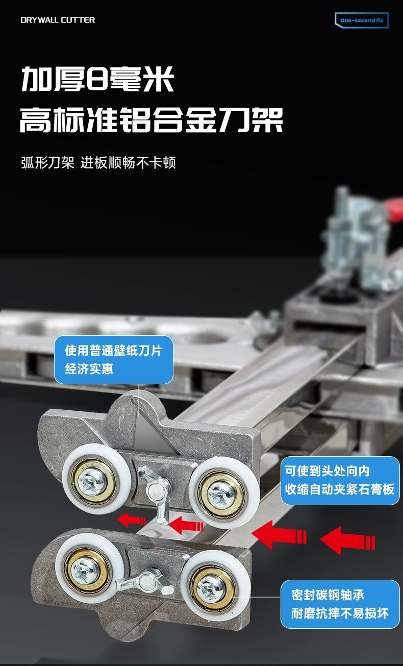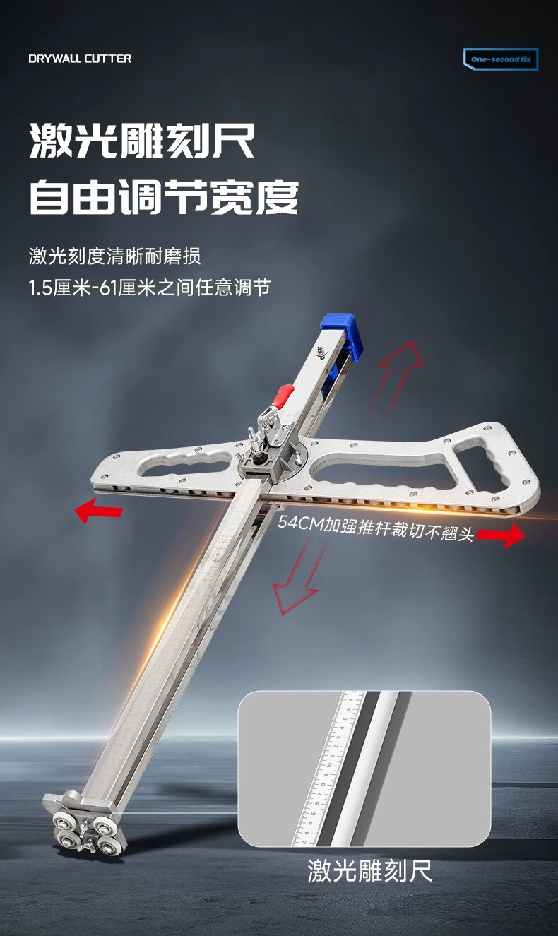Xingsheng gypsum board cutting artifact cutting board artifact woodworking special cutting roller foldable stainless steel dust-free push knife aluminum handle 20 wheels 4 knives one second double positioning thickened version