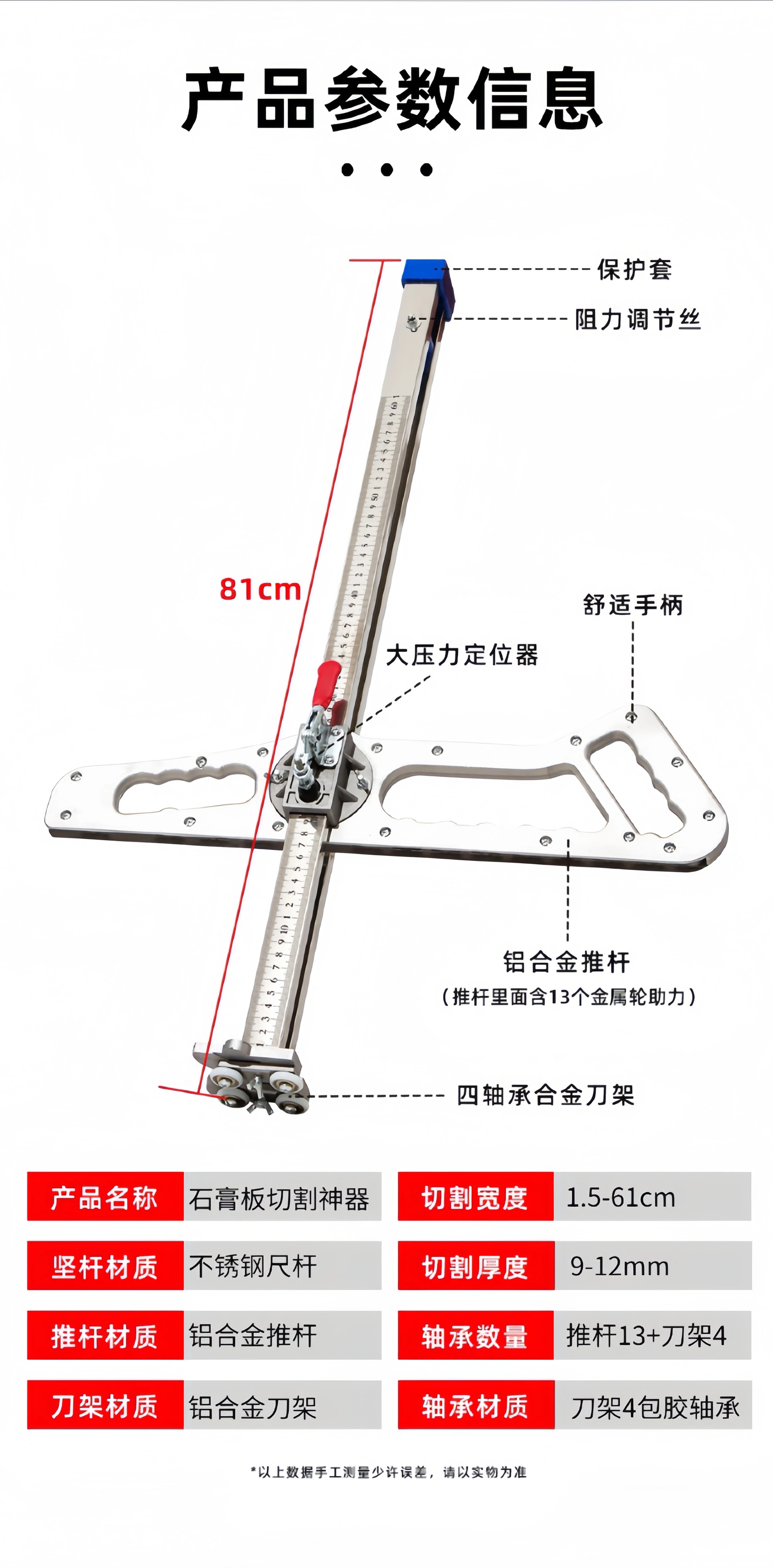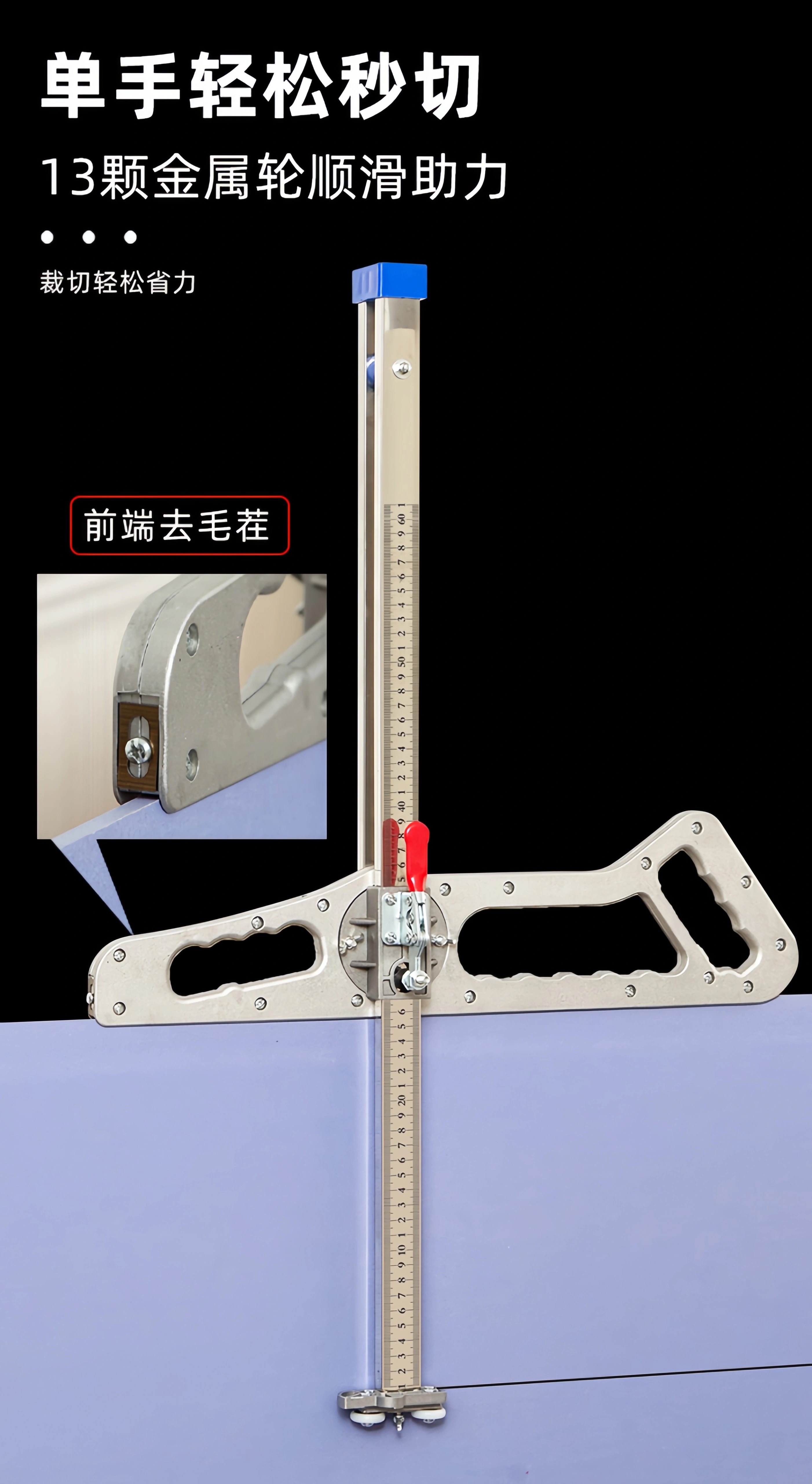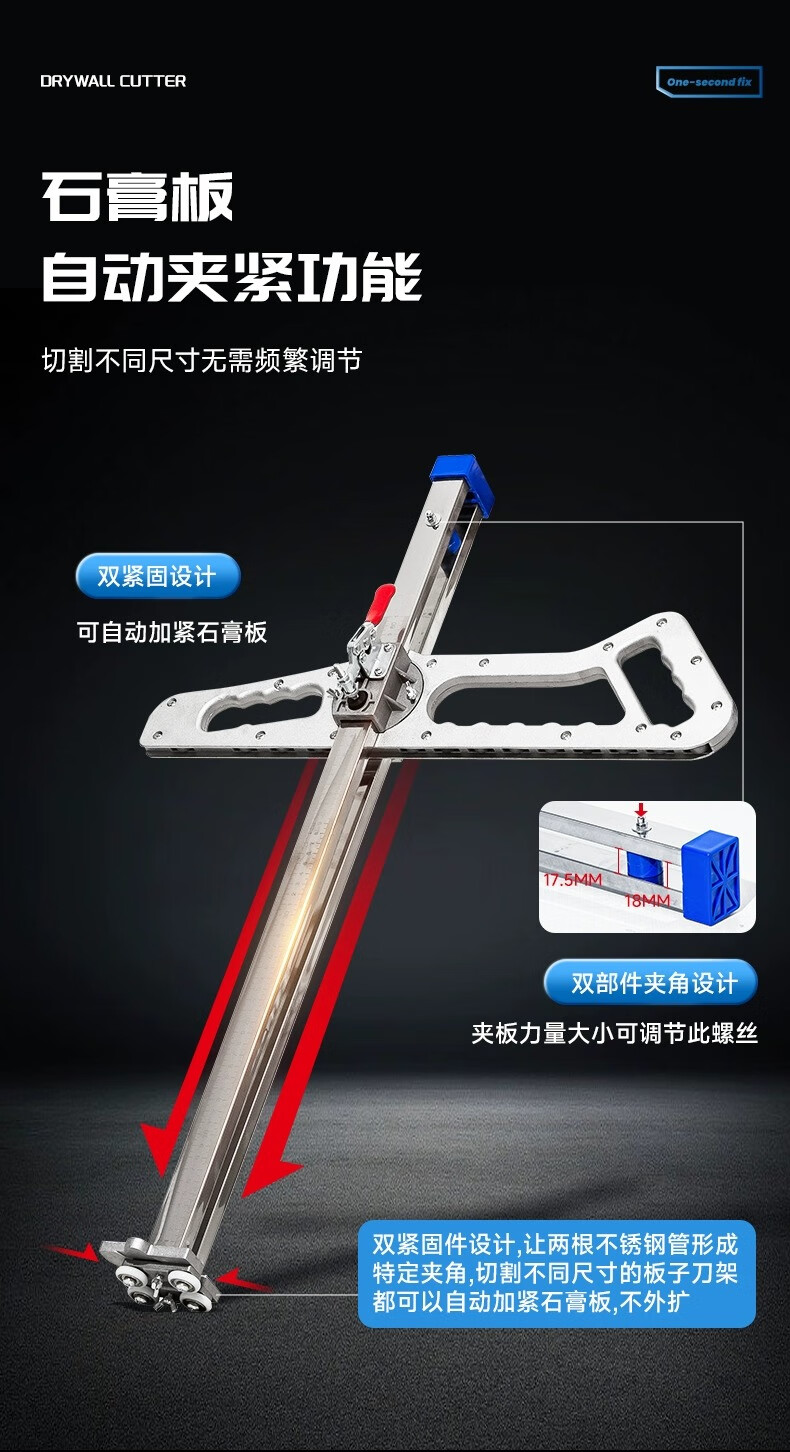 Xingsheng gypsum board cutting artifact cutting board artifact woodworking special cutting roller foldable stainless steel dust-free push knife aluminum handle 20 wheels 4 knives one second double positioning thickened version