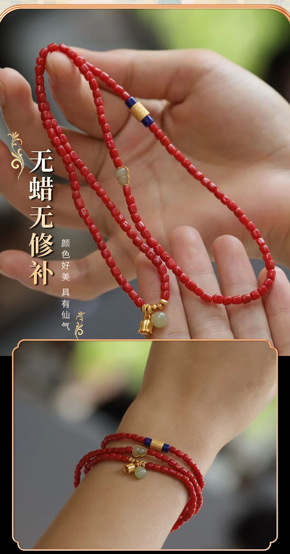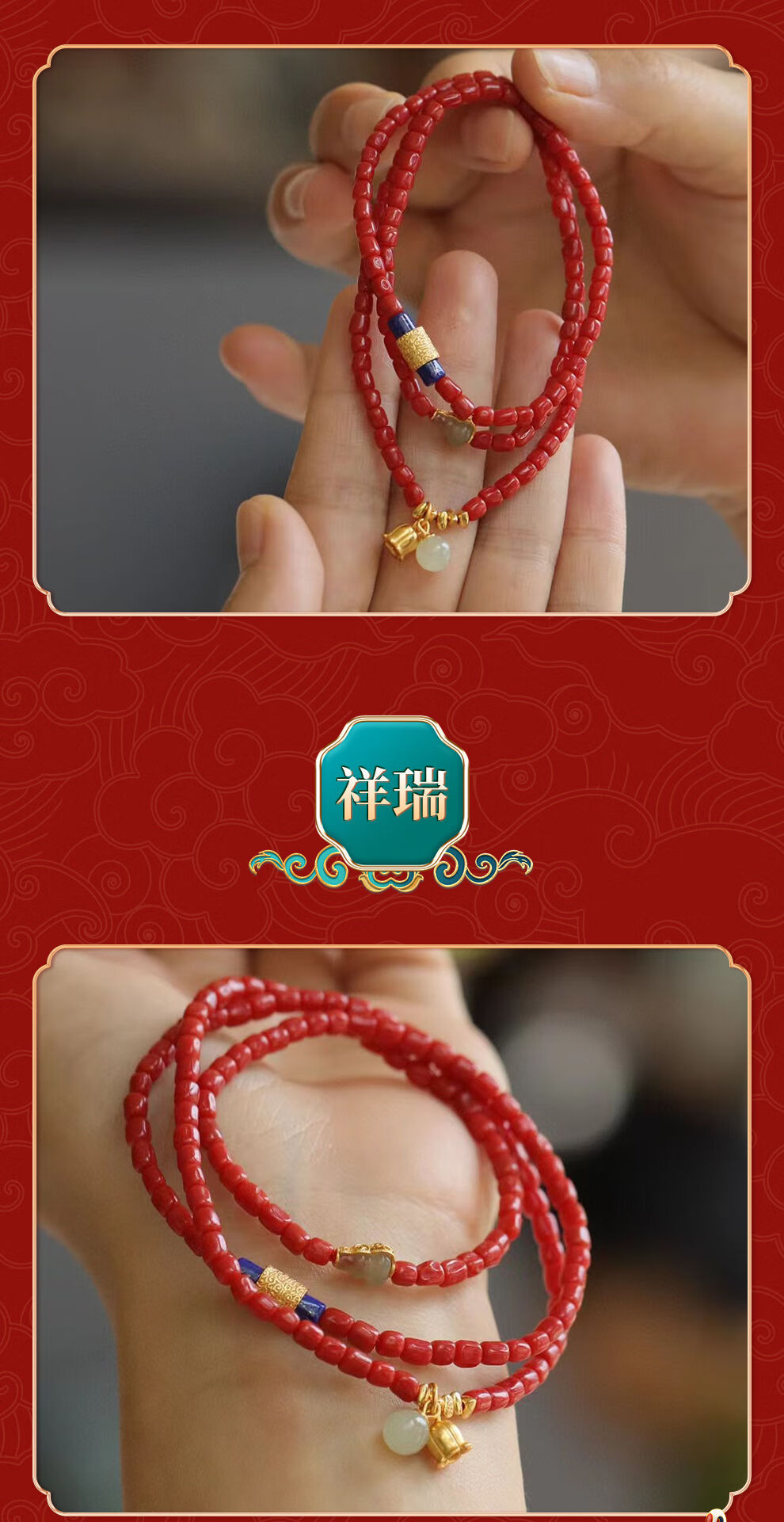 OeinOEIN new natural red organic gemstone bracelet barrel beads three-circle bracelet hidden gem seven treasures gift