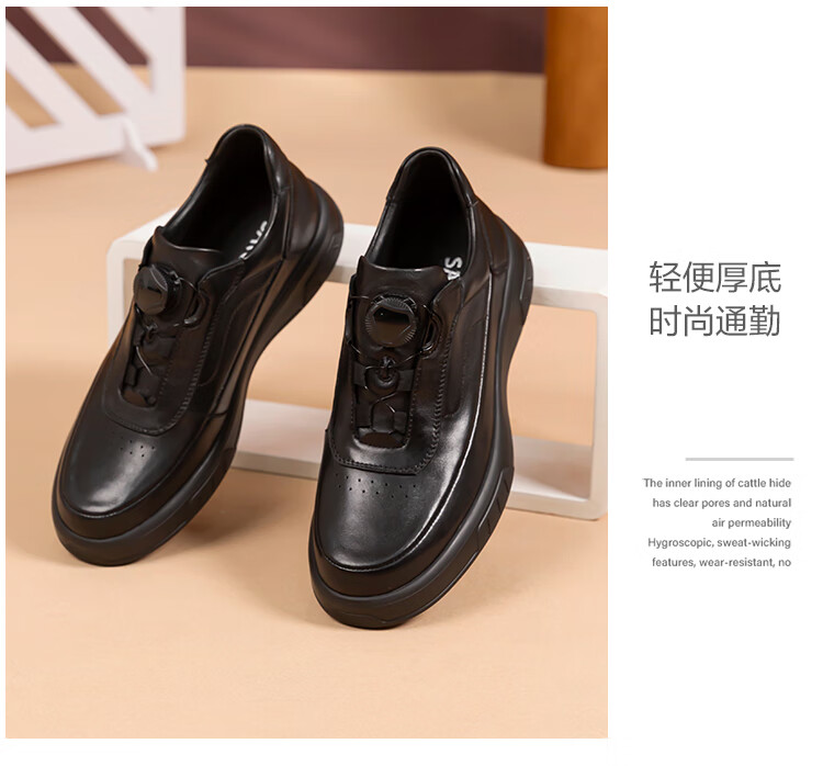Sachi Men's Shoes 2025 New Fashion Casual Shoes Comfortable Light Soft Round Toe Knob Buckle Thick Sole Commuting Men's Shoes Black (X20522401) 41 European Size (National Code 42)