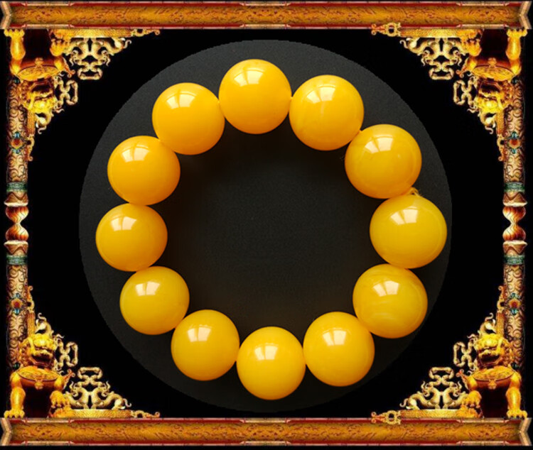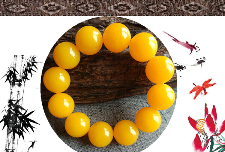 Quality second generation beeswax chicken fat yellow bracelet, Baltic pure yellow single circle amber round bead old bracelet, bead diameter 25mm, 10 beads for car selection