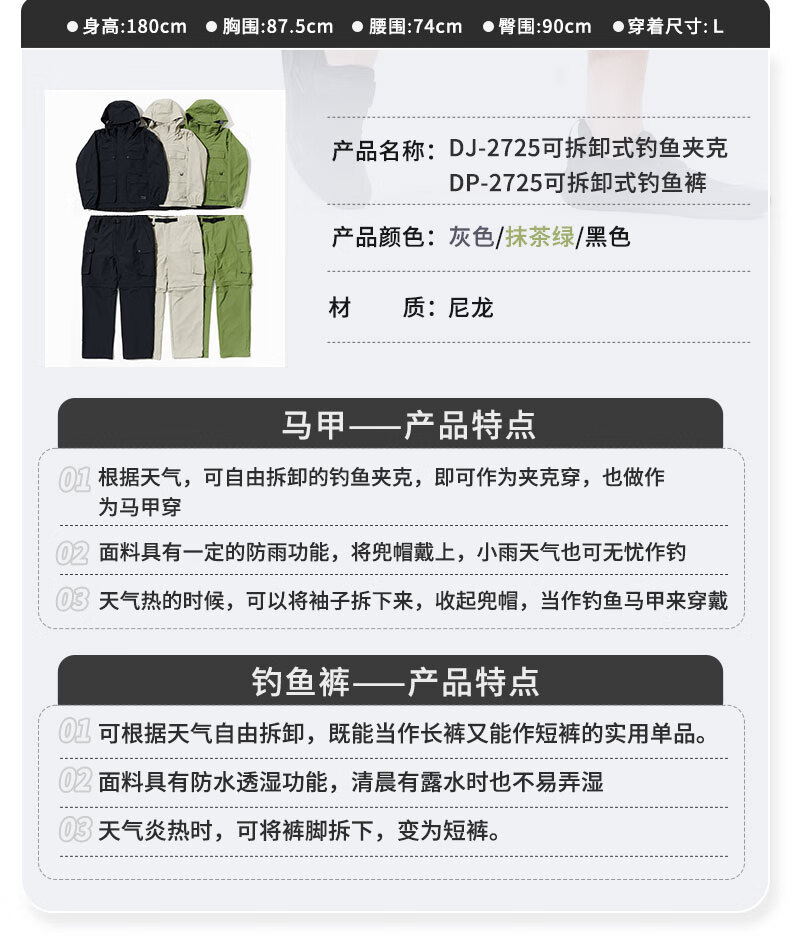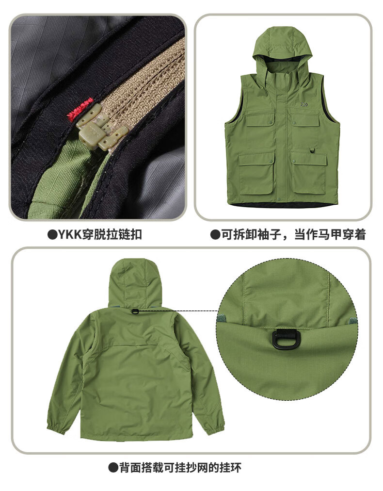 DAIWA 25 spring and summer DJ-2725 detachable fishing jacket trousers work vest shorts single piece - jacket black XL