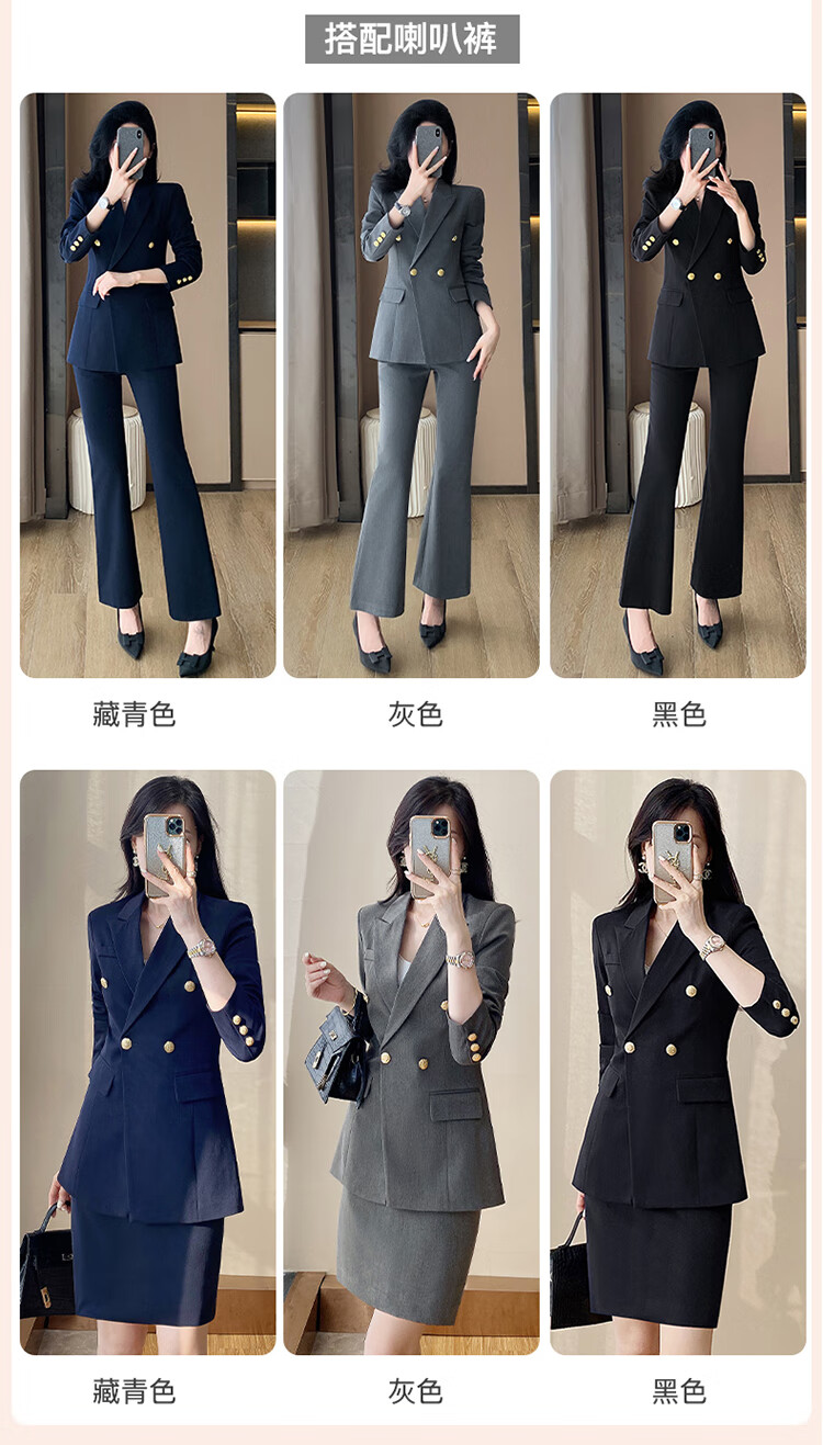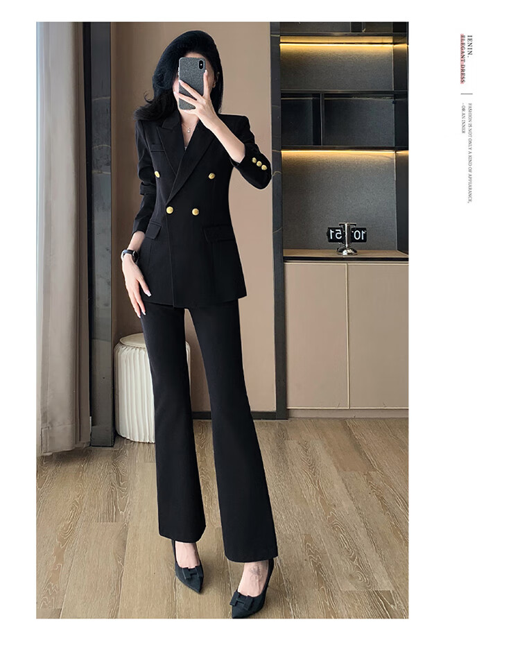 Suit suit women's high-end spring new business suit 2025 temperament interview formal work suit black jacket + bell bottoms (S6301+B259) L