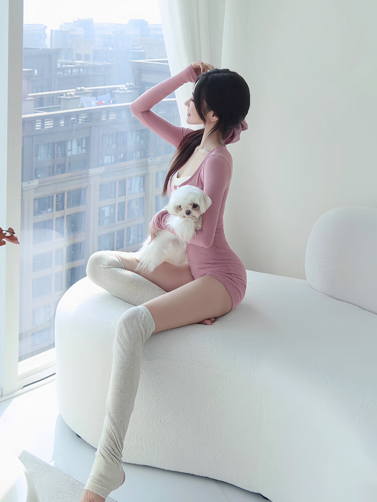 Vinoa's beautiful one-piece yoga suit for women, Pilates training suit, long-sleeved fitness suit for women, sports tights, gray M