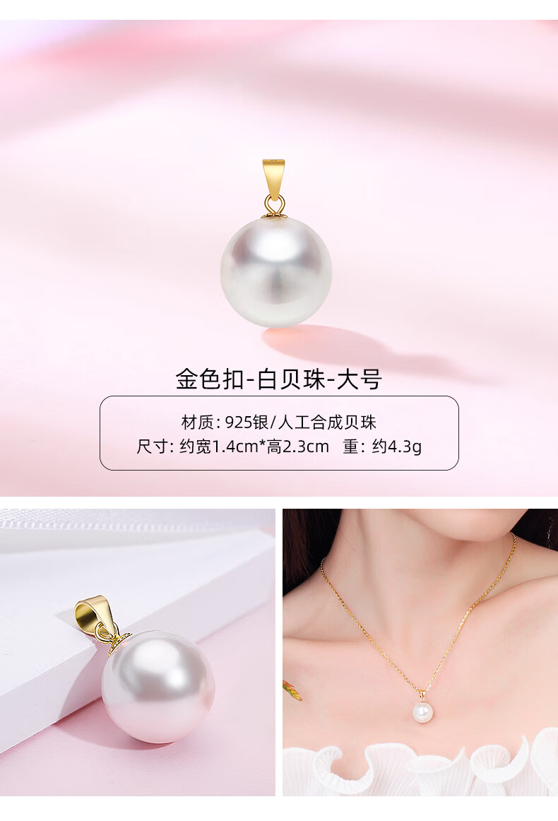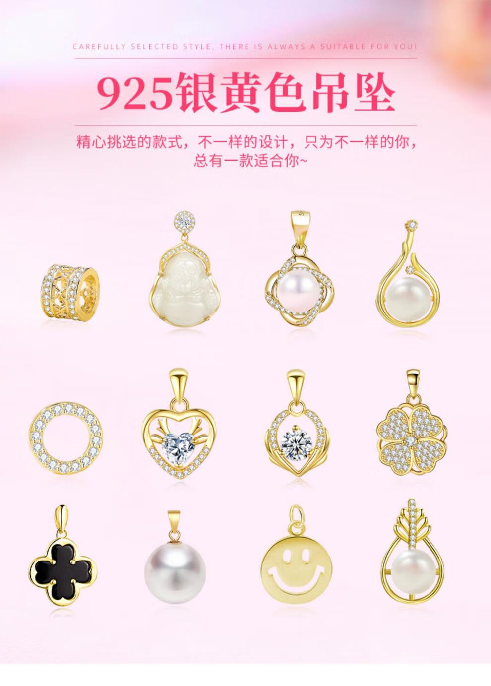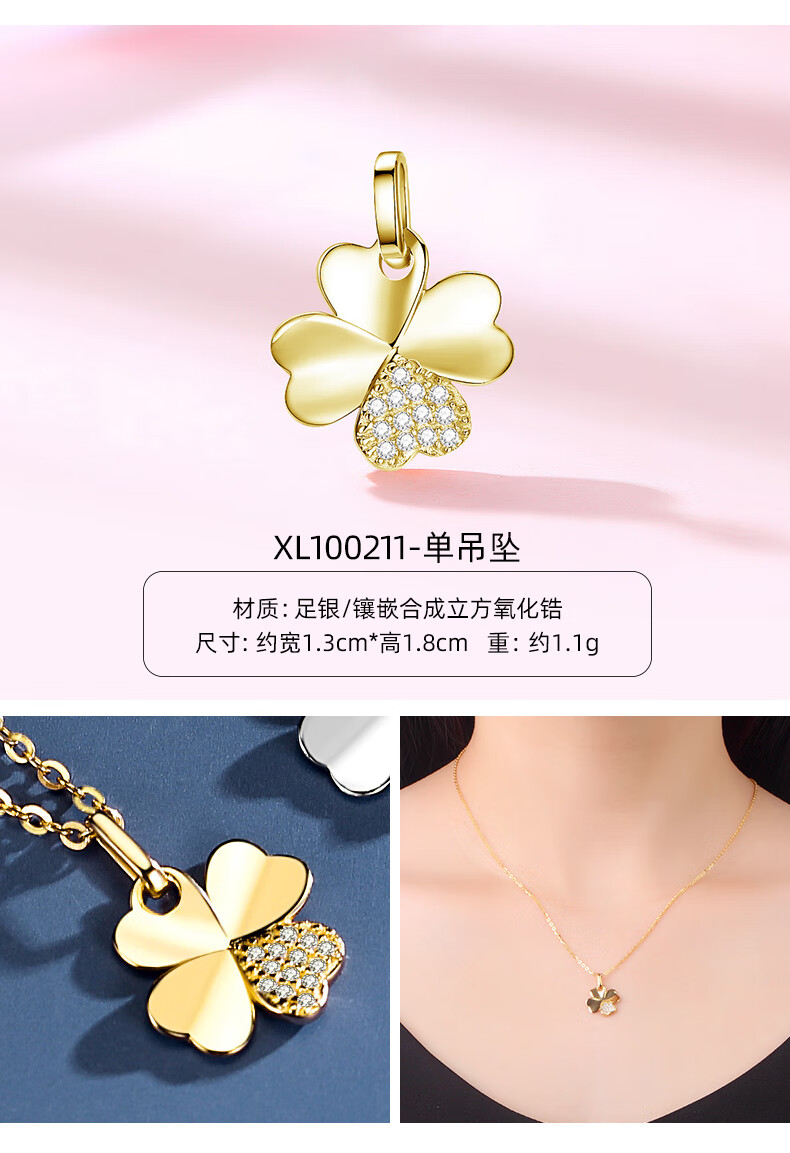 Fat Donglai same style pearl pendant without chain 925 silver four-leaf clover necklace for women 18k yellow l gold color Hetian jade (gold single pendant) XL100506 freshwater pearl
