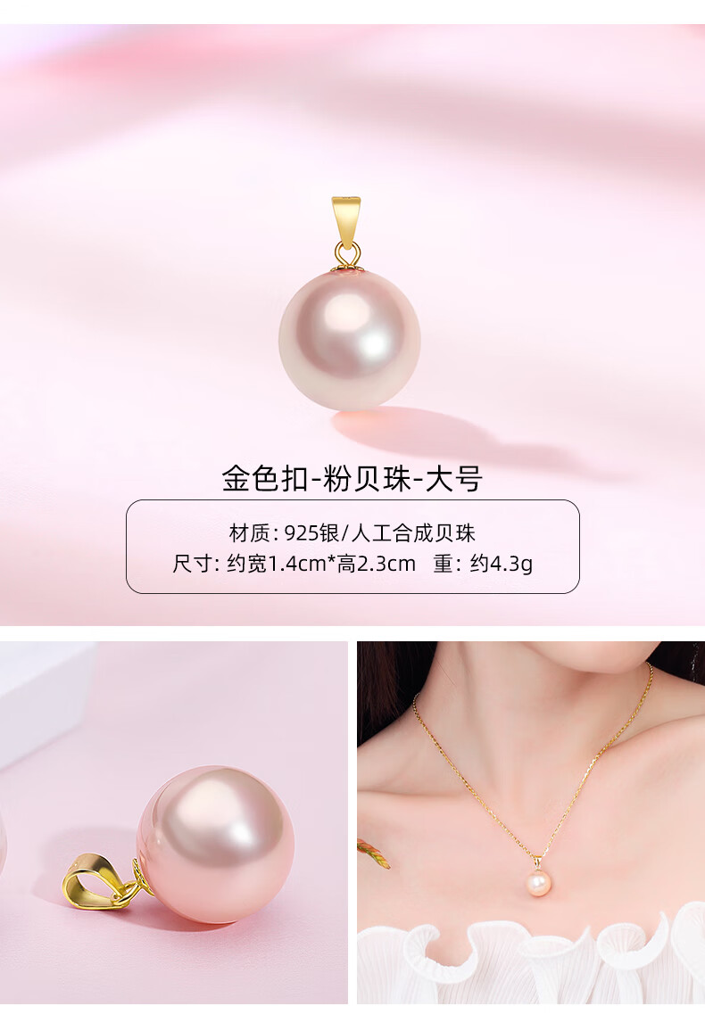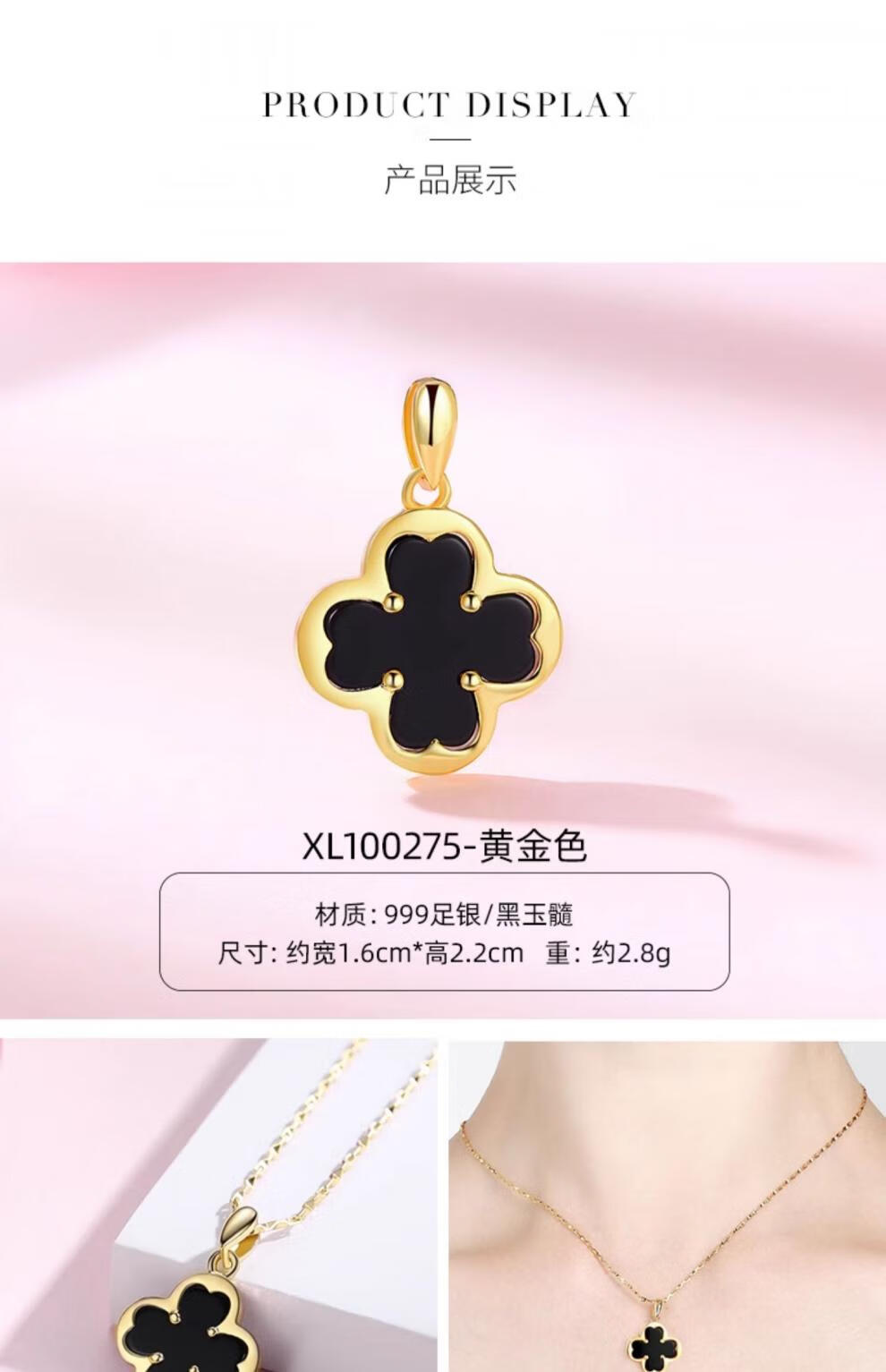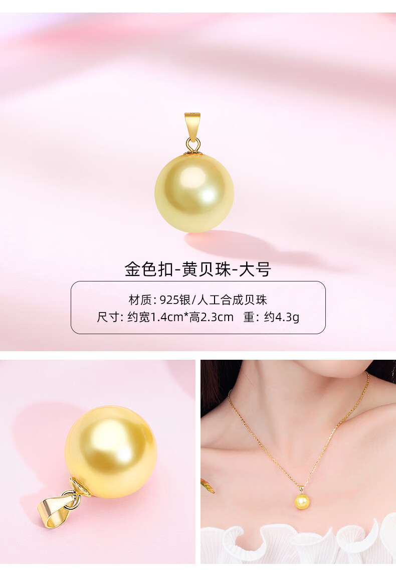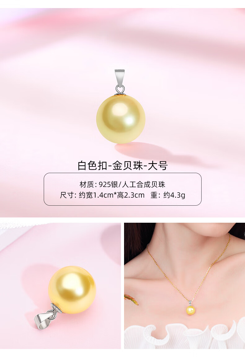 Fat Donglai same style pearl pendant without chain 925 silver four-leaf clover necklace for women 18k yellow l gold color Hetian jade (gold single pendant) XL100506 freshwater pearl