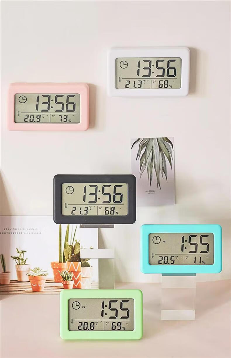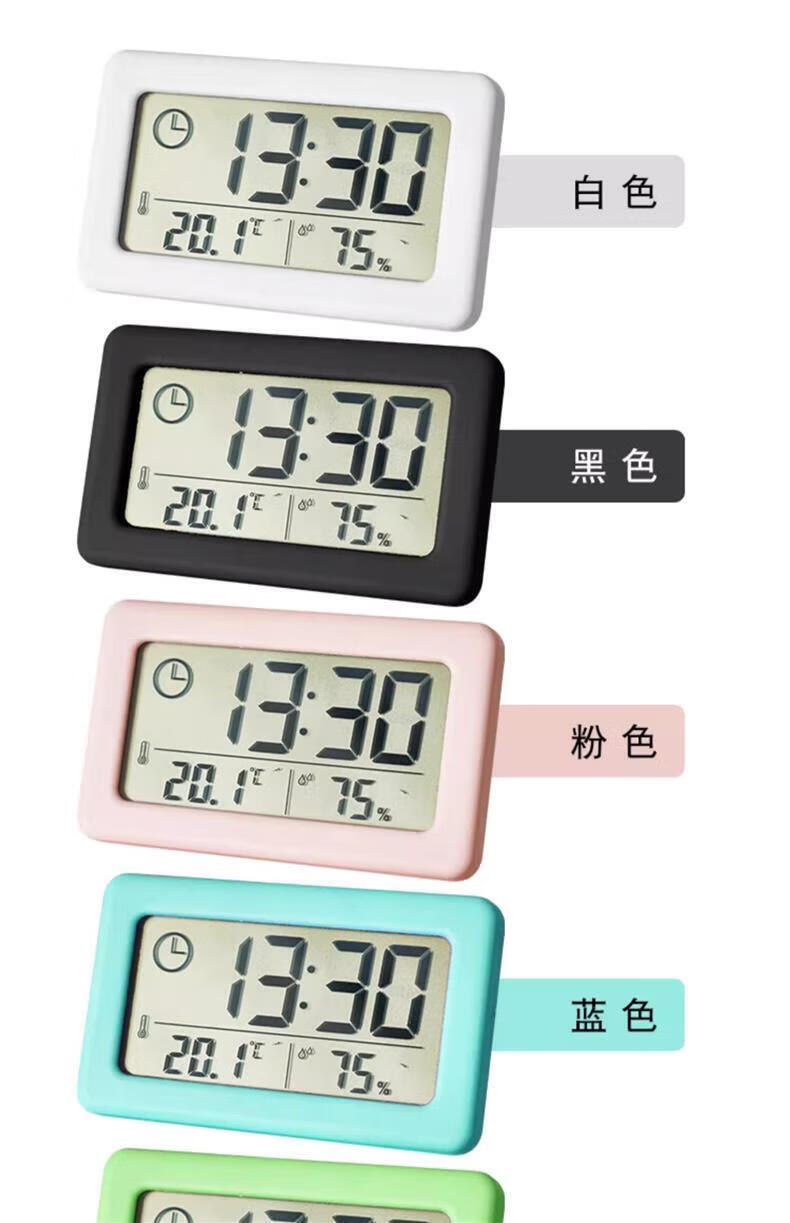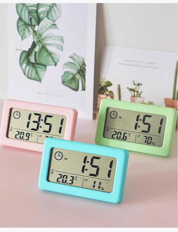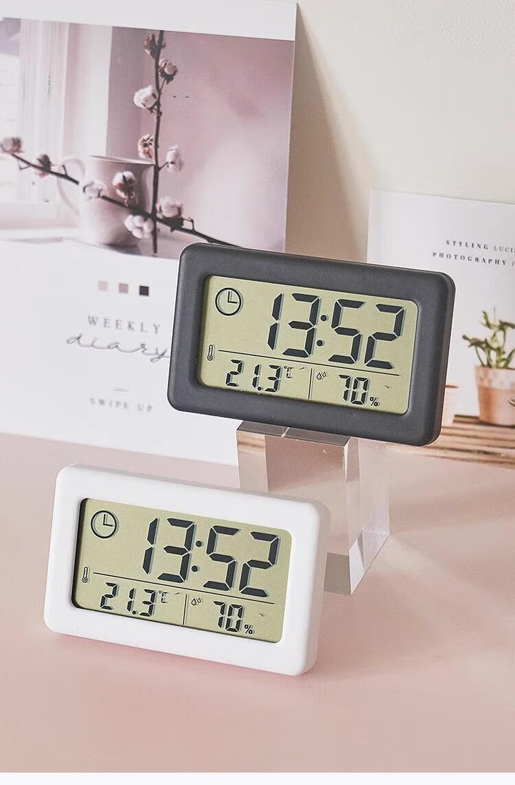 Ultra-thin mini clock, portable electronic watch, temperature and humidity meter, wall-mounted refrigerator, home desktop, girls, children and students, white-mini model-1 pack with built-in button battery, desktop clock