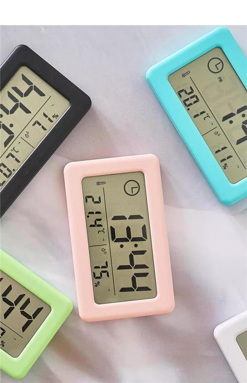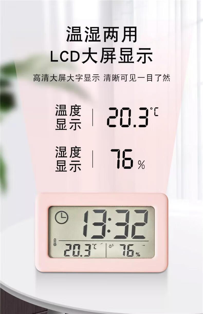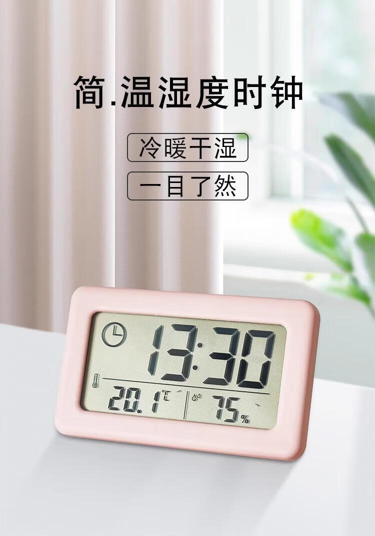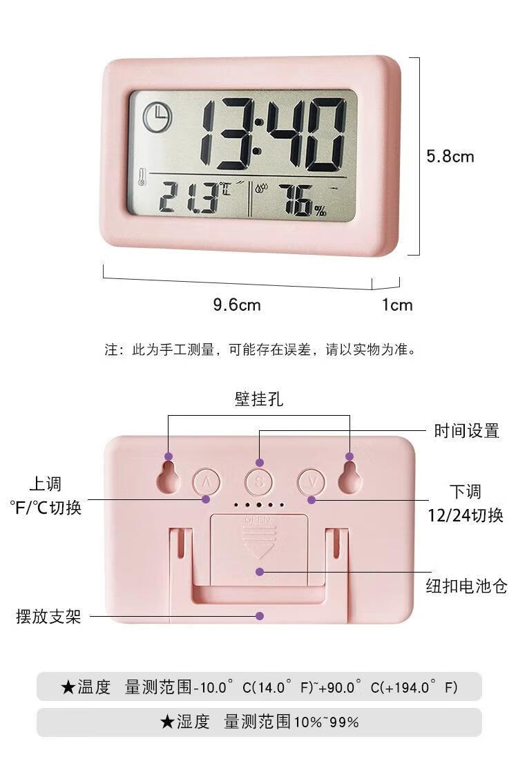 Ultra-thin mini clock, portable electronic watch, temperature and humidity meter, wall-mounted refrigerator, home desktop, girls, children and students, white-mini model-1 pack with built-in button battery, desktop clock