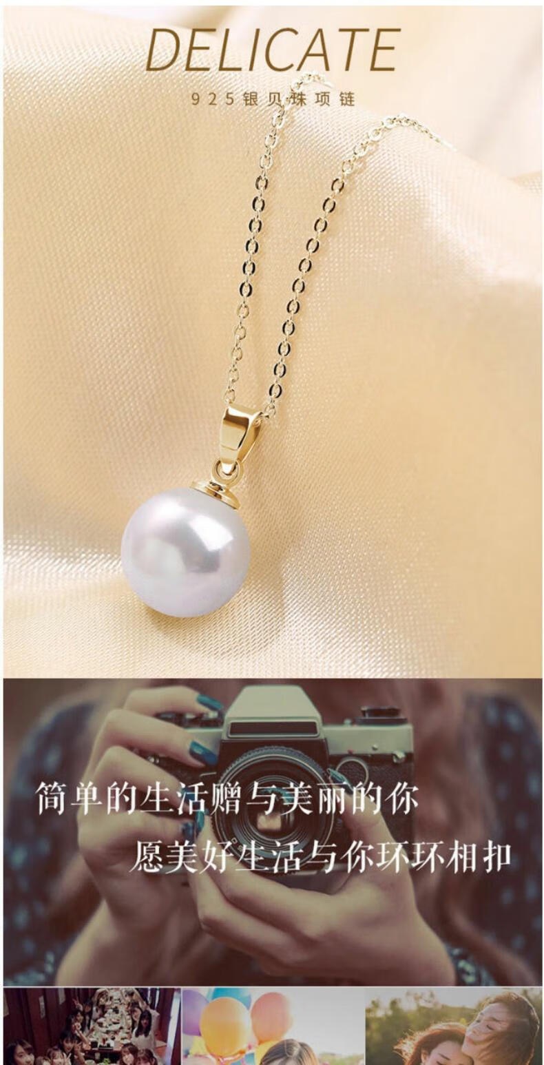Fat Donglai quality pearl pendant without chain necklace silver buckle plated single shell bead single bead women's pendant accessory diameter 12mm, silver base white beads without chain