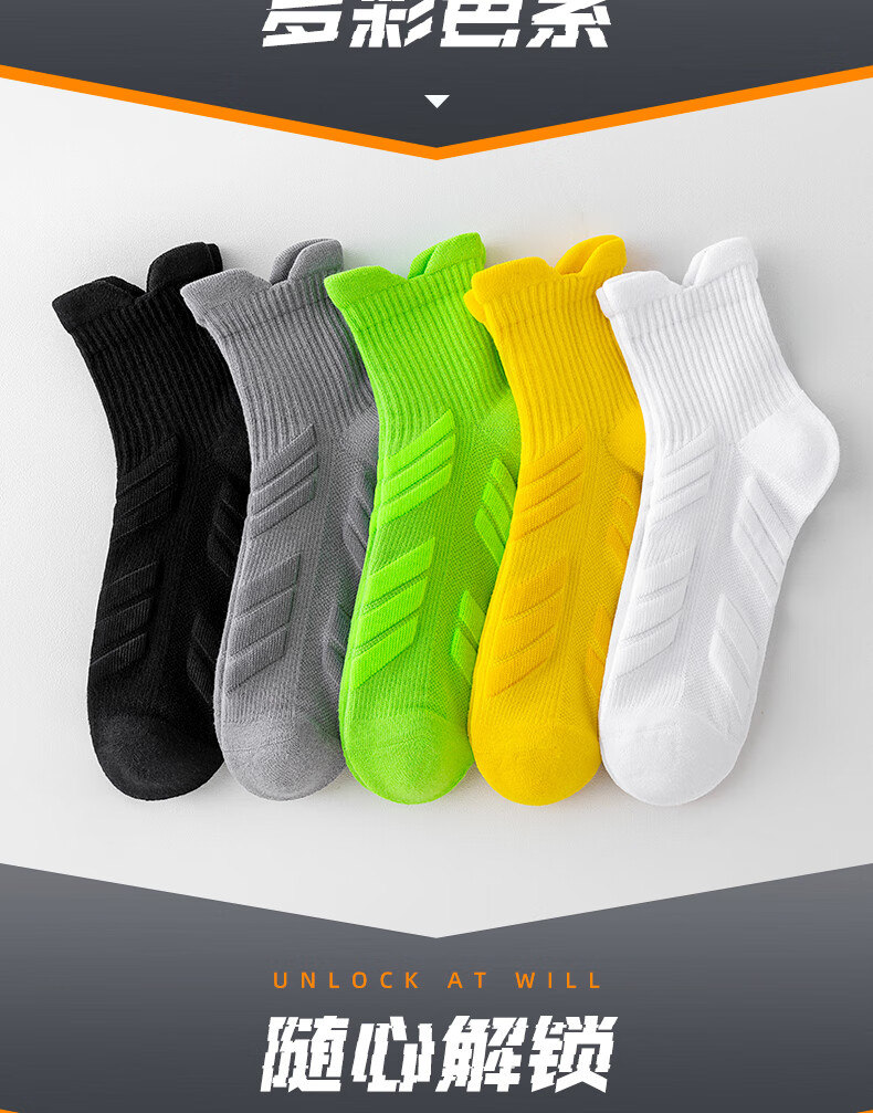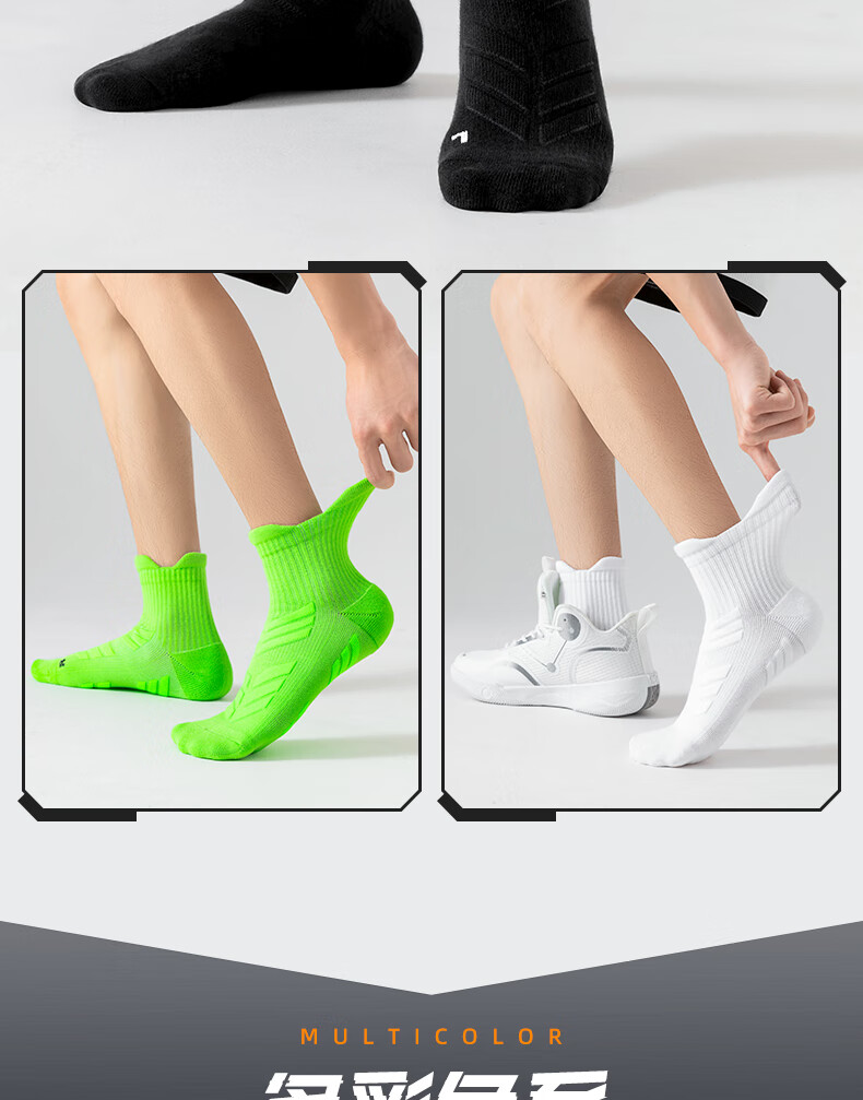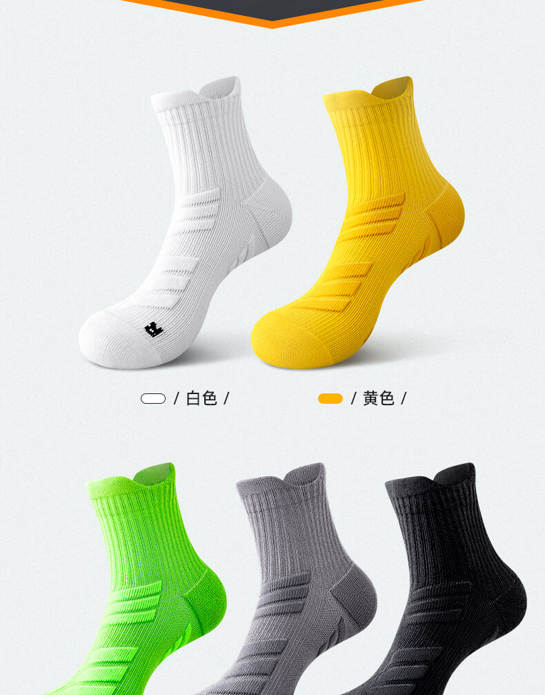 JIOESC marathon socks professional men's running socks mid-tube thickened towel bottom sports basketball long-distance running non-slip basketball socks 1 yellow 1 green 1 black