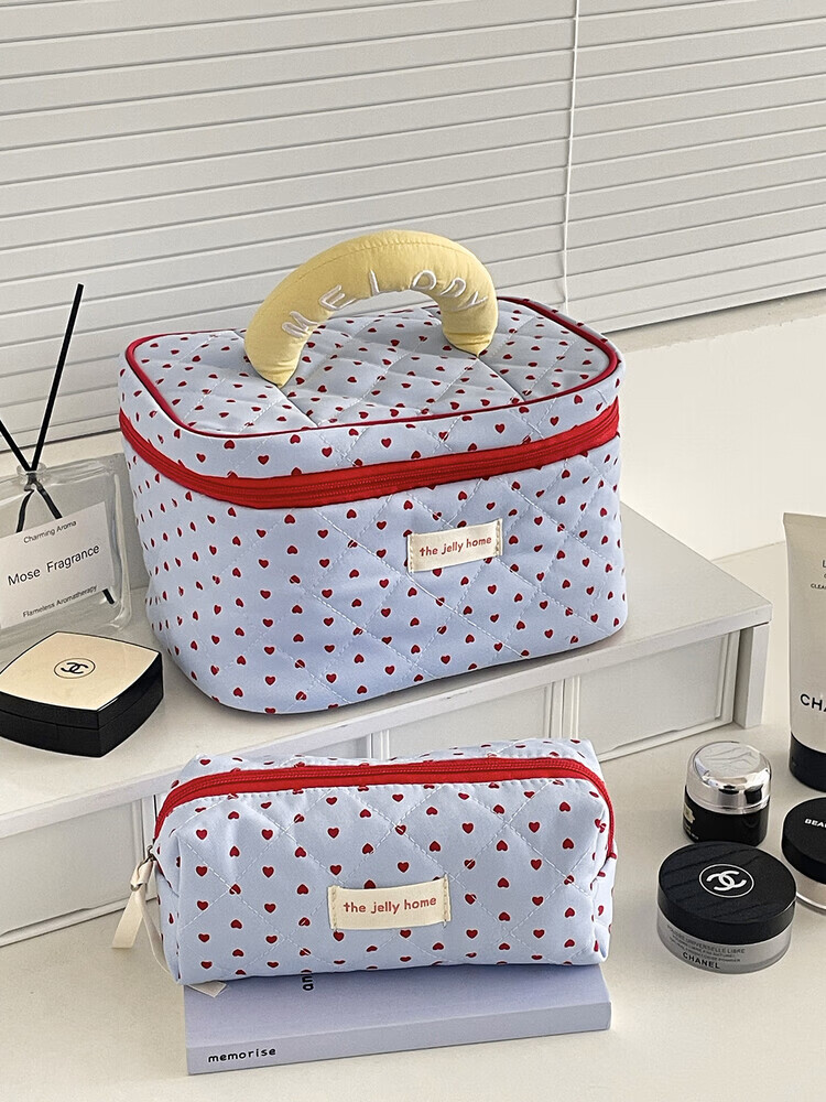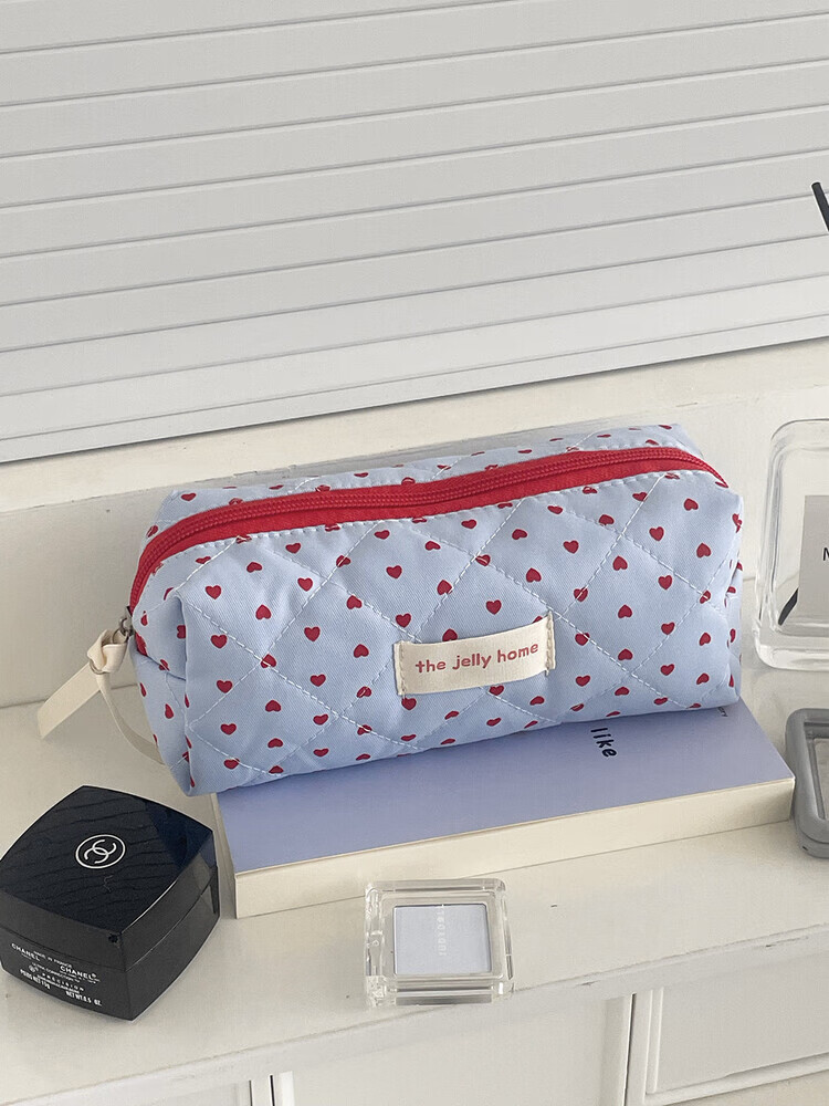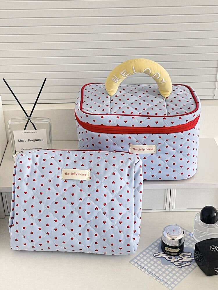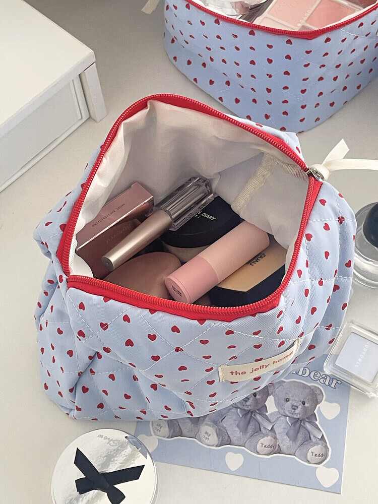 Cross-border milk blue love cosmetic bag 2025 new high-looking ins storage bag portable large capacity toiletry bag milk blue love-cosmetic bag