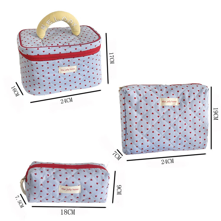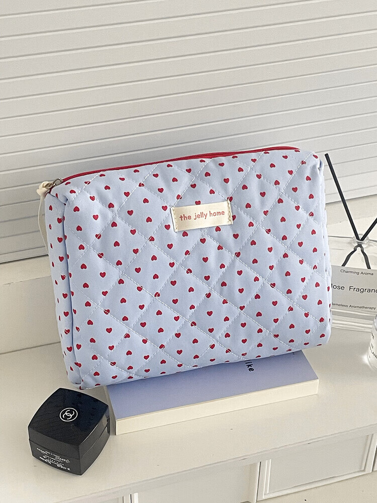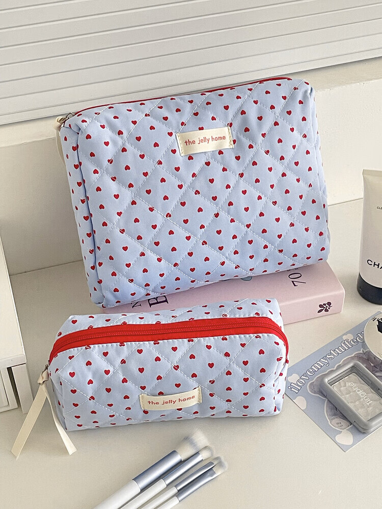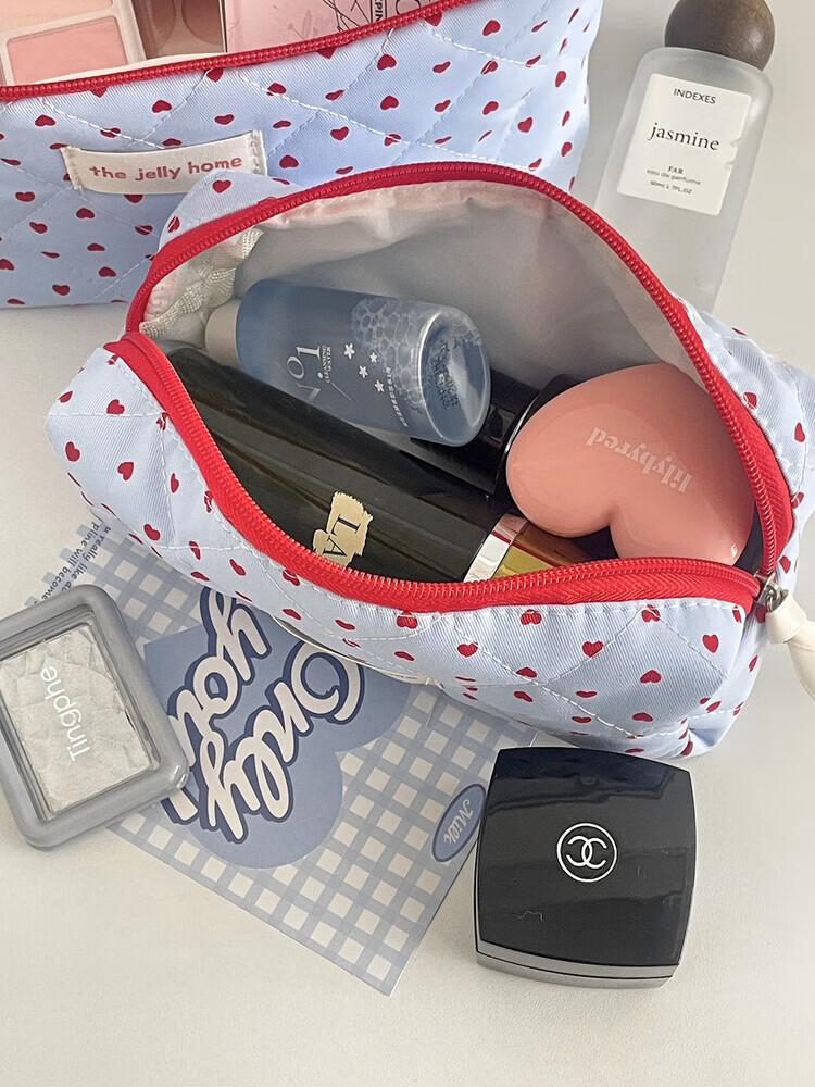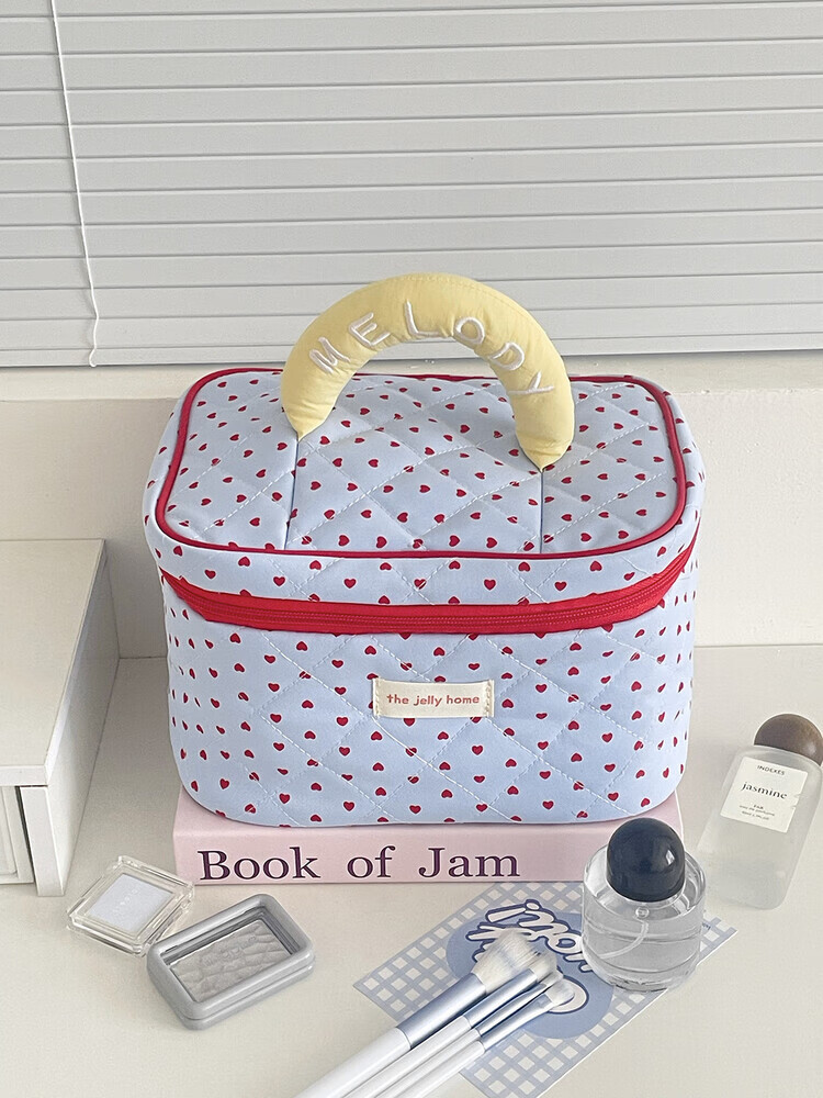Cross-border milk blue love cosmetic bag 2025 new high-looking ins storage bag portable large capacity toiletry bag milk blue love-cosmetic bag