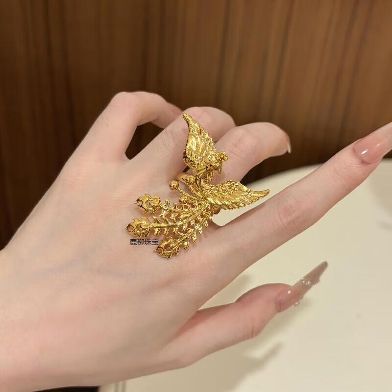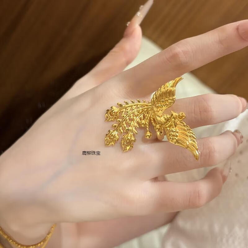 Luliu Lao Phoenix Gold Colorful Phoenix Ring Ring Women's New Pure Gold 999 Wedding Ring as a Wedding Valentine's Day Gift No. 18 About 4.5g