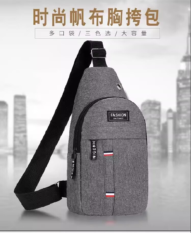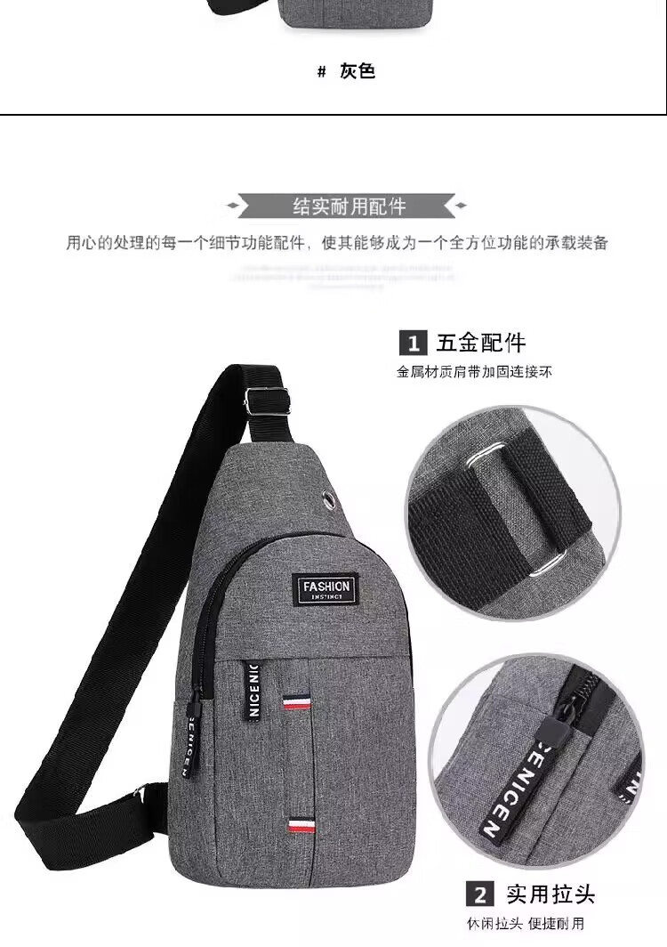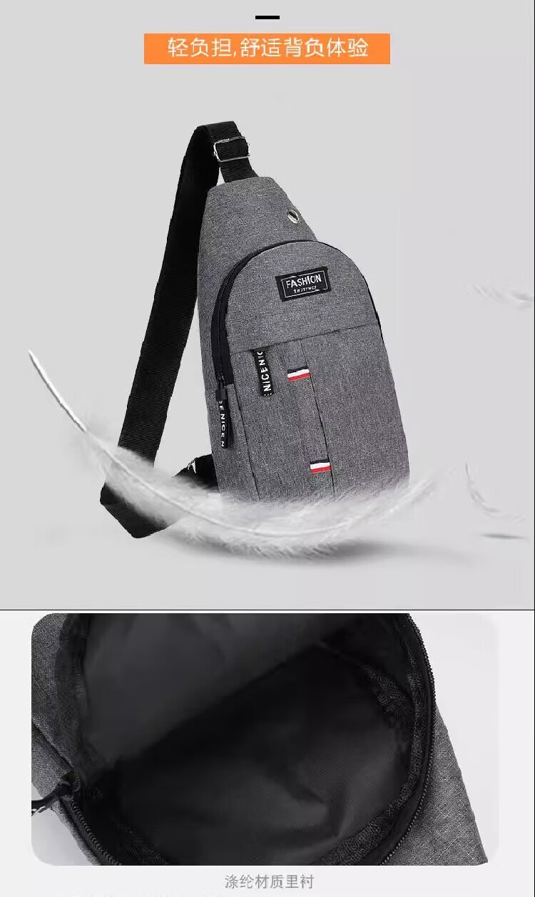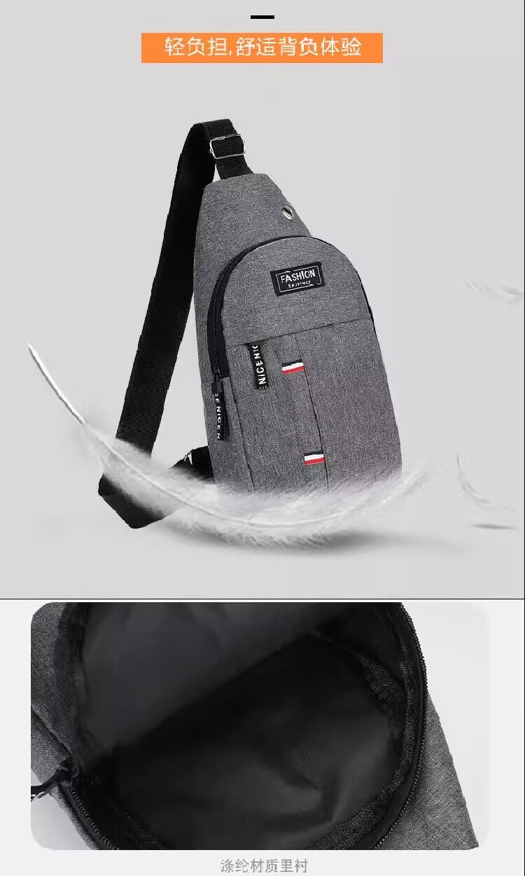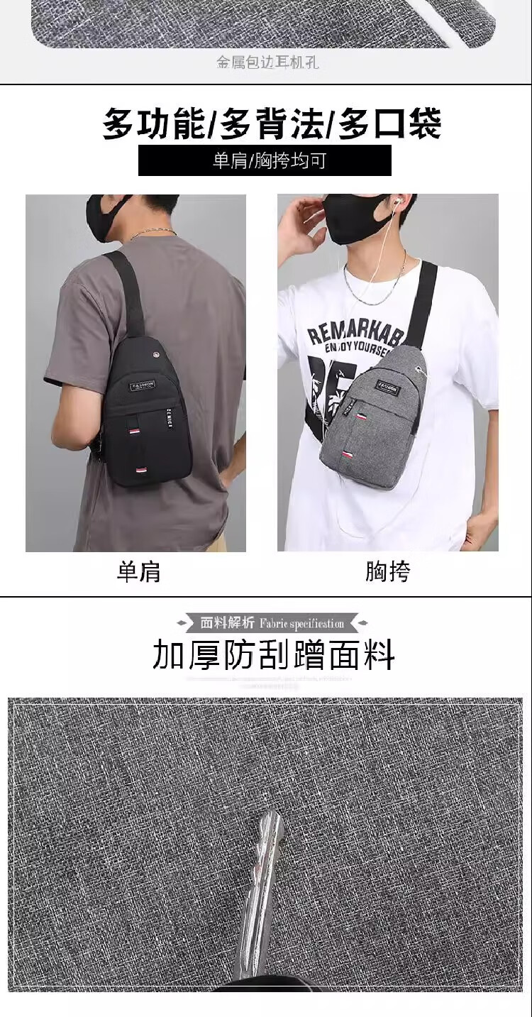 New Oxford cloth bag, trendy business chest bag, men's and women's shoulder bag, canvas casual backpack, scratch-resistant and wear-resistant crossbody bag, black, simple and fashionable