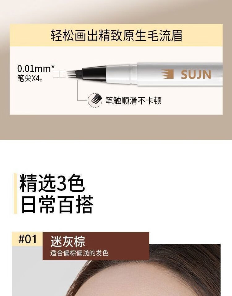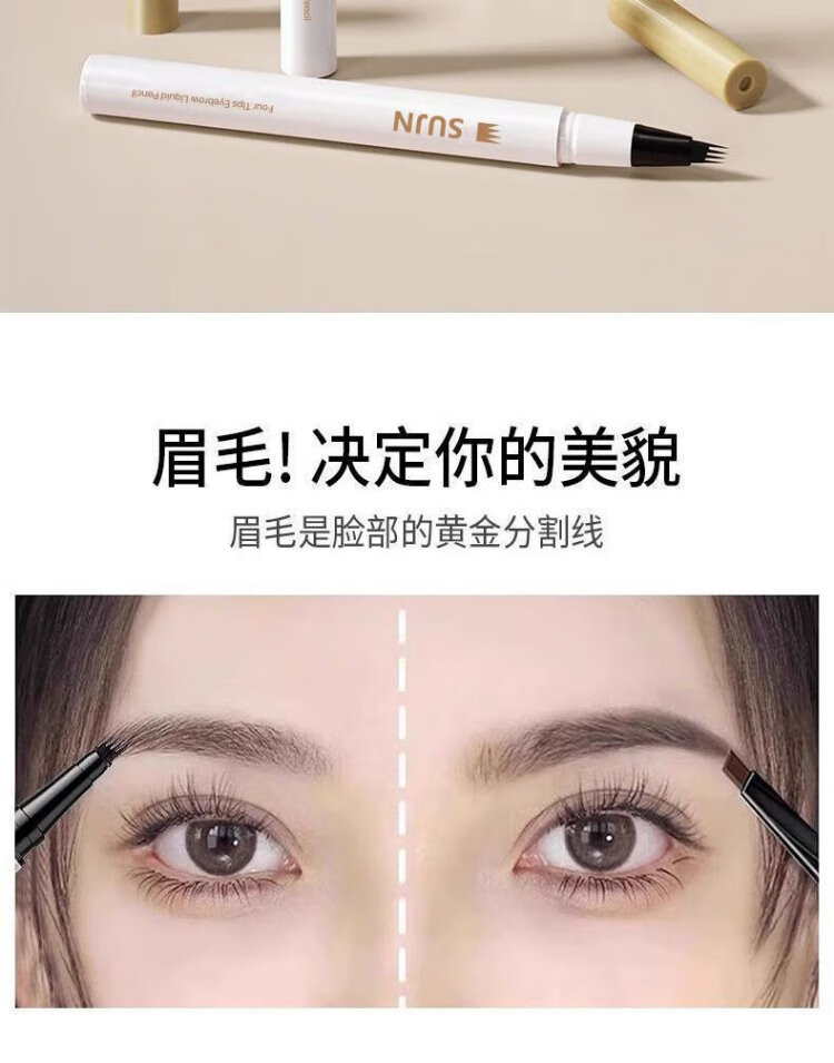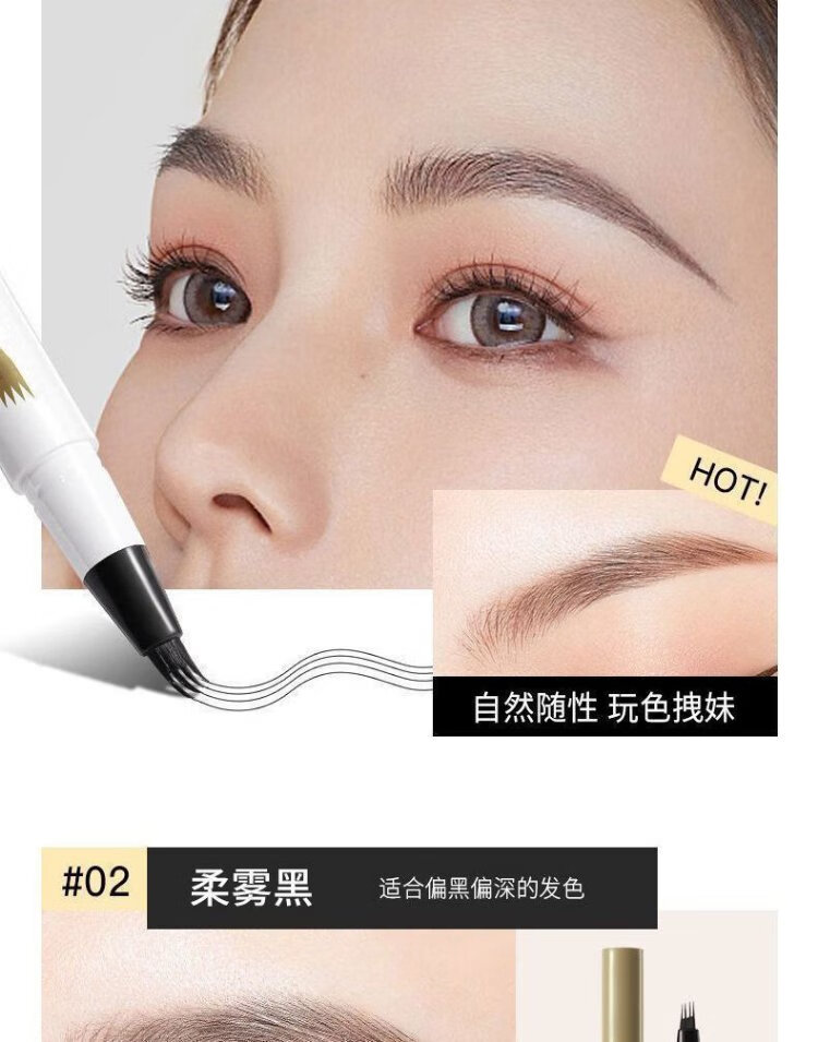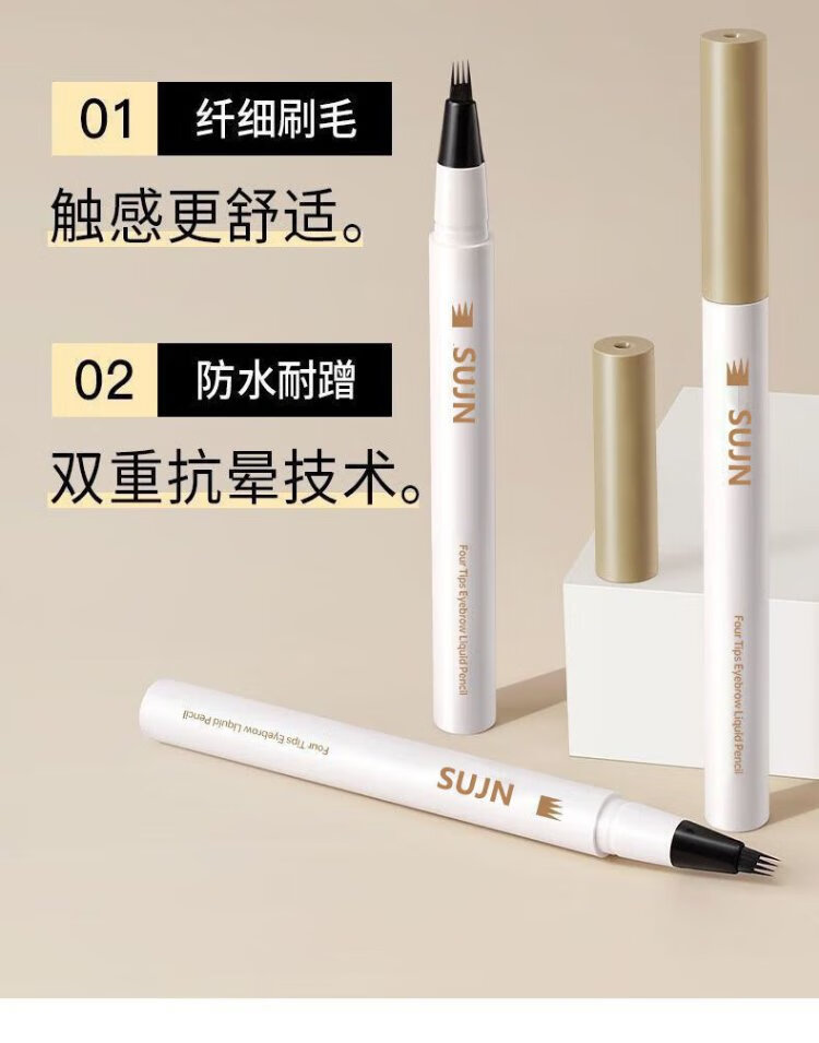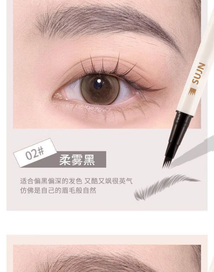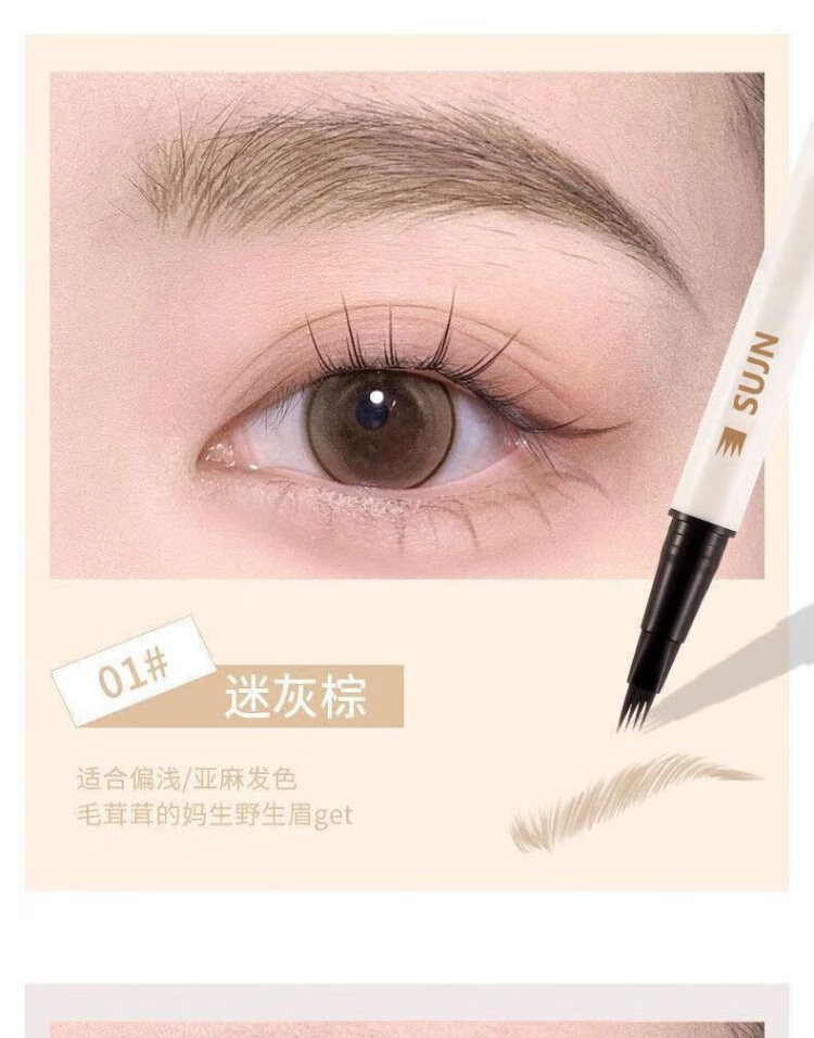 SUJN four-pronged eyebrow pencil is waterproof, sweat-proof, long-lasting, smudge-proof and not easy to fade, beginner eyebrow pencil, wild water eyebrow pencil, 1 piece, gray black, suitable for natural color