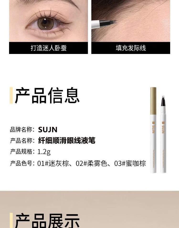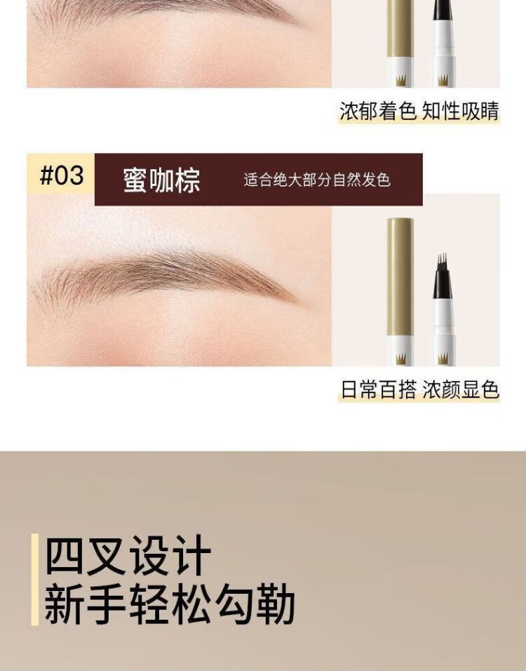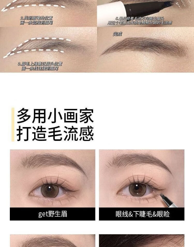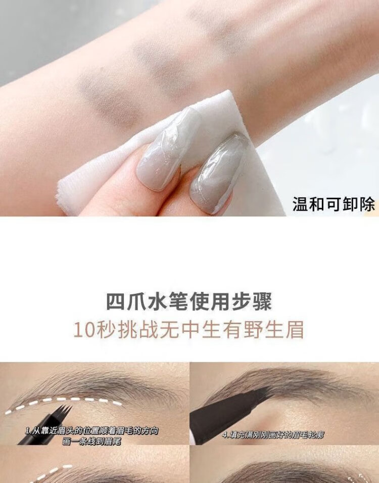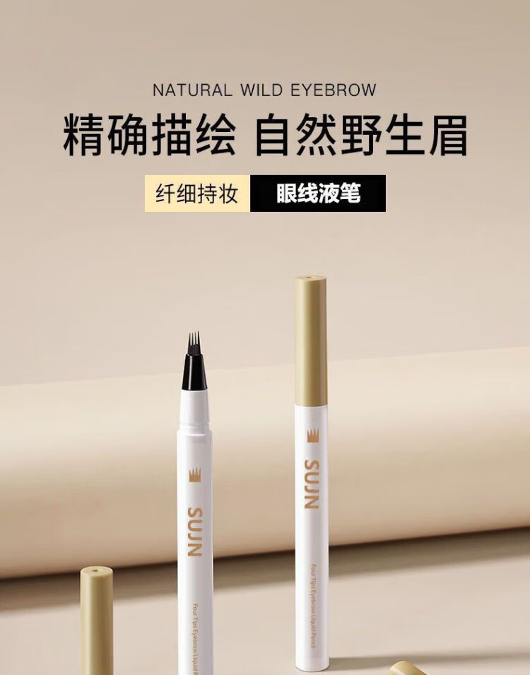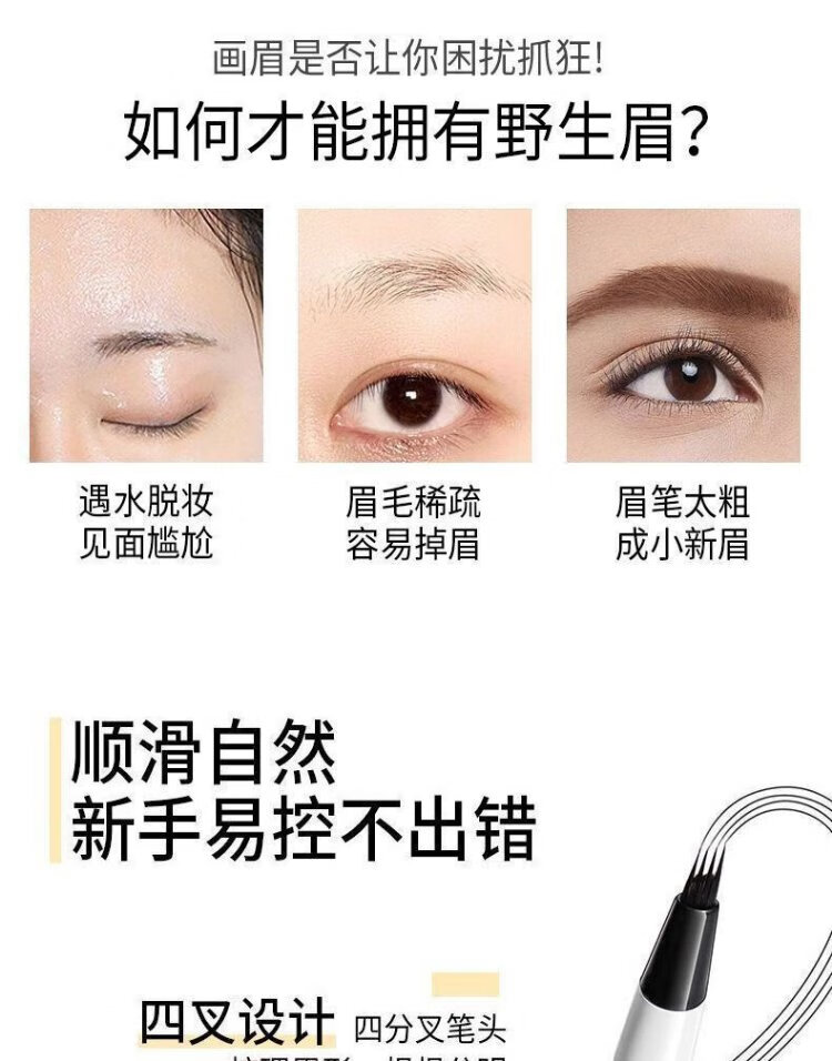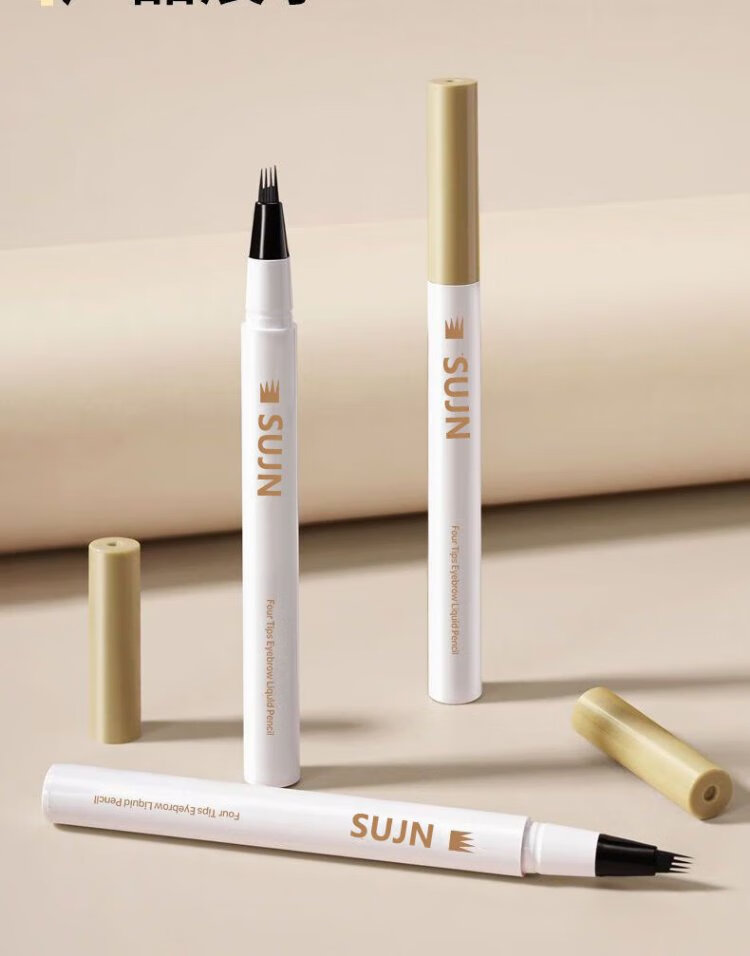 SUJN four-pronged eyebrow pencil is waterproof, sweat-proof, long-lasting, smudge-proof and not easy to fade, beginner eyebrow pencil, wild water eyebrow pencil, 1 piece, gray black, suitable for natural color