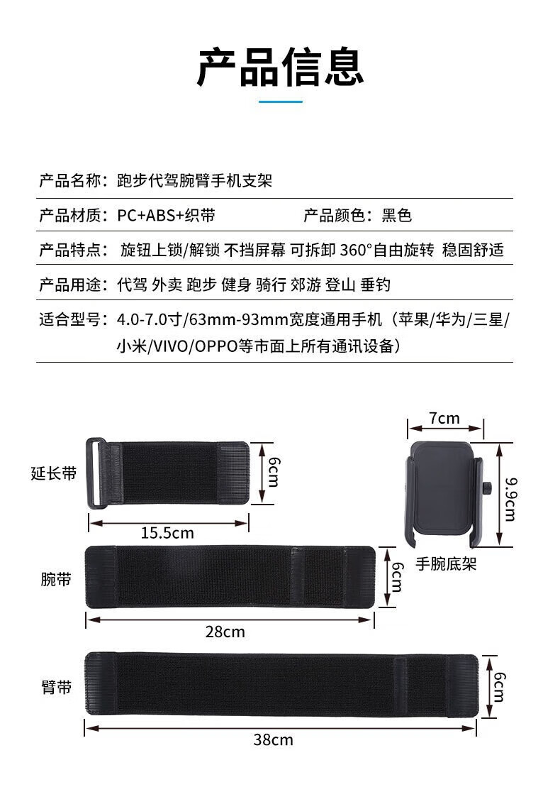 OIMG special driving wrist mobile phone holder wrist strap strap fixed equipment hanging wrist bag sports arm cover running mobile phone bag stand dual-use model available for wrist and arm suitable for 4-7 inch full-screen mobile phones on the market