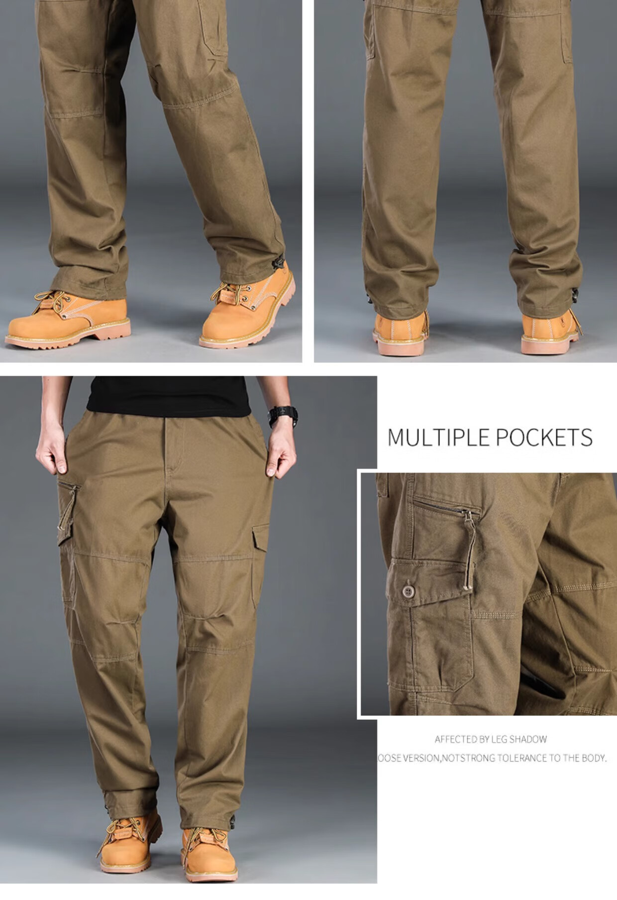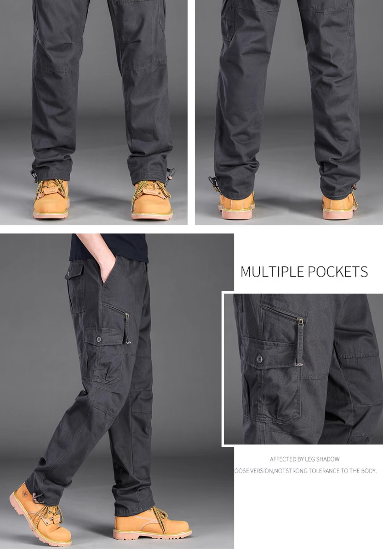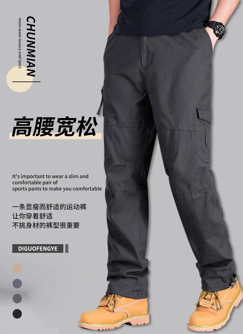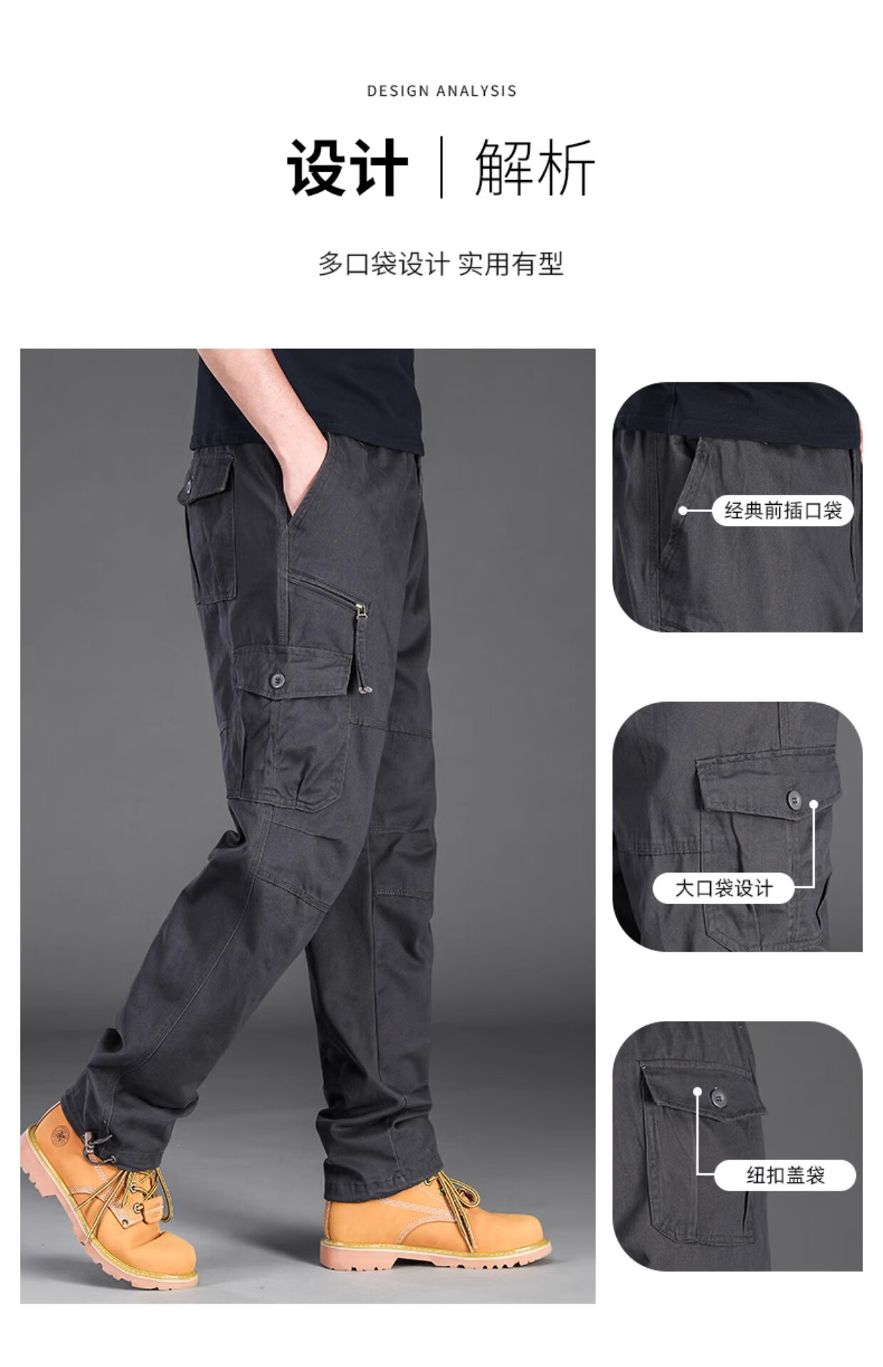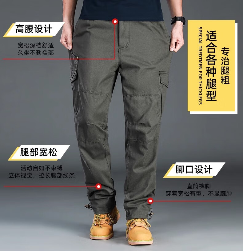 Overalls Men's Wear-Resistant Sports Pants Men's Straight Loose Large Size Spring and Autumn Pure Cotton Multi-Pocket Casual Pants Military Yellow Spring and Autumn Style 2XL Recommended 170-190Jin Jin is equal to about 0.5 kg