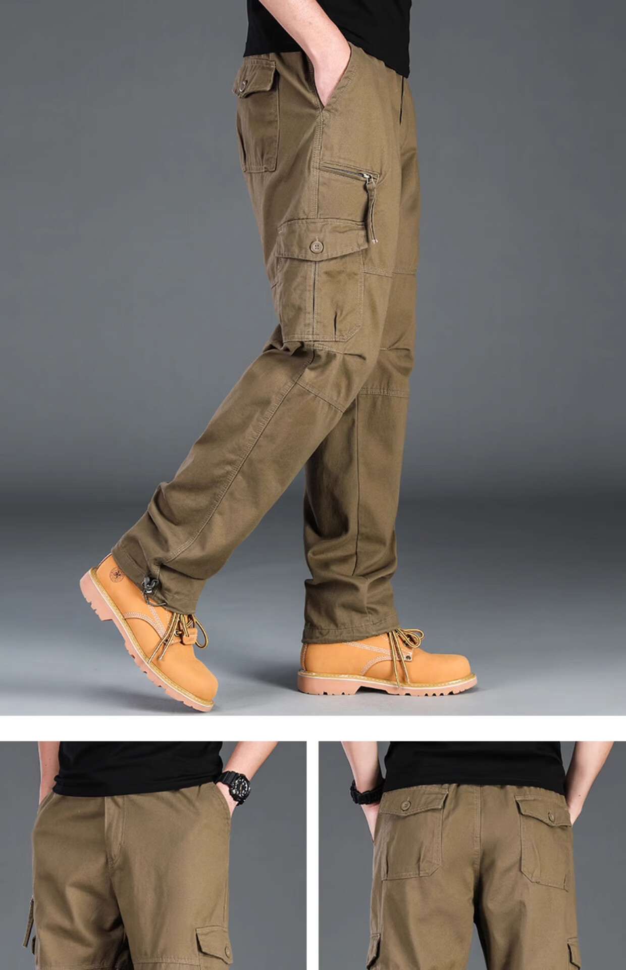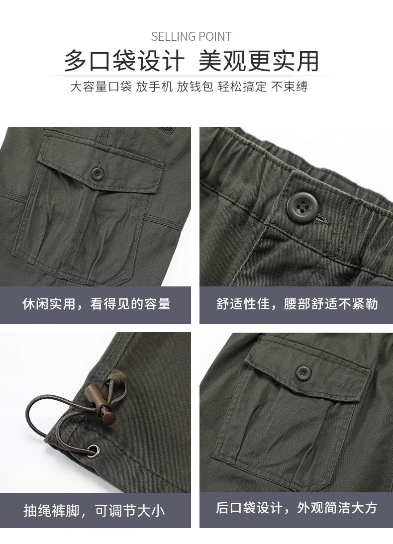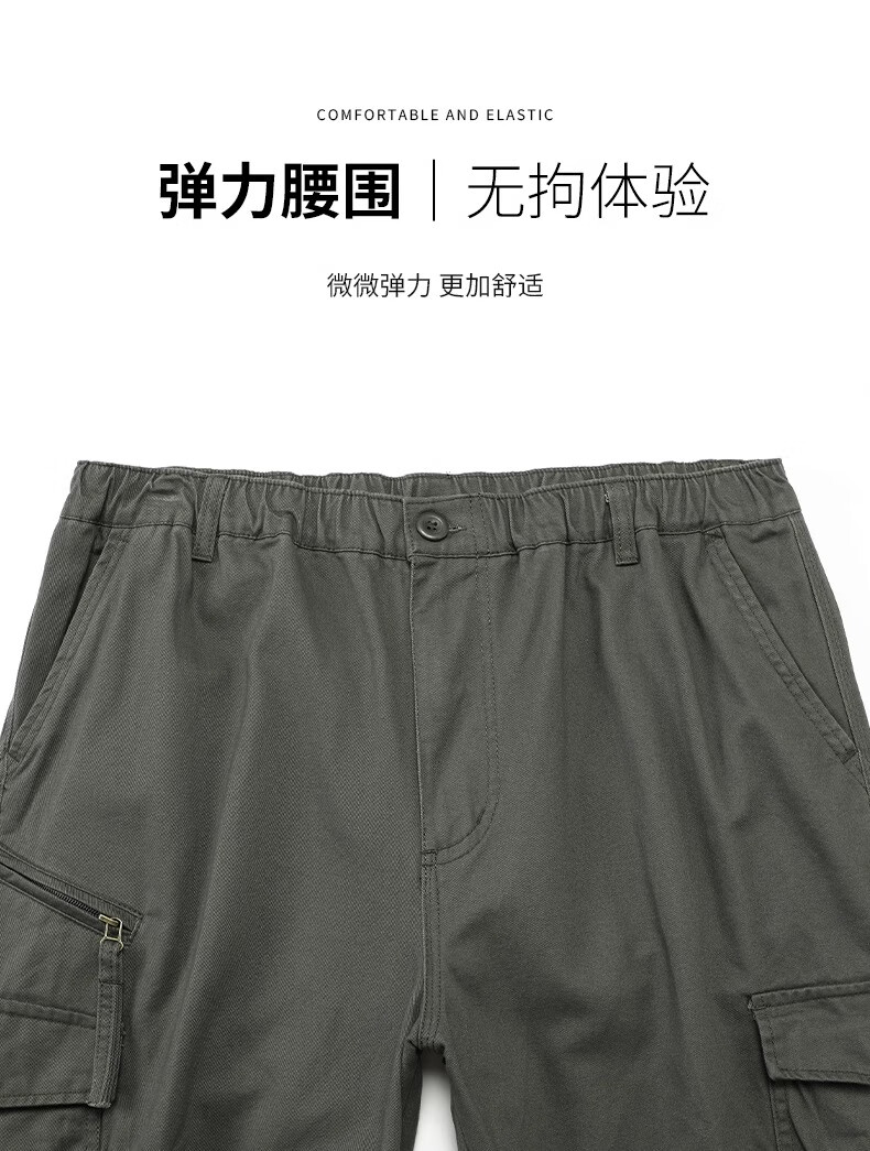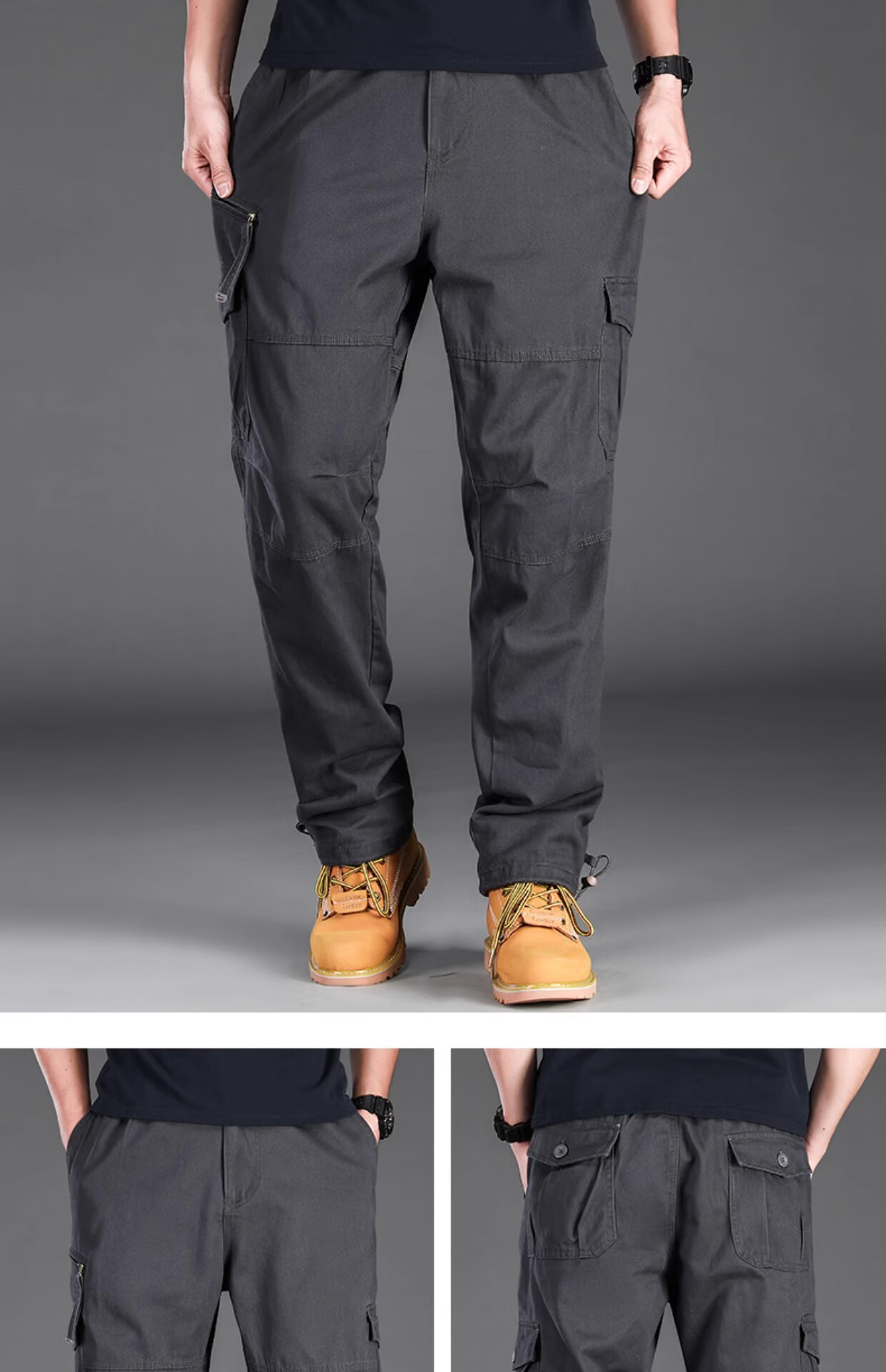 Overalls Men's Wear-Resistant Sports Pants Men's Straight Loose Large Size Spring and Autumn Pure Cotton Multi-Pocket Casual Pants Military Yellow Spring and Autumn Style 2XL Recommended 170-190Jin Jin is equal to about 0.5 kg