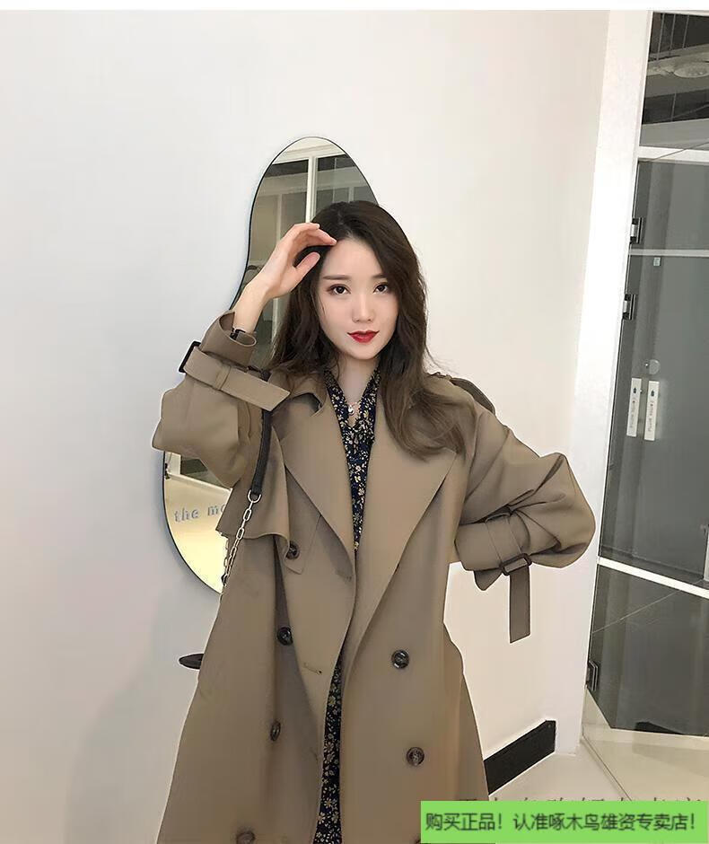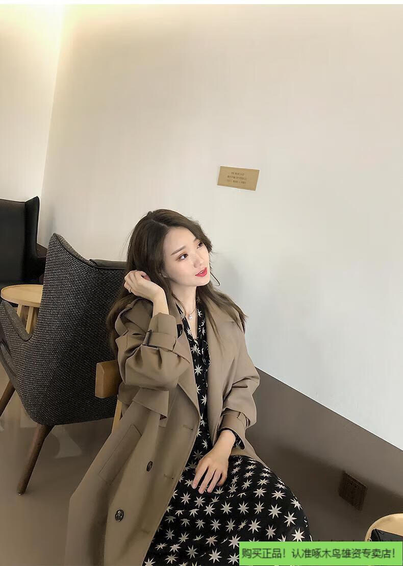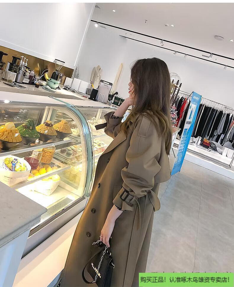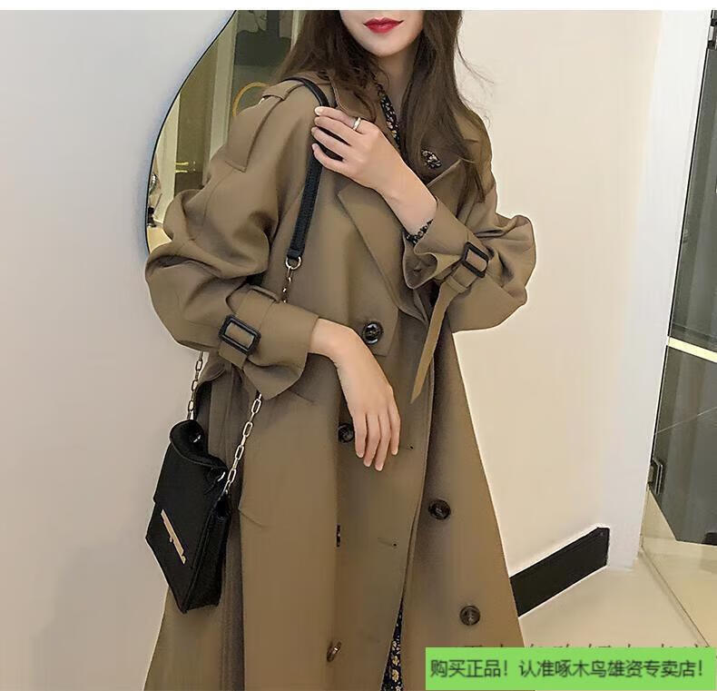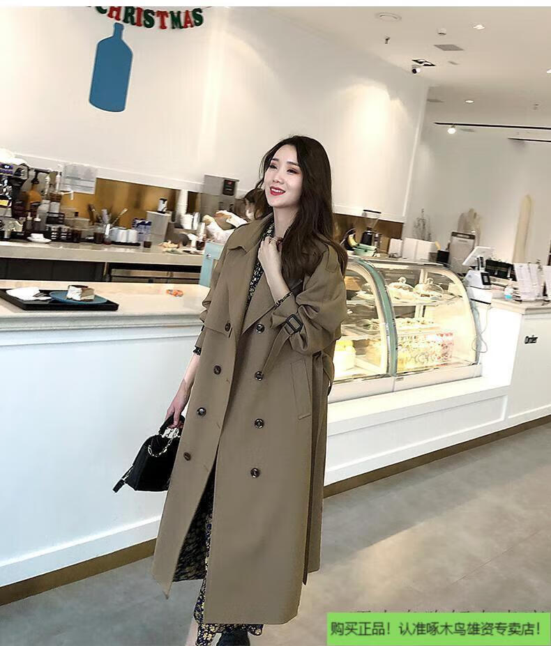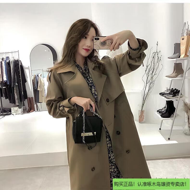 Woodpecker (TUCANO) windbreaker jacket for women mid-length spring wear 2025 new fall knee-length temperament goddess Fan Yinglun style jacket green coffee color lining double layer L l recommended 115 to 130 Jin Jin equals 0.5 kg