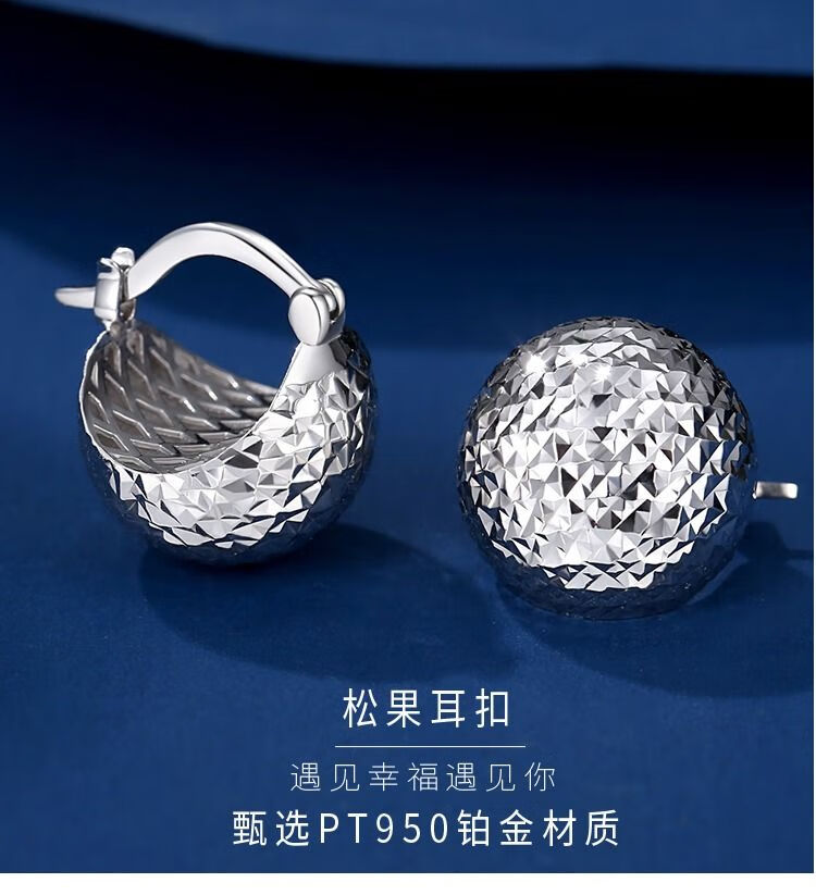 Falling Flowers and Spring Pinecone Earrings Platinum Pt950 Explosive Super Flash Ball Pure Platinum Stud Earrings New 520 Gift Pair-Pt950 Platinum Pinecone Earrings